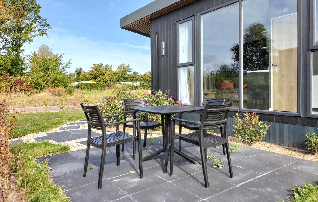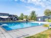 Genießen Sie im Garten des Ferienhauses in vollen Zügen die Sonne und die pure Urlaubsentspannung. Erfrischen Sie sich im gemeinsam genutzten Pool und lassen Sie den Tag mit Getränken im Freien ausklingen.