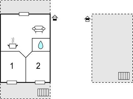 Badezimmer (nr. 1) - WC. Warmes und kaltes Wasser. Dusche