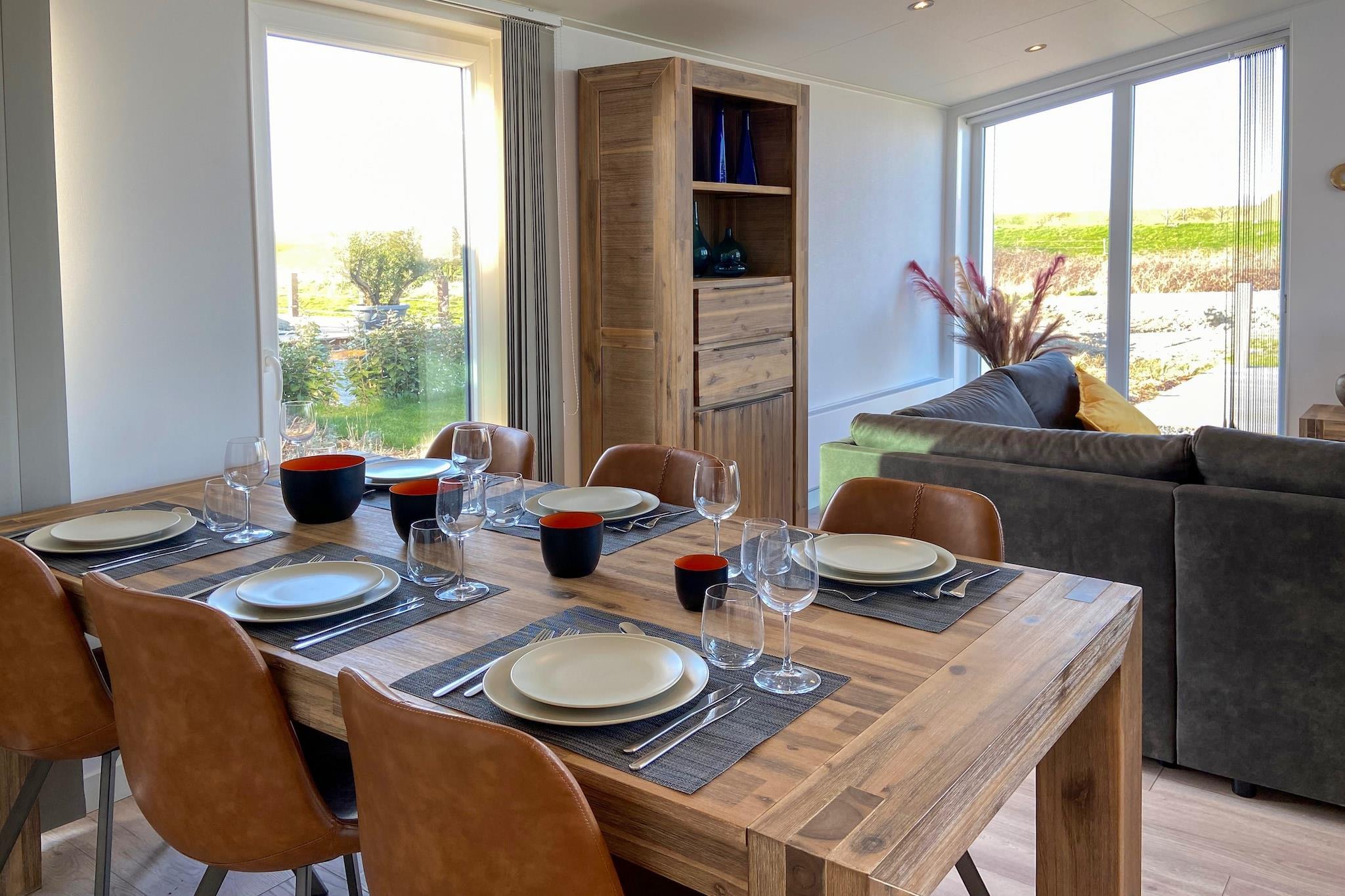 Charmanter Komfort am Rande der Natur Entfliehen Sie der Hektik der Natur in diesem stilvollen Einfamilienhaus, perfekt gelegen am Rande eines malerischen Ferienparks in Zeeland. Das sorgfältig gestaltete und geschmackvoll eingerichtete Haus bietet eine einladende Mischung aus modernem Komfort und gemütlichem Charme. Große Fenster durchfluten Wohn- und Schlafzimmer mit Tageslicht und schaffen eine luftige und ruhige Atmosphäre. Die voll ausgestattete offene Küche eignet sich ideal zum Zubereiten von Mahlzeiten zu Hause, während der gemütliche Wohnbereich nach einem erlebnisreichen Tag zum Entspannen einlädt. Draußen erwartet Sie eine private, teilweise überdachte Terrasse mit Gartenmöbeln und herrlichem Blick auf den Deich. Entdecken Sie die Schönheit von Wemeldinge Nur wenige Schritte von der Natur entfernt bietet dieses Haus direkten Zugang zu einigen der malerischsten Wander- und Radwege Zeelands. Das charmante Hafendorf Wemeldinge liegt ganz in der Nähe und bietet lokale Boutiquen, Cafés am Wasser und eine wunderschöne Aussicht auf die Oosterschelde. Wochenmärkte, Strandzugang und Naturpfade sorgen für viel Entdeckungsfreude. Ein ruhiger, haustierfreier Rückzugsort Haustiere sind in diesem Haus nicht erlaubt und daher ideal für Gäste, die eine ruhige, allergikerfreundliche Umgebung suchen. Ob Sie einen romantischen Kurzurlaub oder einen erholsamen Familienurlaub planen, in diesem friedlichen Rückzugsort in Zeeland erwarten Sie Komfort und Ruhe.