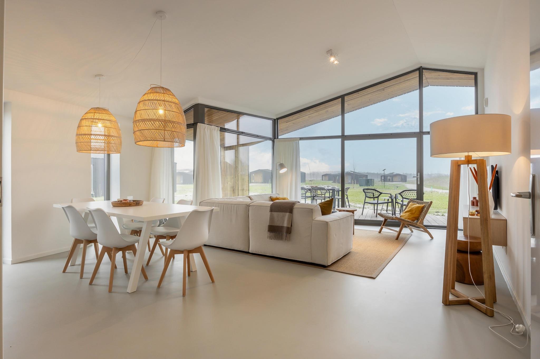 Sehnen Sie sich nach einem erholsamen Urlaub inmitten der unberührten Schönheit der Natur? Dann kommen Sie nach Heerlijkheid Vlietenburg, einem kleinen Ferienpark mit komfortablen Naturhäusern. Versteckt in der Polderlandschaft Zeelands finden Sie einen idyllischen Rückzugsort, an dem Sie der Hektik des Alltags entfliehen können. Auf Ihrer eigenen Terrasse können Sie einen Panoramablick auf die wogenden Polder genießen. Die goldenen Sonnenuntergänge und die frische Morgenluft, erfüllt von Vogelstimmen, schaffen eine unvergessliche Atmosphäre der Ruhe und Weite. Beobachten Sie grasende Kühe und flatternde Schmetterlinge und erleben Sie die pure Schönheit der Natur Zeelands. Heerlijkheid Vlietenburg ist ein Paradies für Naturliebhaber. Die Gegend grenzt an das Naturschutzgebiet Het Bokkegat und lädt zu erholsamen Spaziergängen und Radtouren ein. Entdecken Sie die Vielfalt der Wälder, Heiden und Wiesen und entdecken Sie Hirsche, Hasen und verschiedene Vogelarten. Die Oosterschelde mit ihrer einzigartigen Flora und Fauna ist nur einen Steinwurf entfernt. Wassersportler können hier Windsurfen, Kitesurfen oder Schwimmen genießen. Das charmante Dorf Wissenkerke ist zu Fuß erreichbar. Für den täglichen Einkauf gibt es einen Supermarkt. Bevorzugen Sie einen ausgedehnten Strandtag? Banjaard Beach bietet zahlreiche Einrichtungen. Die Städte Middelburg und Goes sind nur 20 Autominuten entfernt. Bewundern Sie die historischen Zentren mit ihren Kanälen, engen Gassen und gemütlichen Terrassen. Genießen Sie einen Einkaufsnachmittag in den abwechslungsreichen Geschäften, in denen Sie Souvenirs, Kleidung und andere schöne Gadgets finden. Beliebte Dörfer wie Veere und Domburg sind leicht mit dem Fahrrad zu erreichen. Die Häuser sind alle nachhaltig gebaut und individuell gestaltet und gestaltet. Heerlijkheid Vlietenburg 2 verfügt über 3 Schlafzimmer, zwei Badezimmer, eines mit Dusche und Waschbecken und ein Badezimmer mit Dusche, Waschbecken und Toilette. Es gibt eine separate Toilette im Flur, ein Wohnzimmer mit offener Küche und rund um das Haus gibt es mehrere Toiletten