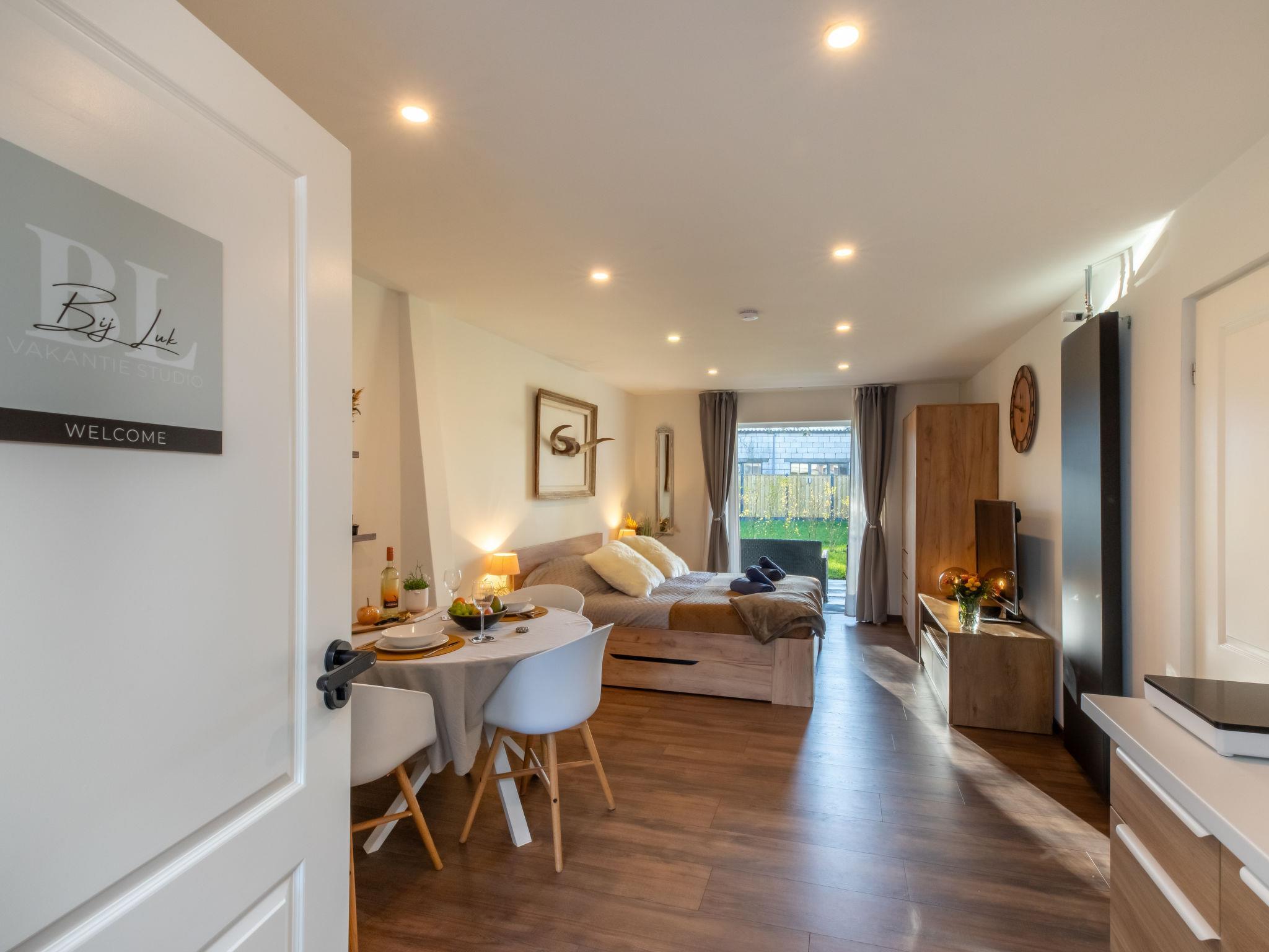 "Studio by Luk", 1-Zimmer-Studio 30 m2, im Erdgeschoss. Geschmackvoll und gemütlich eingerichtet: offenes Wohn-/Schlafzimmer mit 1 Doppelbett (160 cm, Länge 200 cm), TV. Ausgang zum Garten, zur Terrasse. Kleine Kochnische (2 Induktionskochplatten, Wasserkocher, Mikrowelle, Tiefkühler, Grill, elektrische Kaffeemaschine). Bad/Dusche/WC, Whirlbadewanne, Sauna. Heizung. Kleine Terrasse 8 m2, grosser Garten. Terrassenmöbel, Liegestühle (2). Sicht auf den Garten. Zur Verfügung: Bügeleisen, Babybett bis 3 Jahre, Haartrockner. Internet (WLAN, gratis). Parkplatz beim Haus. E-Ladestation. Bitte beachten: Nichtraucher-Haus. Maximal 1 Haustier/Hund erlaubt. Rauchmelder.