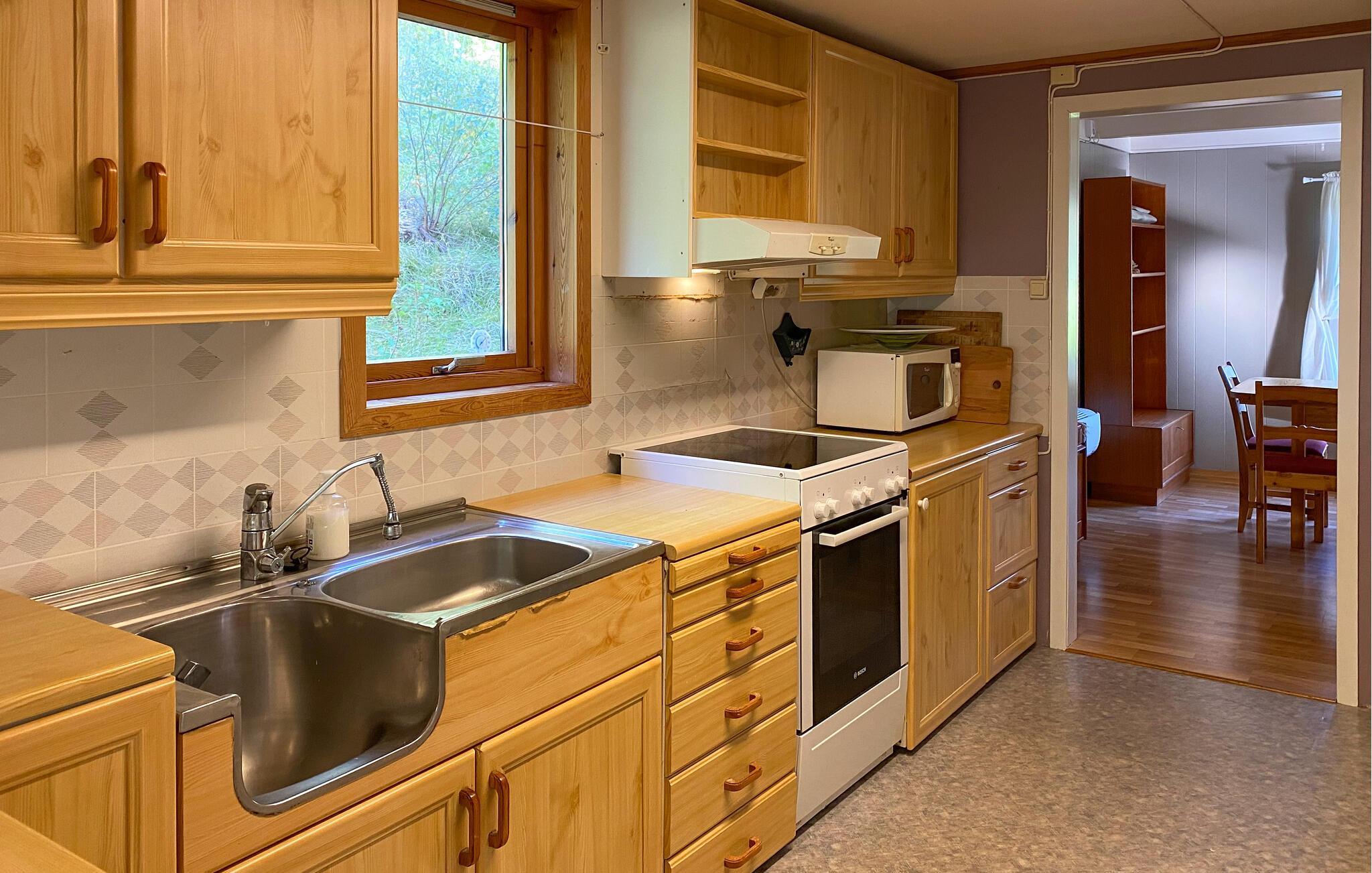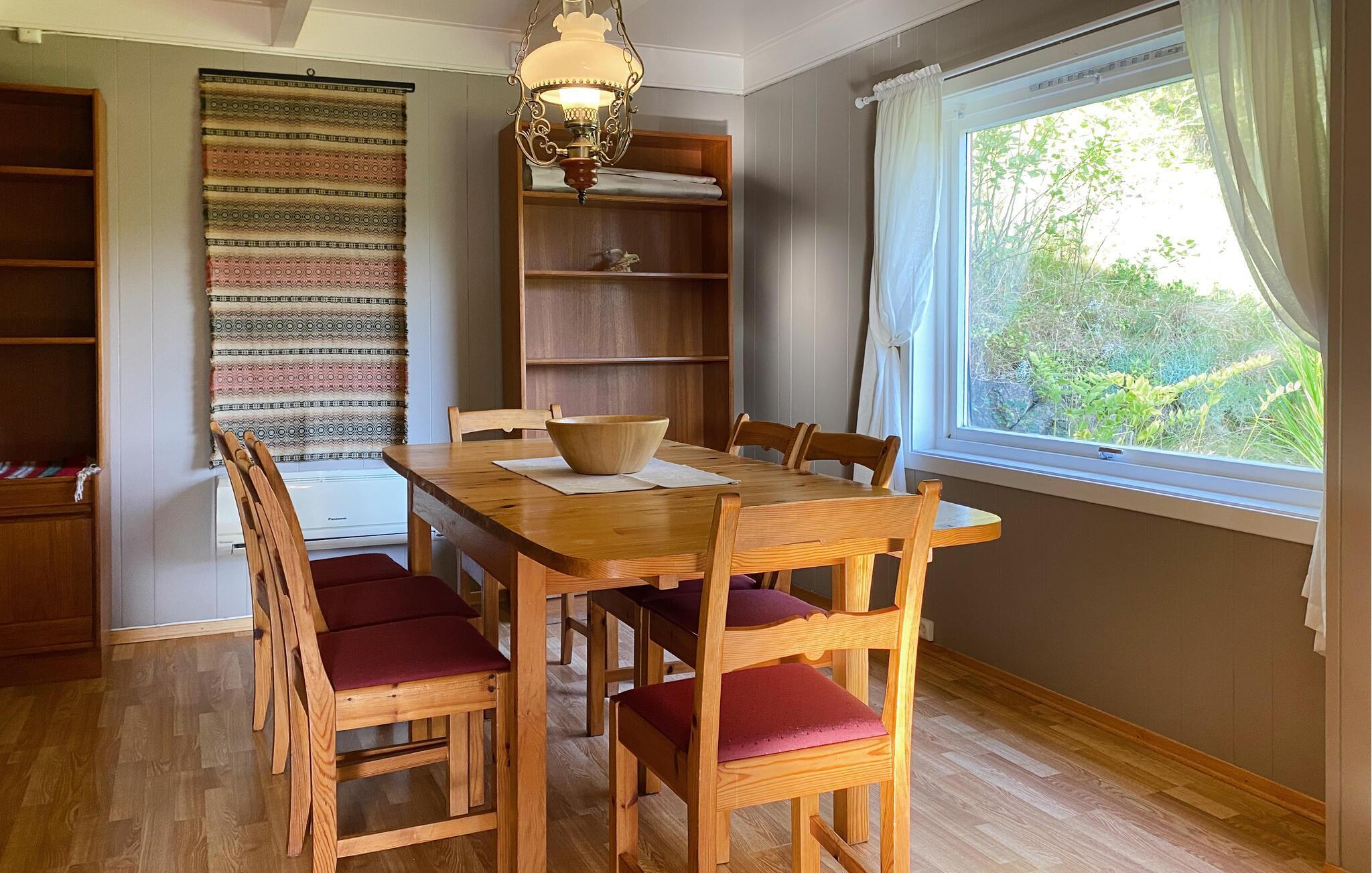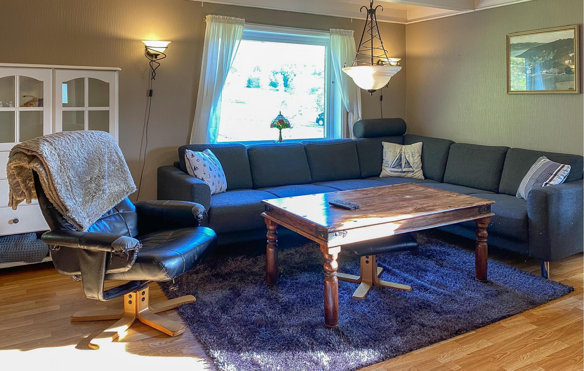 Ihr Ferienhaus bietet den perfekten Rahmen für einen bezaubernden Urlaub in Norwegen. Von Ihrem Ferienhaus aus genießen Sie eine beeindruckende Aussicht auf den Fjord und die idyllische Hügellandschaft. Atmen Sie die frische, klare Luft auf Ihrer Terrasse oder machen Sie es sich am Kaminofen gemütlich. In der geräumigen Küche können Sie kulinarische Genüsse zubereiten, und in der großzügigen Sofaecke ist viel Platz, um Karten zu spielen oder Bilder zu malen. Nutzen Sie die Nähe zum Fjord, um zu baden oder zu angeln. Wenn Sie ein Boot mieten, können Sie den Fjord auch vom Wasser aus erforschen. Das große Grundstück lädt zu wilden Naturspielen mit der ganzen Familie ein.