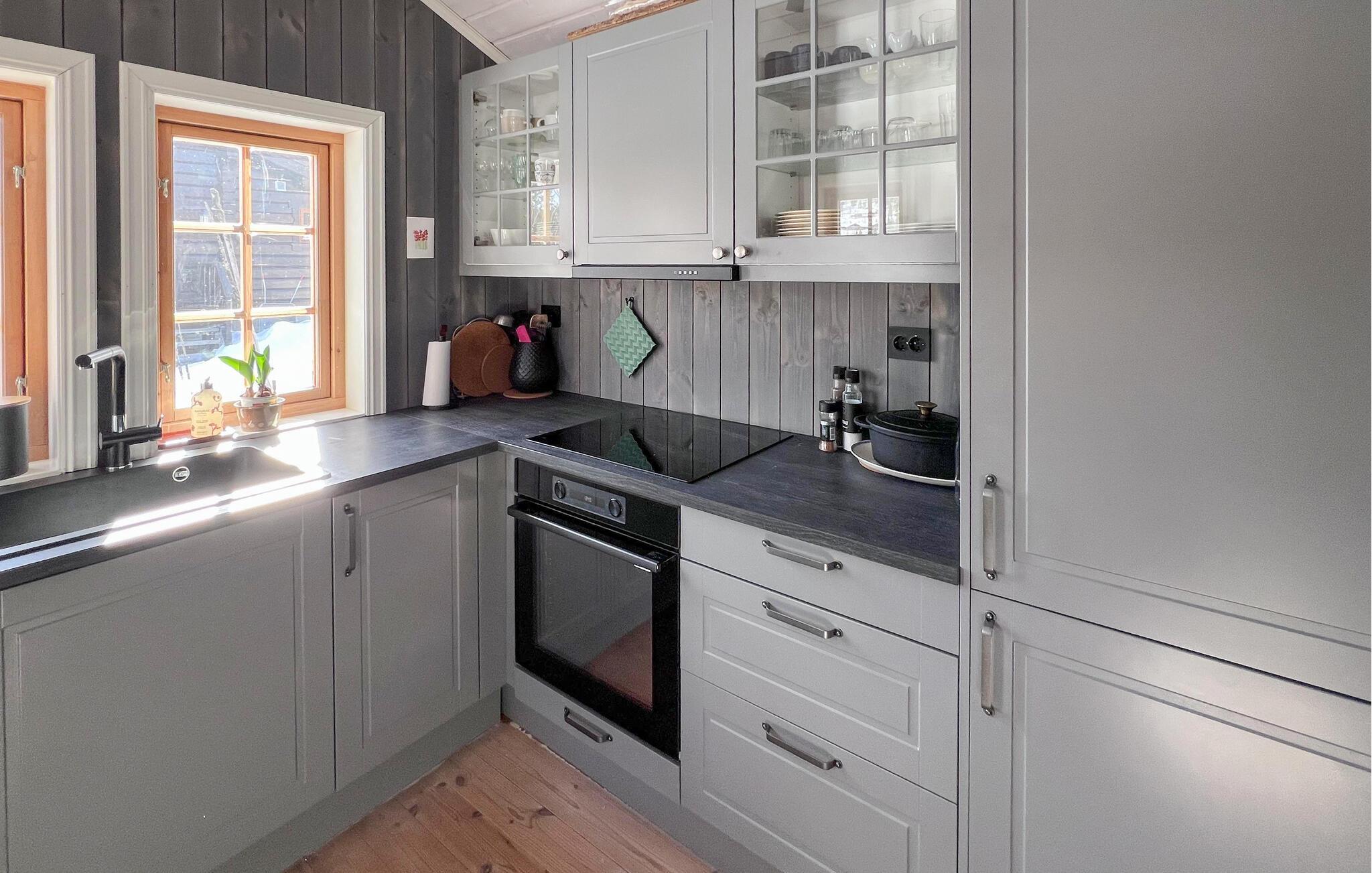 Treten Sie ein und genießen Sie die warme Atmosphäre des Hauses mit viel Holz und liebevollen Details. Der Wohnbereich lädt mit bequemen Sesseln und Sofa zu entspannten Stunden ein. Machen Sie es sich am Kaminofen gemütlich oder verbringen Sie gesellige Abende am schönen Esstisch. Nutzen Sie die Küche mit viel Arbeitsfläche für die Zubereitung Ihrer Mahlzeiten. Ziehen Sie sich anschließend in den oberen Wohnbereich zurück und entspannen Sie vor dem Fernseher. Oder gönnen Sie sich wohltuende Momente in der Sauna.