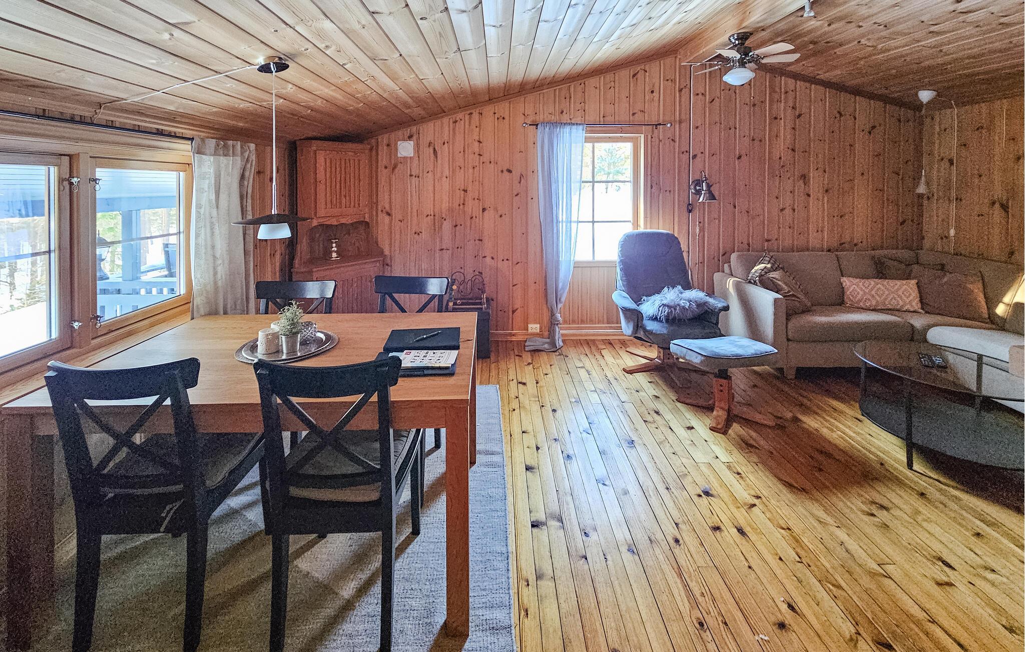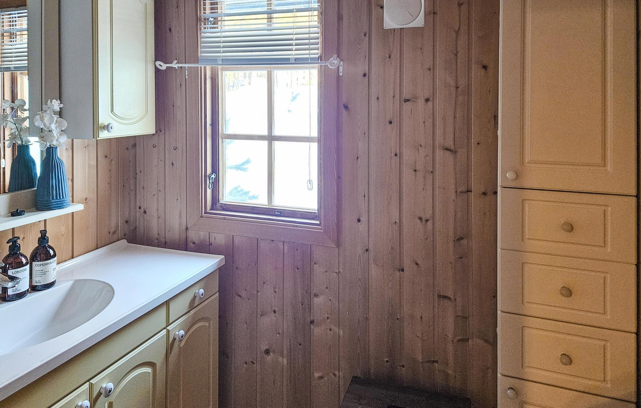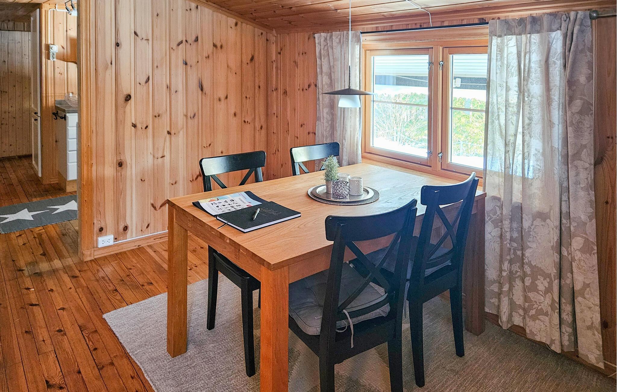 Verbringen Sie Ihren nächsten Urlaub in diesem Ferienhaus nahe Bø in der wunderschönen Region Telemark. Die idyllische Lage mitten in der Natur lädt dazu ein, die Seele baumeln zu lassen und die zahlreichen Freizeitmöglichkeiten in der Umgebung zu entdecken. Das Innere des Hauses überzeugt mit einer warmen Atmosphäre. Die rustikale Holzeinrichtung und der Kaminofen im Wohnzimmer sorgen für eine behagliche Stimmung, perfekt für entspannte Abende nach einem Tag in der Natur. Machen Sie es sich auf dem komfortablen Sofa gemütlich, genießen Sie Ihre Urlaubslektüre oder einen guten Film. Die angrenzende Essecke bietet Platz für gemeinsame Mahlzeiten, während die Küche zum gemeinsamen Kochen einlädt.
