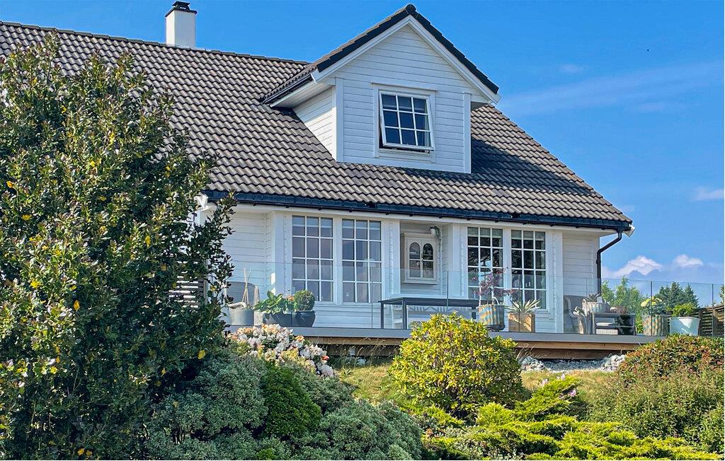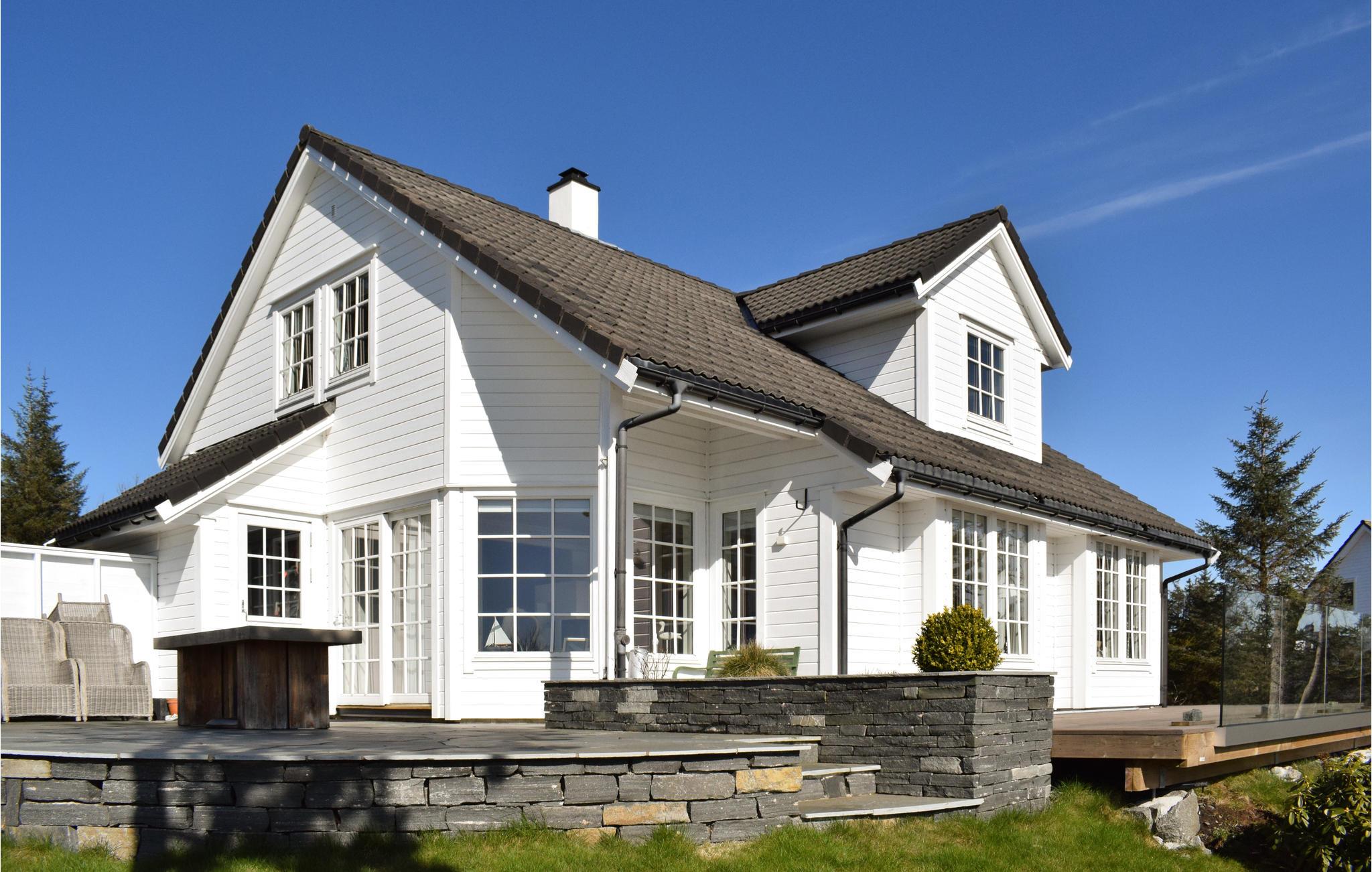 Hier wohnen Sie auf der Insel Stora Kalsøy in einem erstklassigen Ferienhaus auf zwei Ebenen mit allem Komfort. Die großzügigen Räumen der Ferienunterkunft sind elegant eingerichtet und bieten eine helle, sommerliche Atmosphäre. Große Fenster für einen schönen Lichteinfall, Fußbodenheizung im Erdgeschoss und mehrere Schlafzimmer für die ganze Familie. Im Inneren des Hause finden Sie viele kleine Plätze zum Verlieben. Zwei Wöhnräume mit Sofalandschaften, wo Sie es sich schön gemütlich machen können. Setzen Sie sich morgens auf den Bank auf der offenen Terrasse und genießen Sie den Sonnenaufgang. Im riesigen Garten können die Kinder schön toben. Mieten Sie ein Boot, um eine tolle Angeltour zu machen. Wer sich nach einem langen Tag ein bisschen mehr Entspannung braucht, kann sich in der Badewanne verwöhnen. Eine schöne Oase für einen abwechslungsreichen Urlaub.