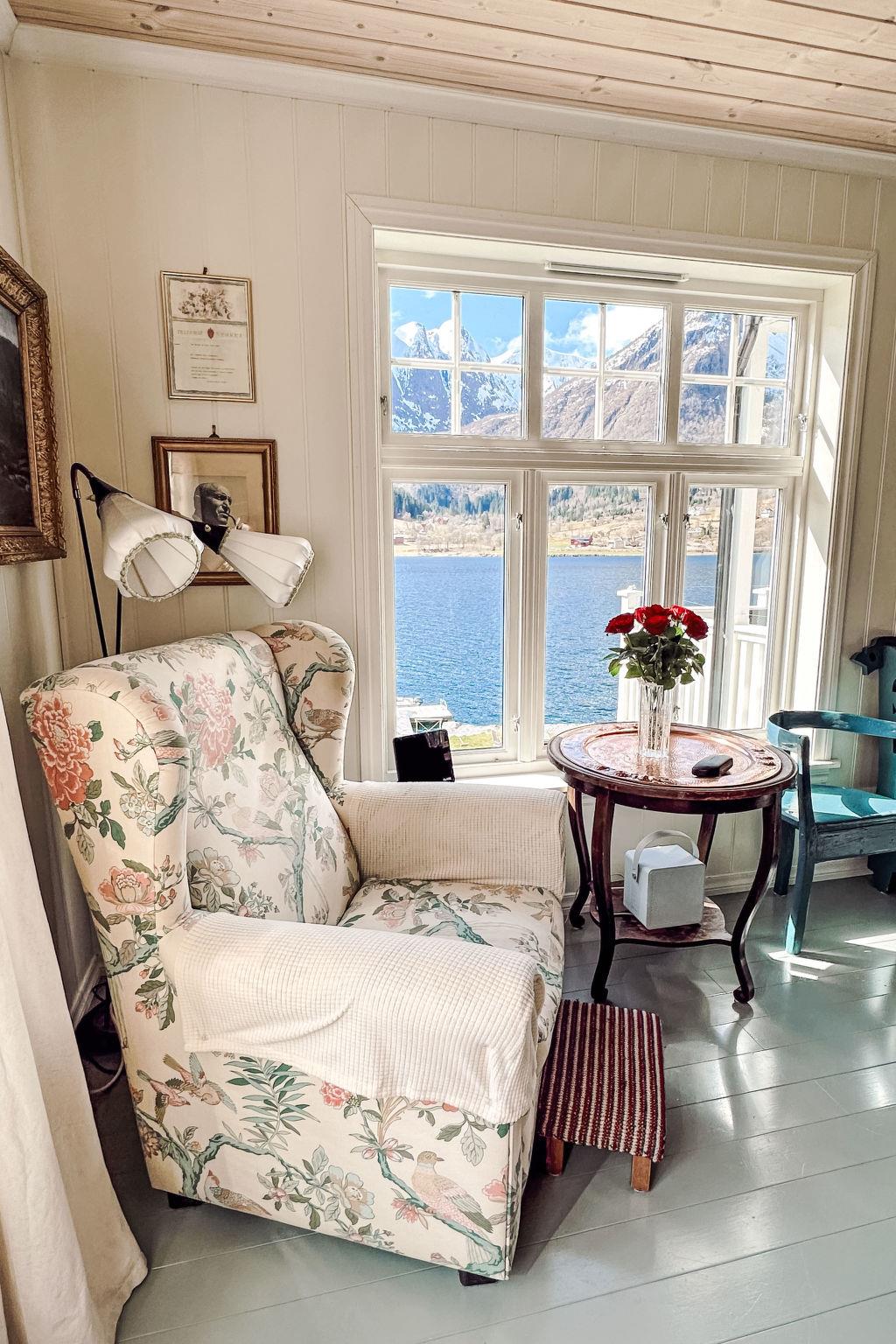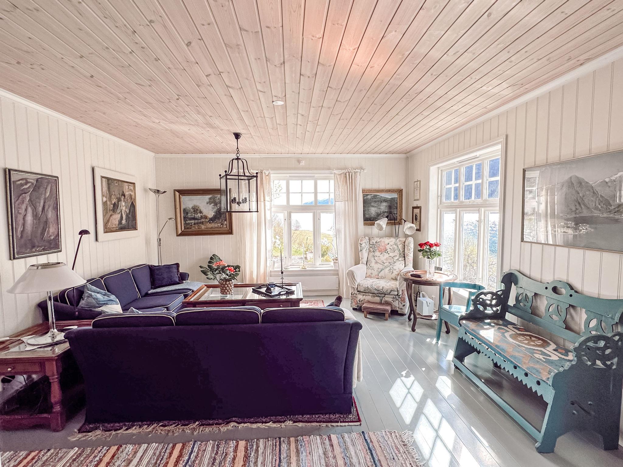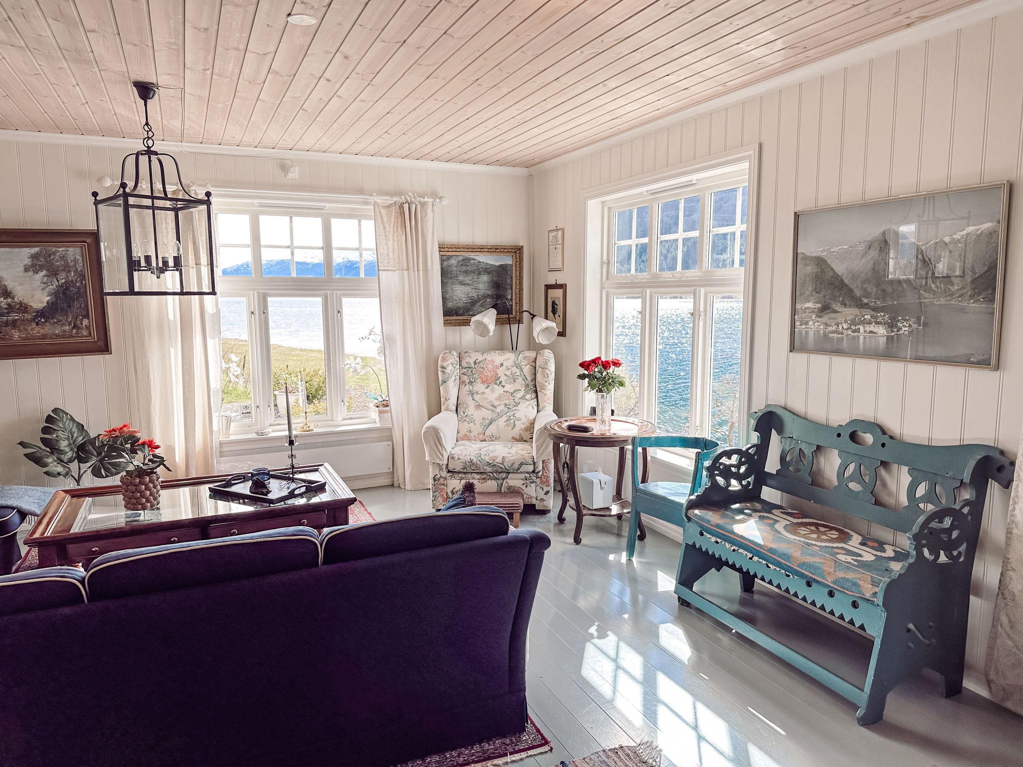 "Villa Esefjord", 6-Zimmer-Haus 200 m2 auf 3 Stockwerken. Renoviert im Jahre 2010, geschmackvoll und gemütlich eingerichtet: Wohnzimmer mit TV. Ausgang zum Garten. Dusche/WC. Heizung. Obergeschoss: Wohn-/Esszimmer mit Schwedenofen und Esstisch. Ausgang zum Balkon. 1 Zimmer mit 1 Doppelbett (180 cm, Länge 200 cm). Offene Küche (Backofen, Geschirrspüler, 4 Glaskeramikplatten, Mikrowelle, Tiefkühler, elektrische Kaffeemaschine). 2. Obergeschoss: 1 Zimmer mit 1 Doppelbett (180 cm, Länge 200 cm). 2 Zimmer, jedes Zimmer mit 1 Doppelbett (150 cm, Länge 200 cm). Sep. WC. Holzdielenboden. Balkon, Terrasse teilweise überdacht, Gartensitzplatz. Terrassenmöbel, Gartengrill. Sehr schöne Sicht auf das Meer, die Berge und fjord. Zur Verfügung: Waschmaschine, Wäschetrockner, Bügeleisen. Internet (WLAN, gratis). Bitte beachten: Nichtraucher-Haus. Private Bootsanlegestelle. Der Gefrierschrank steht im Keller. 924531169