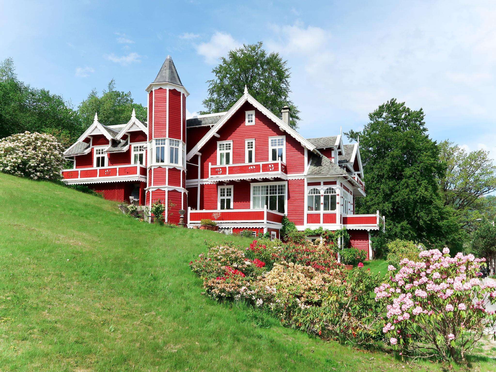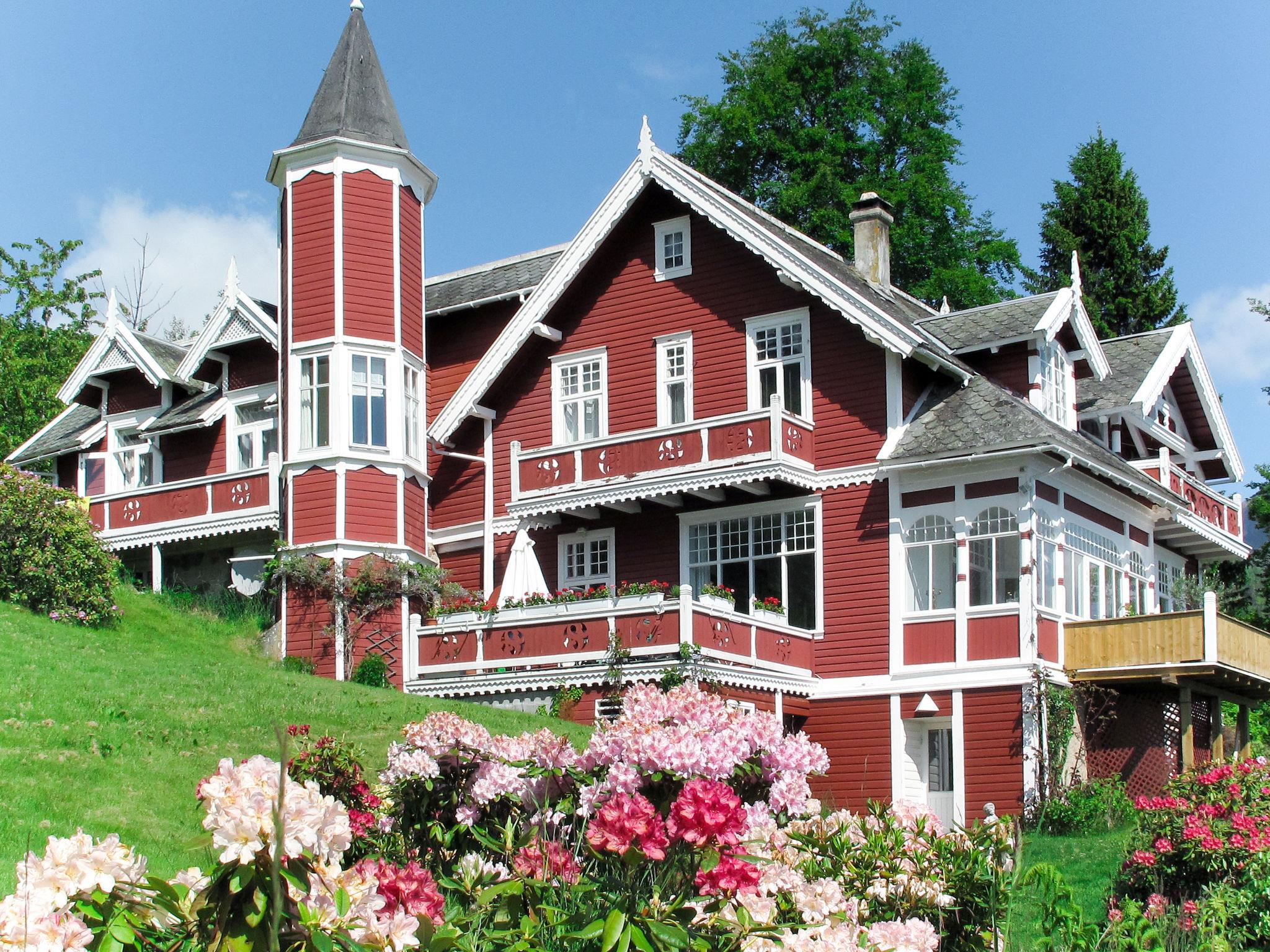 Sehr schönes Zweifamilienhaus "Villa Lorna". 2 km vom Zentrum von Balestrand, 45 km vom Zentrum von Høyanger, 48 km vom Zentrum von Sogndal, im Villenviertel, 30 m vom Meer, Strasse zu überqueren. Zur Mitbenutzung: Grundstück 2'000 m2, gepflegter Garten mit Rasen. Badesteg Badeplatz, Fischverarbeitungsplatz. Zur Verfügung: Boot (extra). Motorboot (auf Bestellung). 30 m Treppenweg bis zum Haus. Parkplatz beim Haus in 30 m. Supermarkt 2 km, Bushaltestelle "Skåsheimselva" 350 m, Bahnstation "Flåm" 120 km, Fähre "Bergen" 209 km, Sandstrand "Balestrand" 2 km, Grasstrand 40 m, Hallenbad 45 km. Angelmöglichkeit 30 m. Bitte beachten: Der Besitzer wohnt im selben Haus. Die Ferienwohnung mit Turm liegt im Seitenflügel der schönen VILLA LORNA und hat einen eigenen, vom Haupthaus unabhängigen Eingang von außen. Am Ort Kanuverleih.