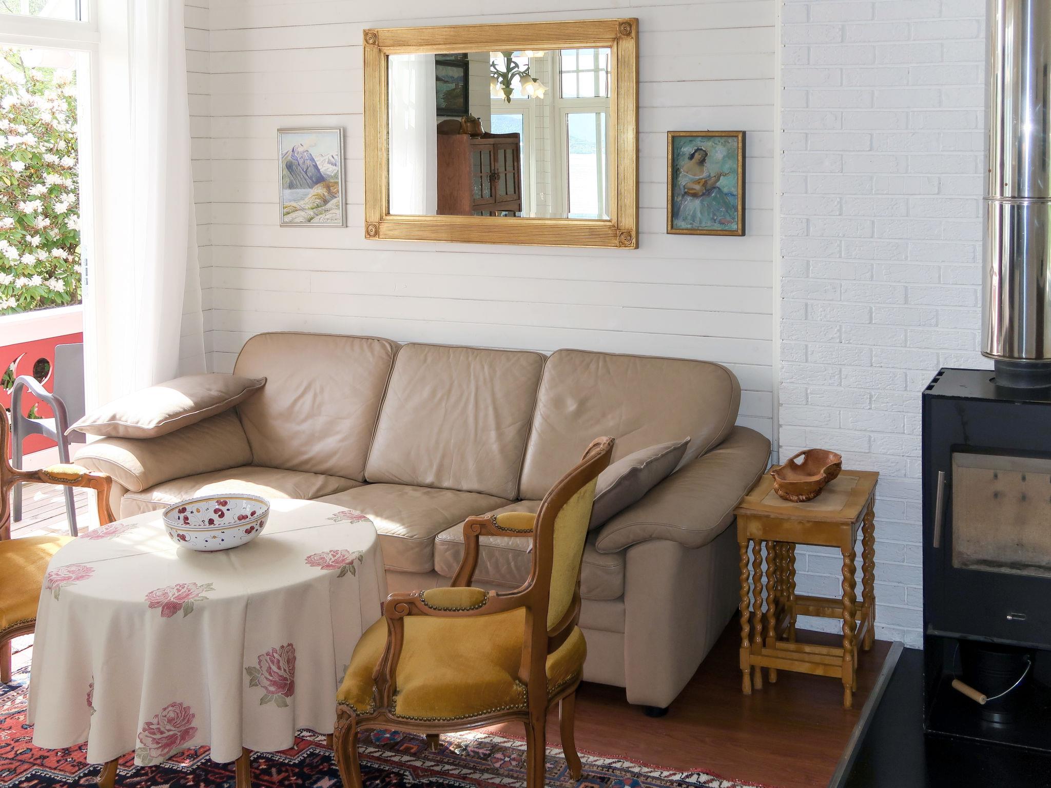 "Villa Lorna", 3-Zimmer-Wohnung 55 m2. Hell, renoviert im Jahre 2015, geschmackvoll und gemütlich eingerichtet: Wohn-/Esszimmer mit Schwedenofen, Esstisch, Sat-TV, Internationale TV-Sender und DVD. 1 Zimmer mit 1 Doppelbett. 1 Zimmer mit 1 Bett (90 cm, Länge 200 cm). Offene Küche (Backofen, 4 Glaskeramikplatten, Toaster, Wasserkocher, elektrische Kaffeemaschine). Dusche/WC. E-Heizung. Holzdielenboden. Terrasse. Terrassenmöbel, Gartengrill. Sehr schöne Sicht auf das Meer, die Berge und fjord. Zur Verfügung: Waschmaschine. Internet (WLAN, gratis). Bitte beachten: Nichtraucher-Haus. Rauchmelder, Feuerlöscher. Kühl-Gefrierkombination. 924531169