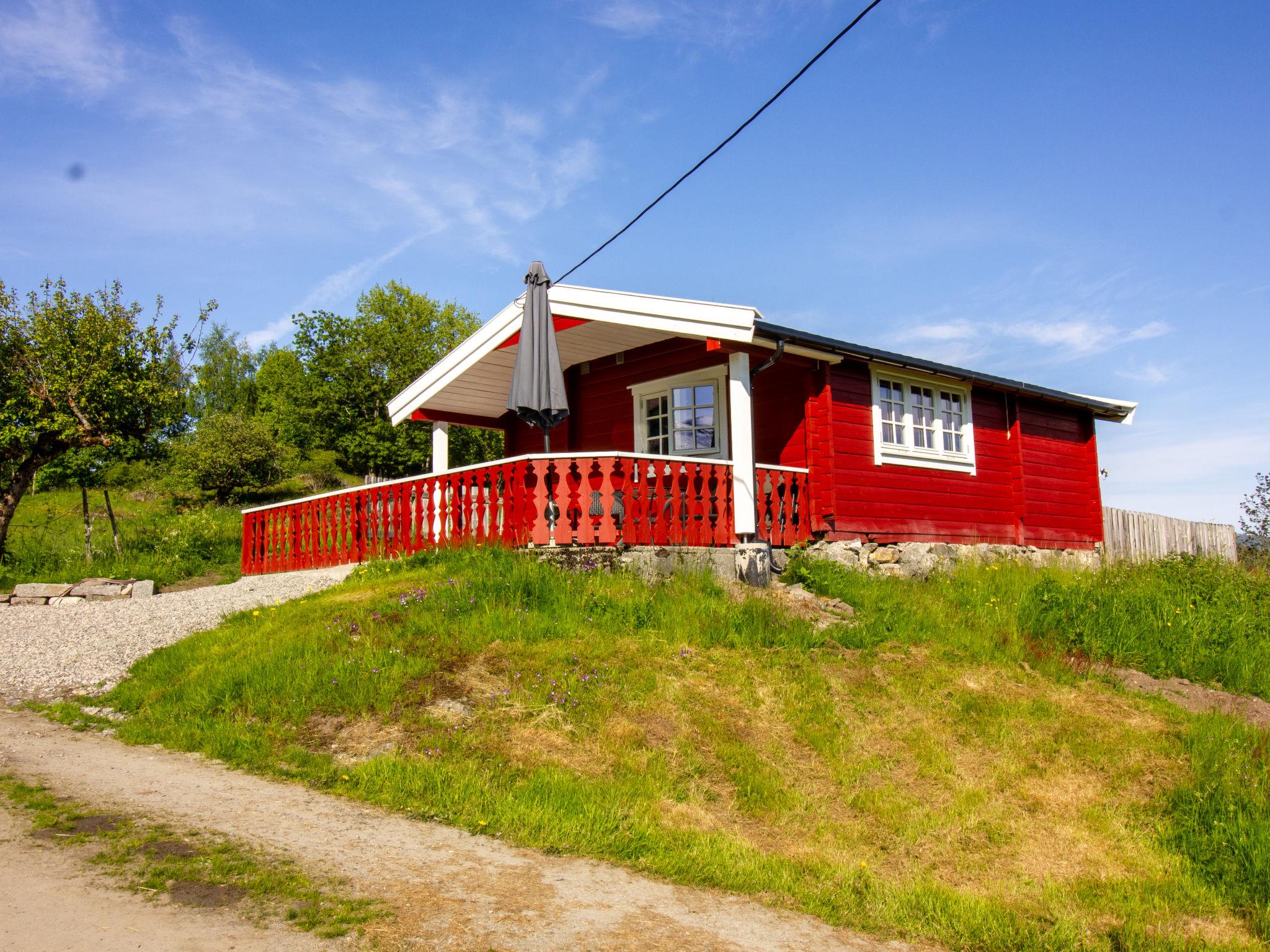 "Naustvollen", 2-Zimmer-Haus 25 m2. Objekt geeignet für 2 Erwachsene. Gemütlich und mit viel Holz eingerichtet: Wohnzimmer mit 1 Diwanbett, Esstisch und Sat-TV. 1 Doppelzimmer mit 2 Betten (75 cm, Länge 200 cm). Kleine, offene Küche (Backofen, 4 Glaskeramikplatten, Wasserkocher, Mikrowelle, Tiefkühler, elektrische Kaffeemaschine). Dusche, sep. WC. E-Heizung. Terrasse, Gartensitzplatz. Terrassenmöbel, Gartengrill (mobil). Schöne Sicht auf das Meer, die Landschaft und fjord. Zur Verfügung: Internet (WLAN, gratis). Bitte beachten: Nichtraucher-Haus. Rauchmelder. 924531169