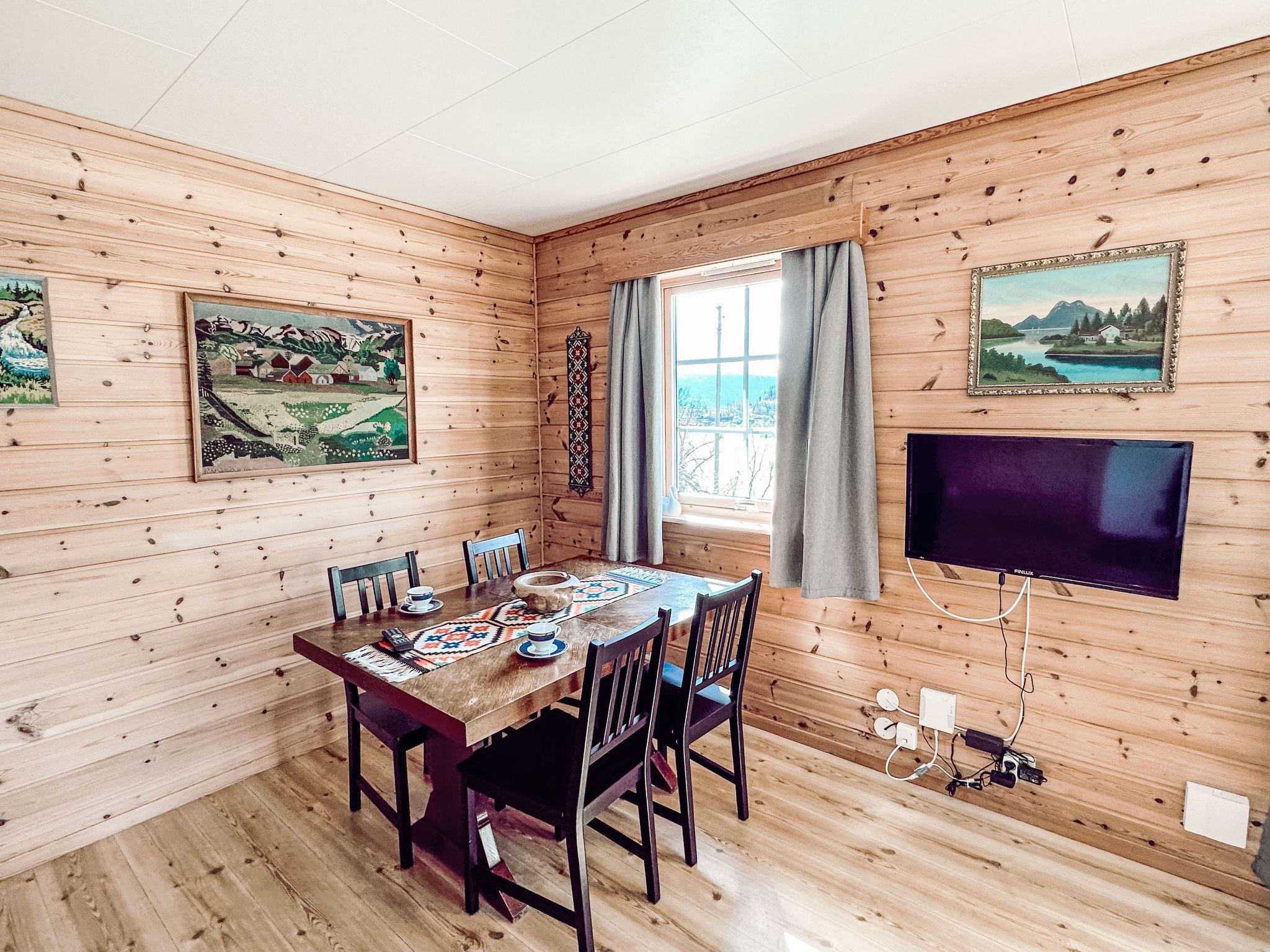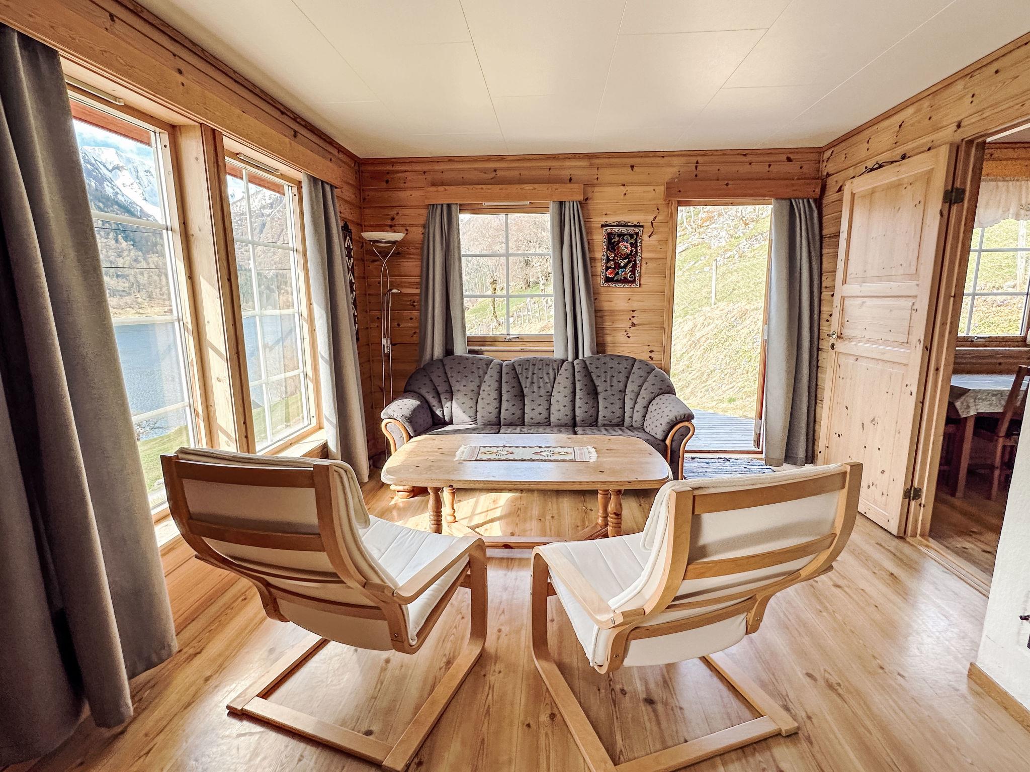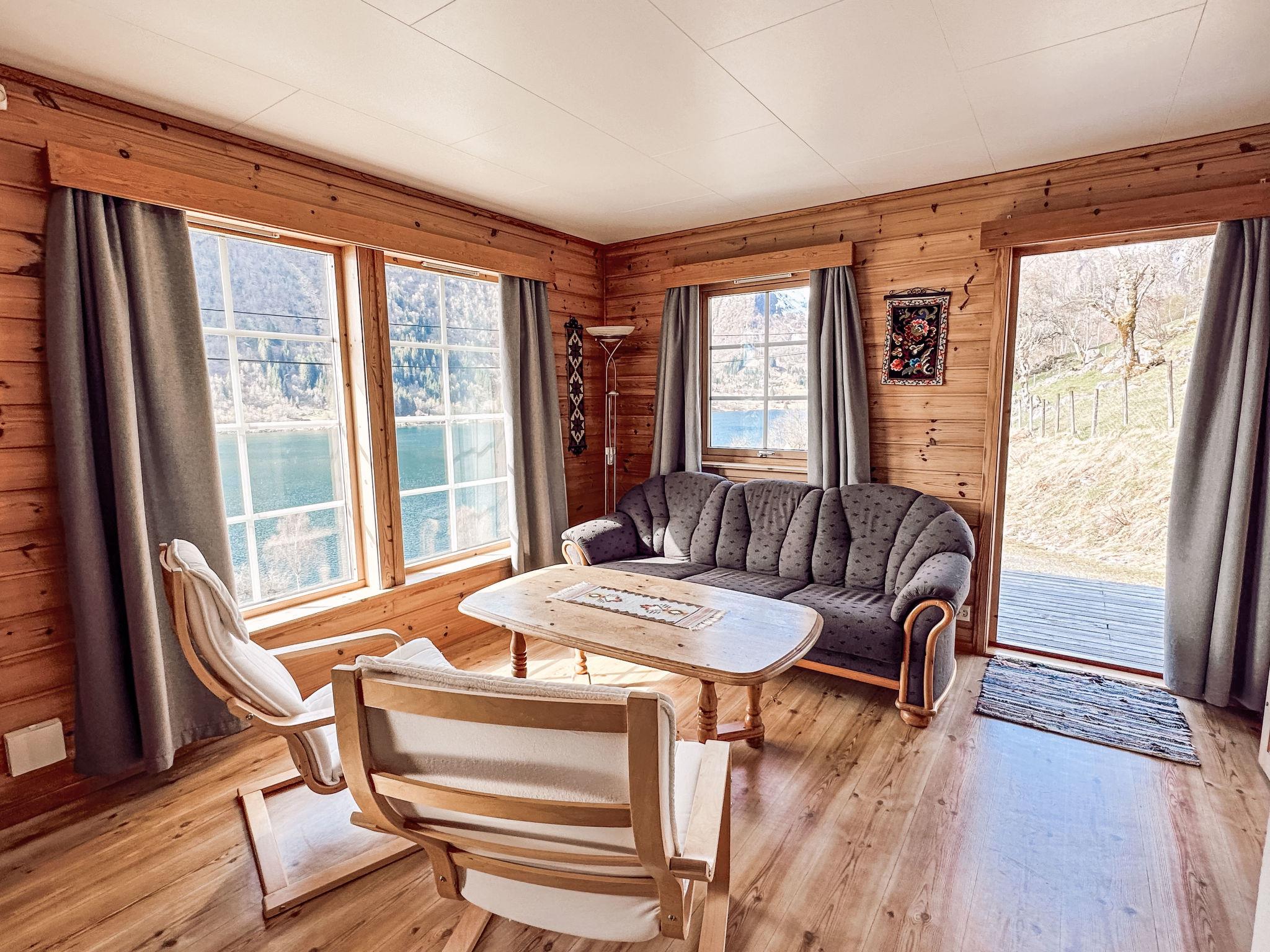 "Pærehagen", 3-Zimmer-Landhaus 69 m2. Gemütlich und mit viel Holz eingerichtet: Wohn-/Esszimmer mit Schwedenofen, Esstisch und TV. Ausgang zur Terrasse. 1 Zimmer mit 1 Doppelbett (150 cm, Länge 200 cm). 1 Zimmer mit 2 Betten (75 cm, Länge 190 cm). Küche (4 Kochplatten, Backofen, Toaster, Wasserkocher, Mikrowelle, Tiefkühler, elektrische Kaffeemaschine) mit Esstisch. Dusche/WC. E-Heizung, Fussbodenheizung. Terrasse. Terrassenmöbel, Gartengrill (mobil), Abstellkammer. Sehr schöne Sicht auf das Meer, die Berge, die Landschaft und fjord. Zur Verfügung: Waschmaschine. Internet (WLAN, gratis). Bitte beachten: Nichtraucher-Haus. Gefriertruhe ca. 300 l. TV via casting. 924531169