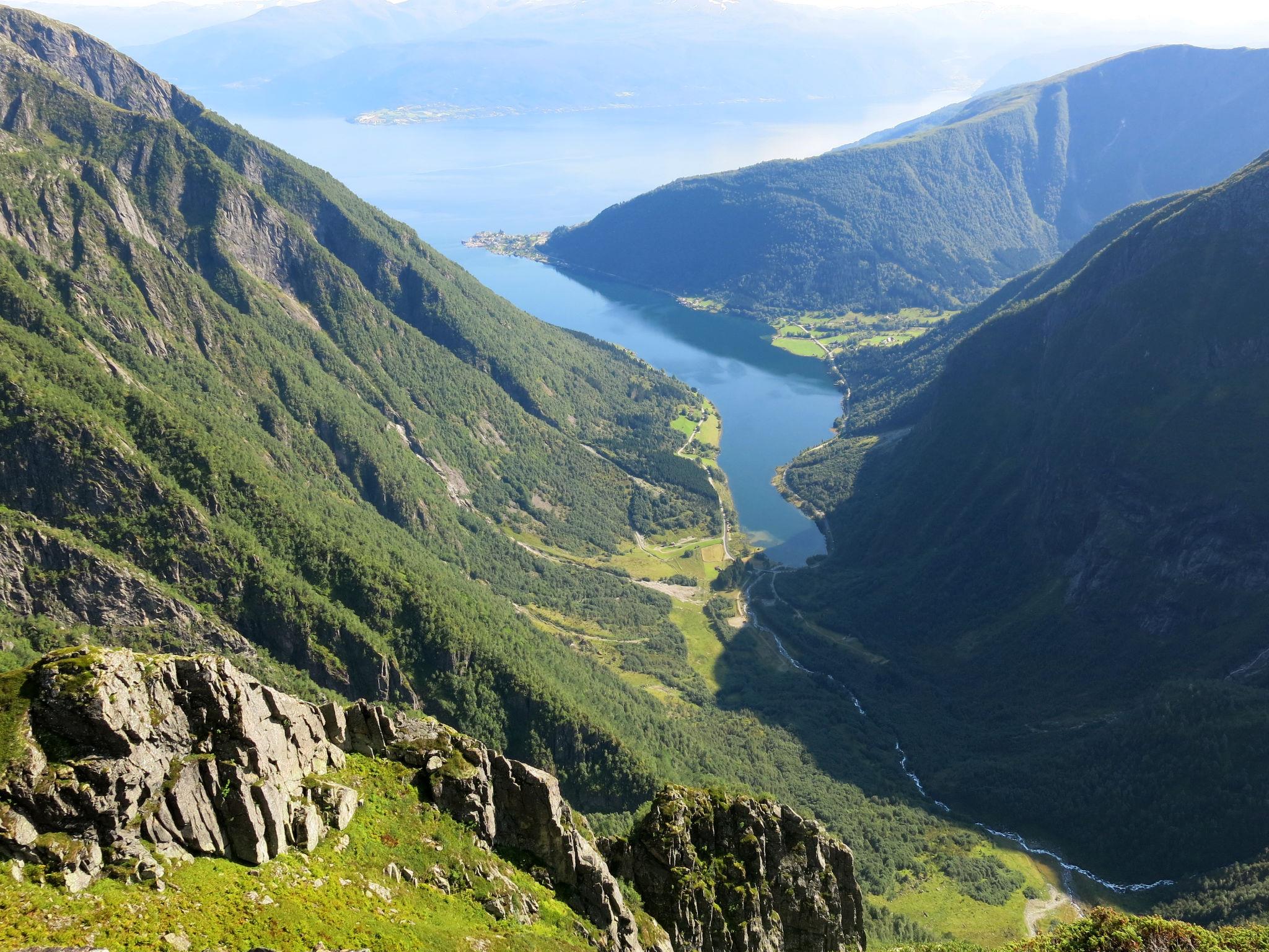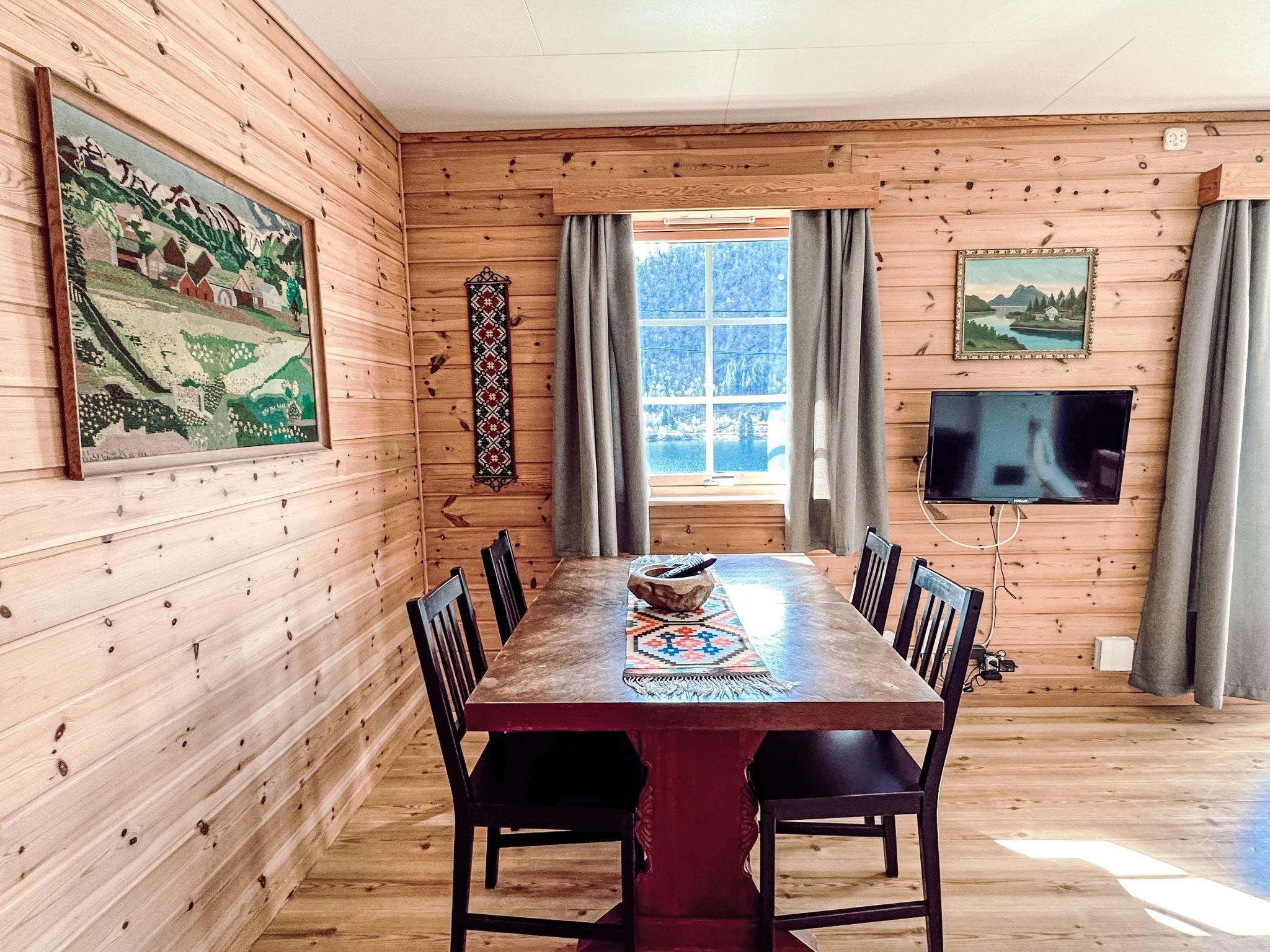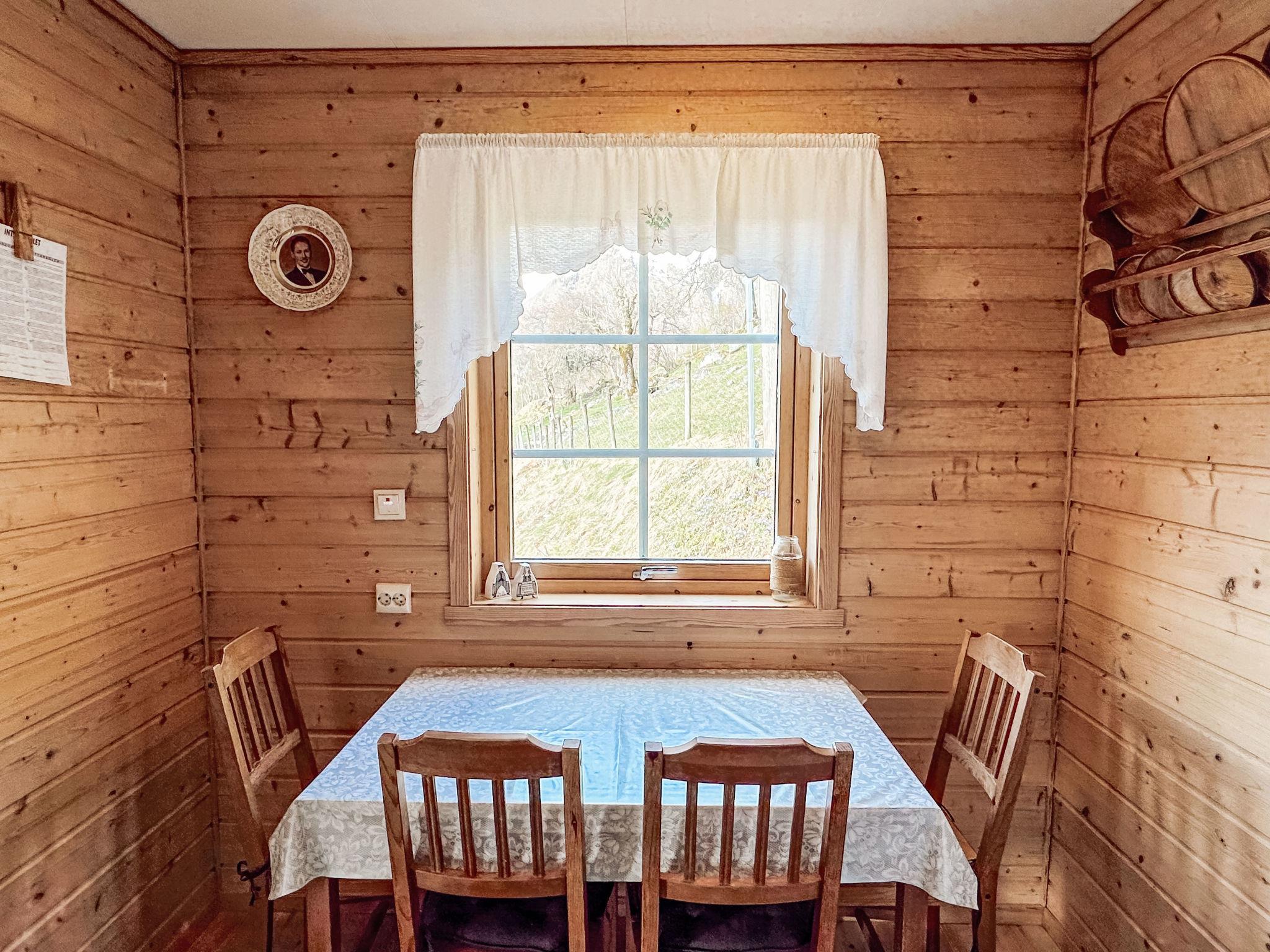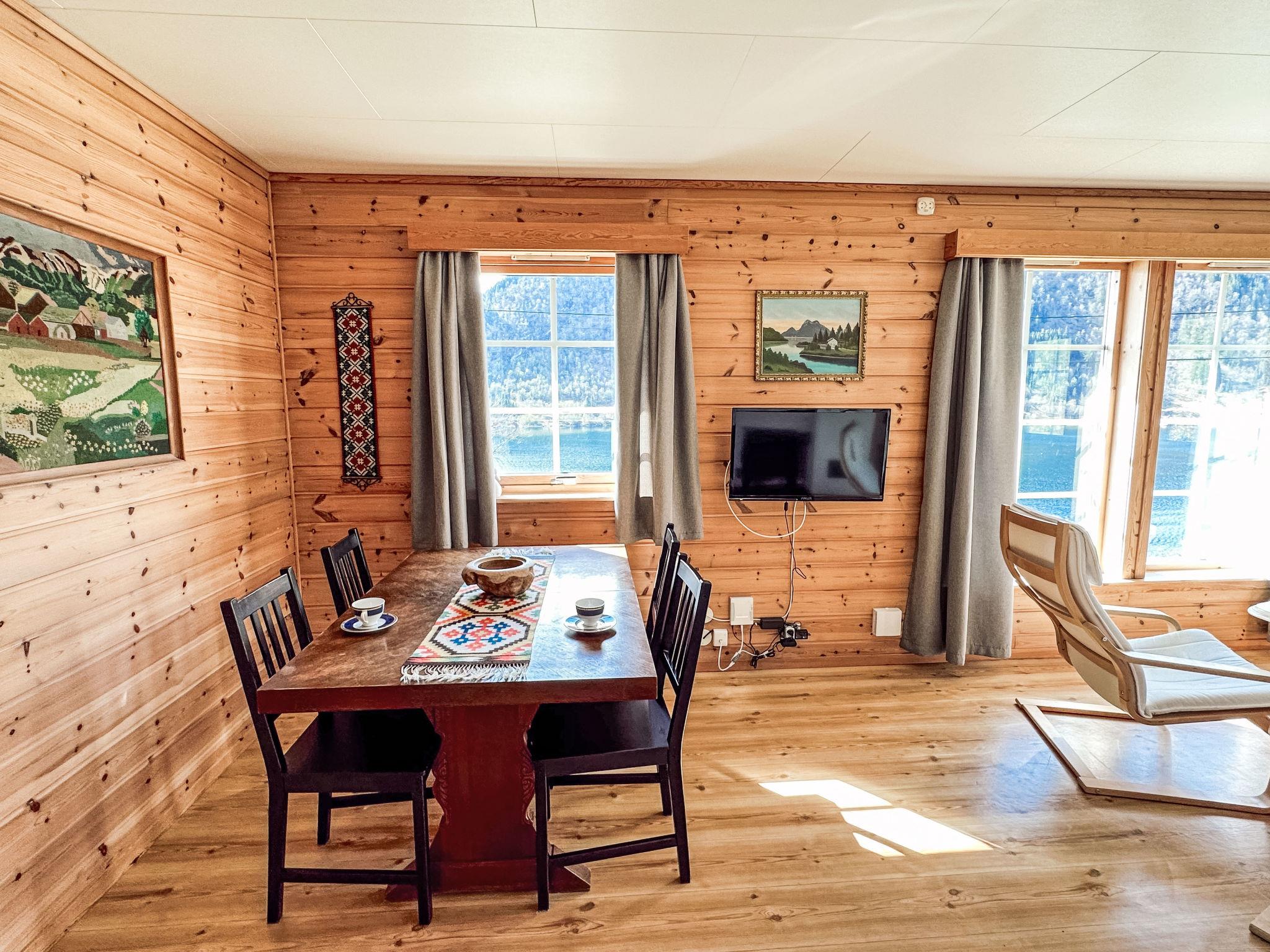 "Pærehagen", 3-Zimmer-Landhaus 69 m2. Gemütlich und mit viel Holz eingerichtet: Wohn-/Esszimmer mit Schwedenofen, Esstisch und TV. Ausgang zur Terrasse. 1 Zimmer mit 1 Doppelbett (150 cm, Länge 200 cm). 1 Zimmer mit 2 Betten (75 cm, Länge 190 cm). Küche (4 Kochplatten, Backofen, Toaster, Wasserkocher, Mikrowelle, Tiefkühler, elektrische Kaffeemaschine) mit Esstisch. Dusche/WC. E-Heizung, Fussbodenheizung. Terrasse. Terrassenmöbel, Gartengrill (mobil), Abstellkammer. Sehr schöne Sicht auf das Meer, die Berge, die Landschaft und fjord. Zur Verfügung: Waschmaschine. Internet (WLAN, gratis). Bitte beachten: Nichtraucher-Haus. Gefriertruhe ca. 300 l. TV via casting. 924531169