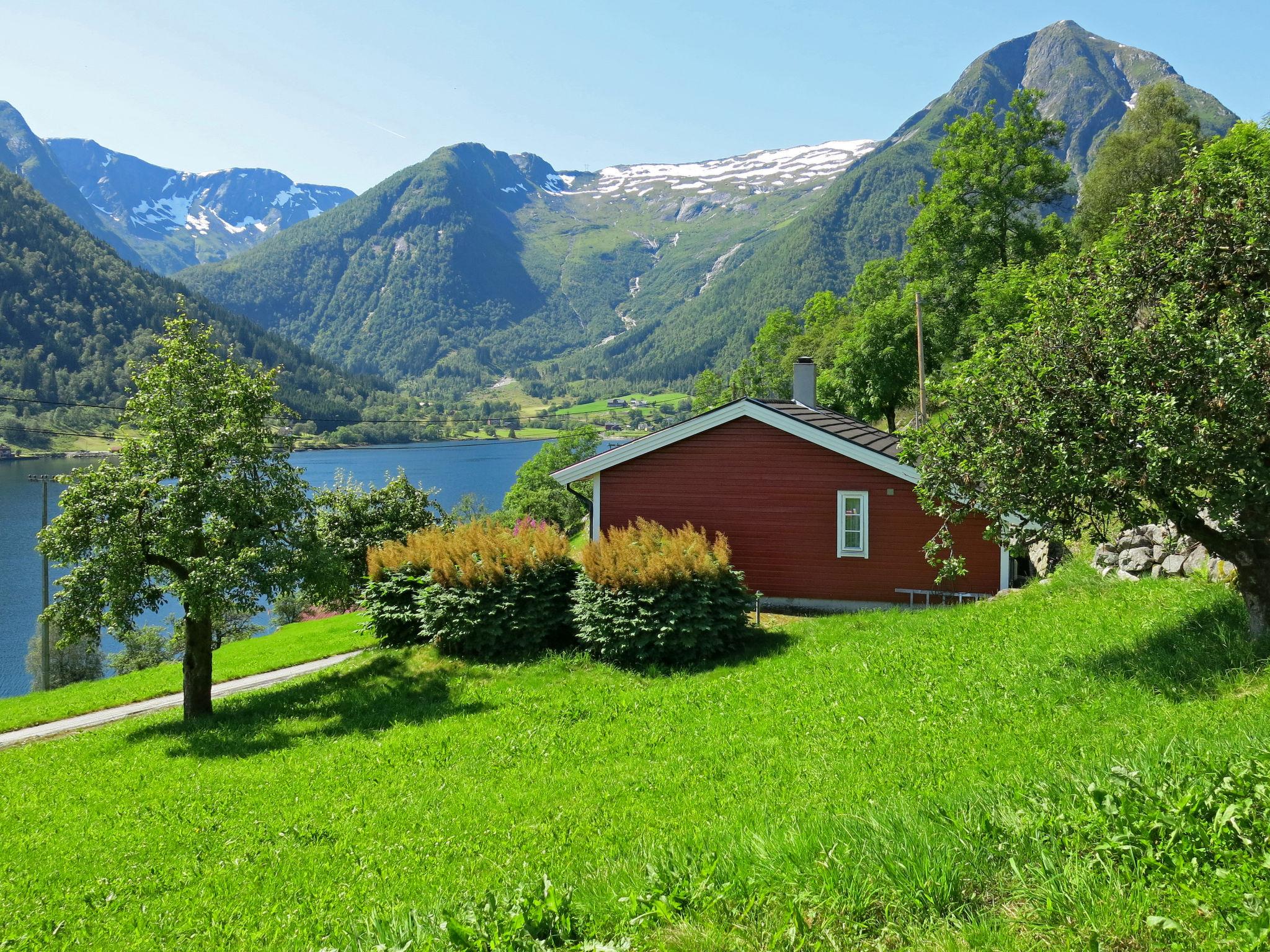 Sehr schönes, gemütliches Landhaus "Pærehagen", umgeben von Bäumen und Wiesen. 7 km vom Zentrum von Balestrand, 40 km vom Zentrum von Sogndal, 51 km vom Zentrum von Høyanger, erhöhte Lage am Hang, 100 m vom Meer, 100 m vom Fjord. Zur Alleinbenutzung: naturbelassenes Grundstück mit Wiese, Obstgarten, Parkplatz beim Haus. Supermarkt 7 km, Bushaltestelle 700 m, Fähre "Bergen" 189 km, Kieselstrand "Balestrand" 7 km. Wanderwege ab Haus, Angelmöglichkeit 100 m.
