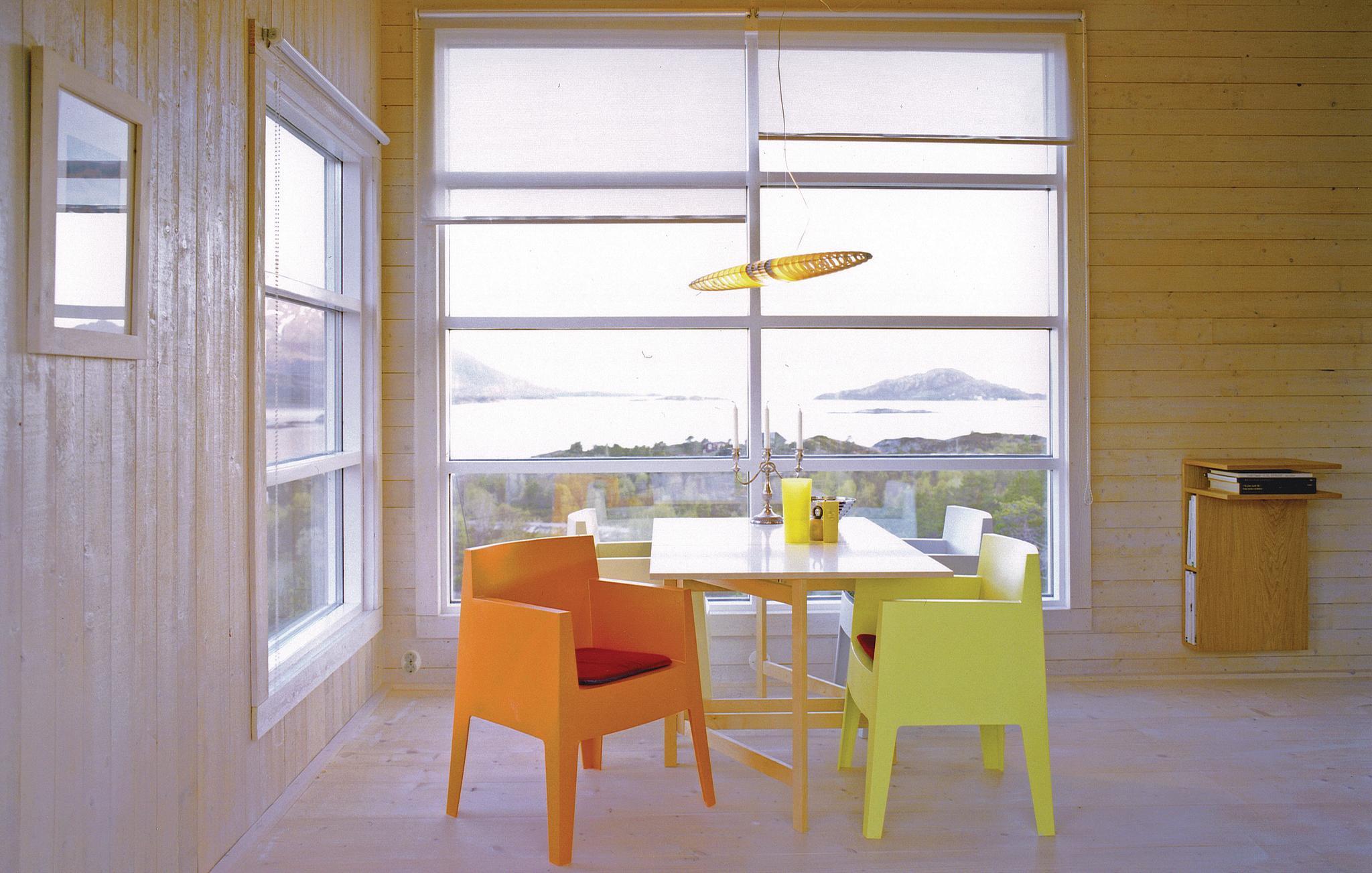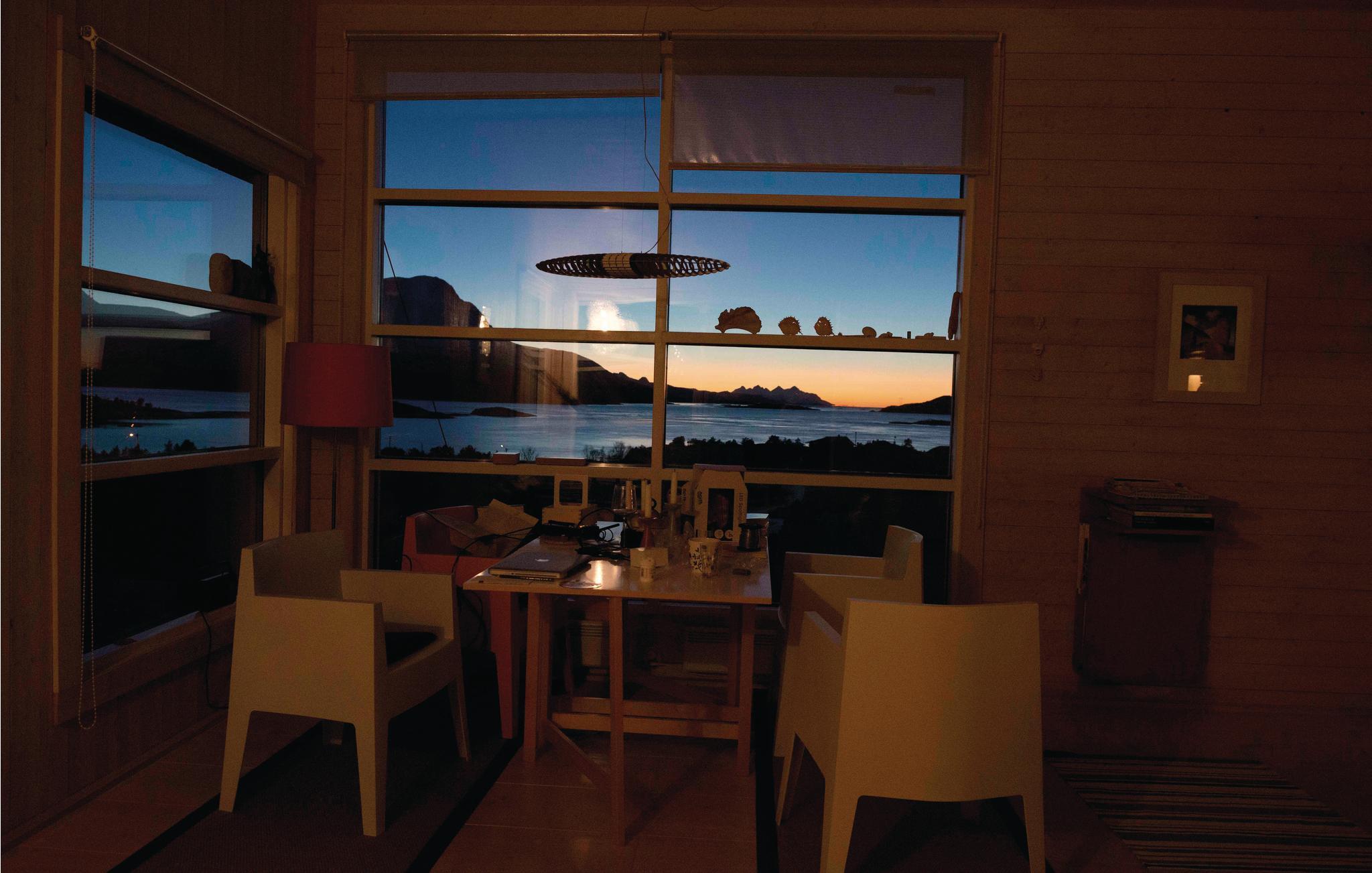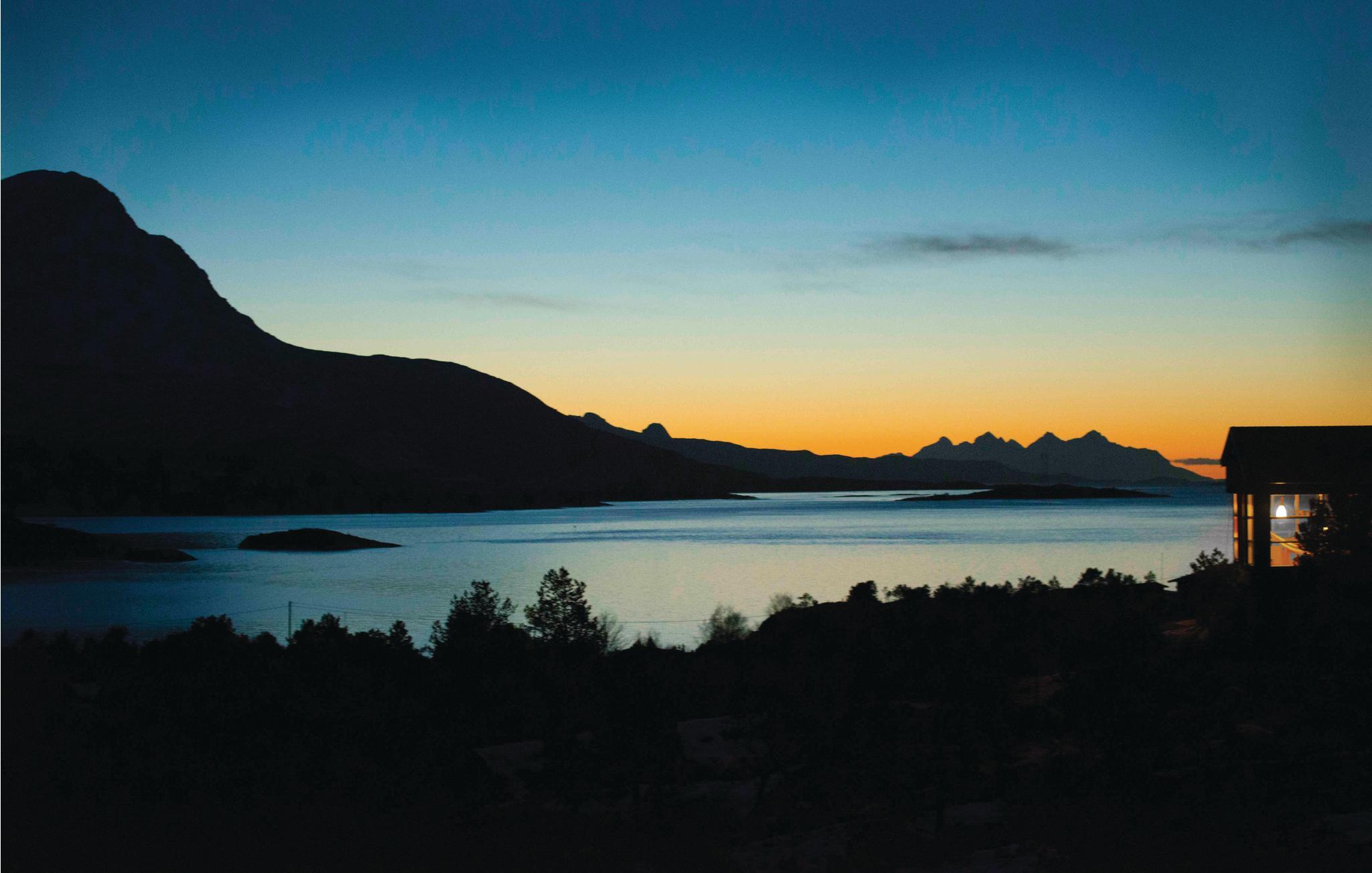 Freuen Sie sich auf Ihren nächsten Norwegen-Urlaub, wo Sie dieses einfache Ferienhaus inmitten bezaubernder Natur erwartet. Dieses Haus bietet Ihnen eine herrliche Aussicht auf einen der schönsten Fjorde Norwegens und ist ideal für Naturliebhaber. Genießen Sie das helle Interieur in dem modern eingerichteten Haus. Der Wohnbereich ist mit großen Fenstern ausgestattet, die viel Licht hereinlassen und Ihnen einen atemberaubenden Panoramablick bieten. Machen Sie es sich auf dem Sofa gemütlich und entspannen Sie sich vor dem Kaminofen. Der Essbereich mit farbenfrohen Stühlen lädt zu gemeinsamen Mahlzeiten ein.
