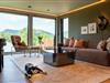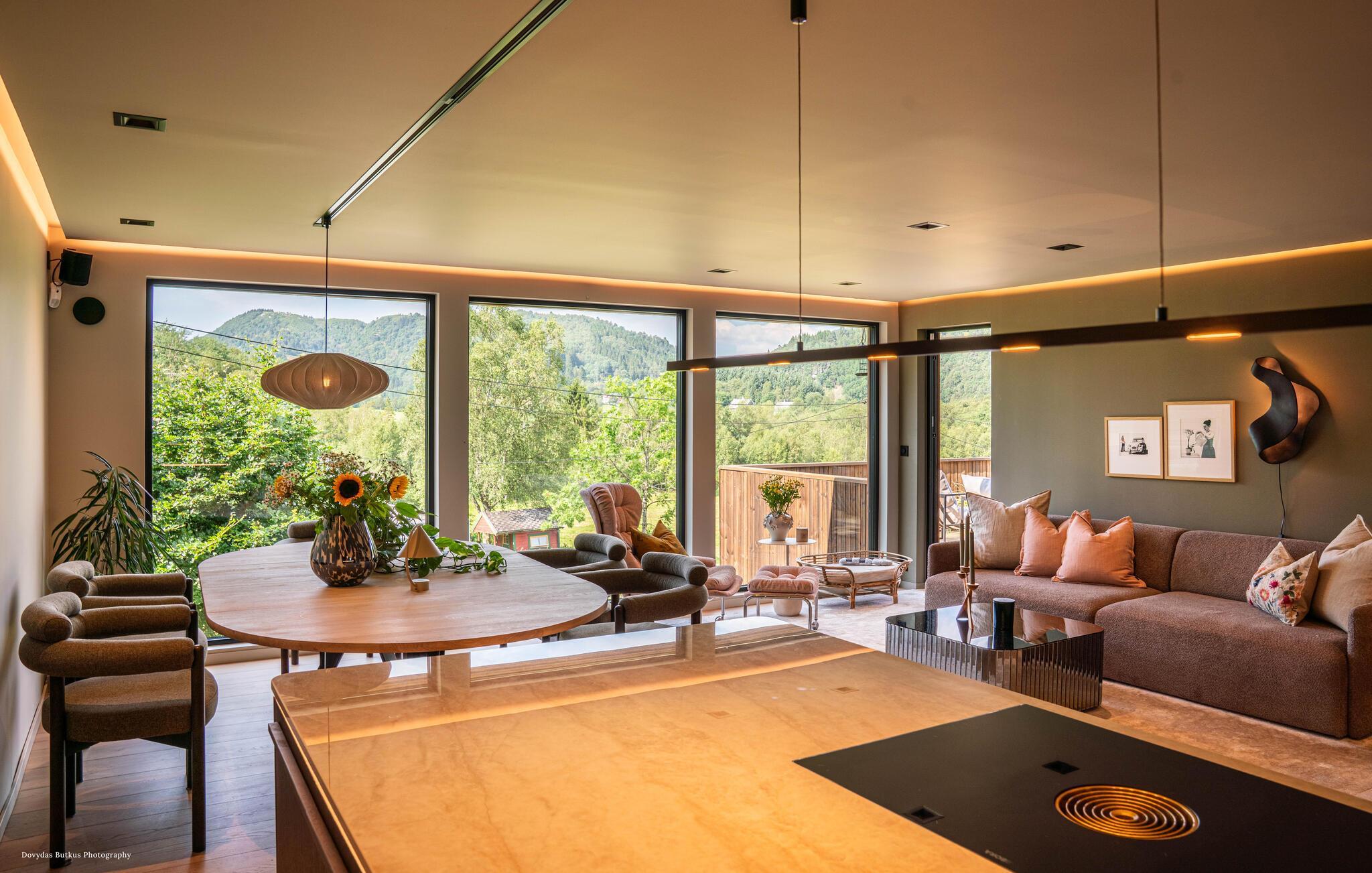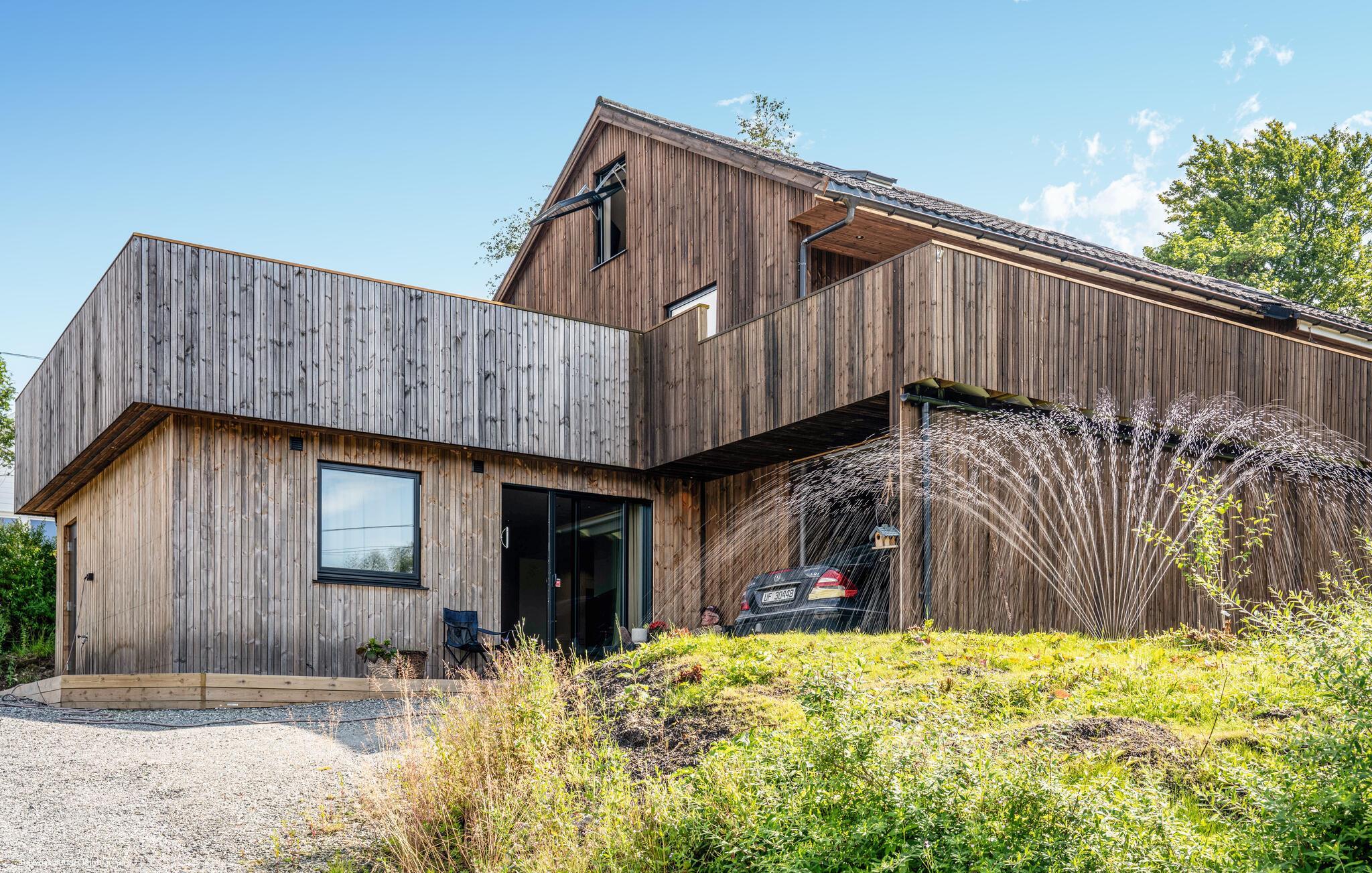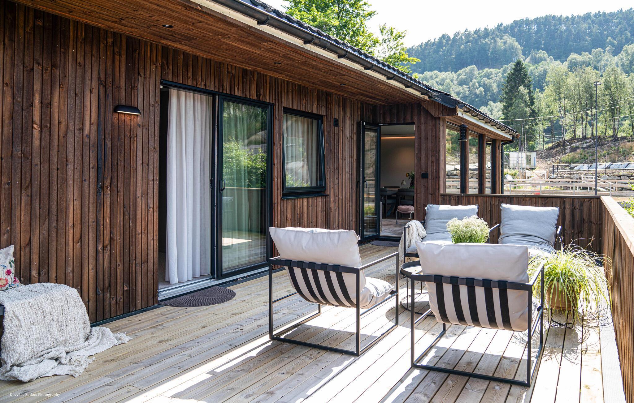 Dieses holzverkleidete Haus mit den großen Glasfronten lädt Sie zu einer erholsamen Auszeit vom Alltag ein. Tanken Sie hier neue Energie, während Sie den Panoramablick in die Landschaft genießen und ganz in Ihr Urlaubsgefühl eintauchen. Lehnen Sie sich entspannt auf der bequemen Sofalandschaft zurück, hören Sie die neuesten Hits der Charts oder streamen Sie Ihre Lieblingsserie. Bereiten Sie gemeinsam leckere Mahlzeiten zu und servieren Sie sie mit einem Glas Wein.