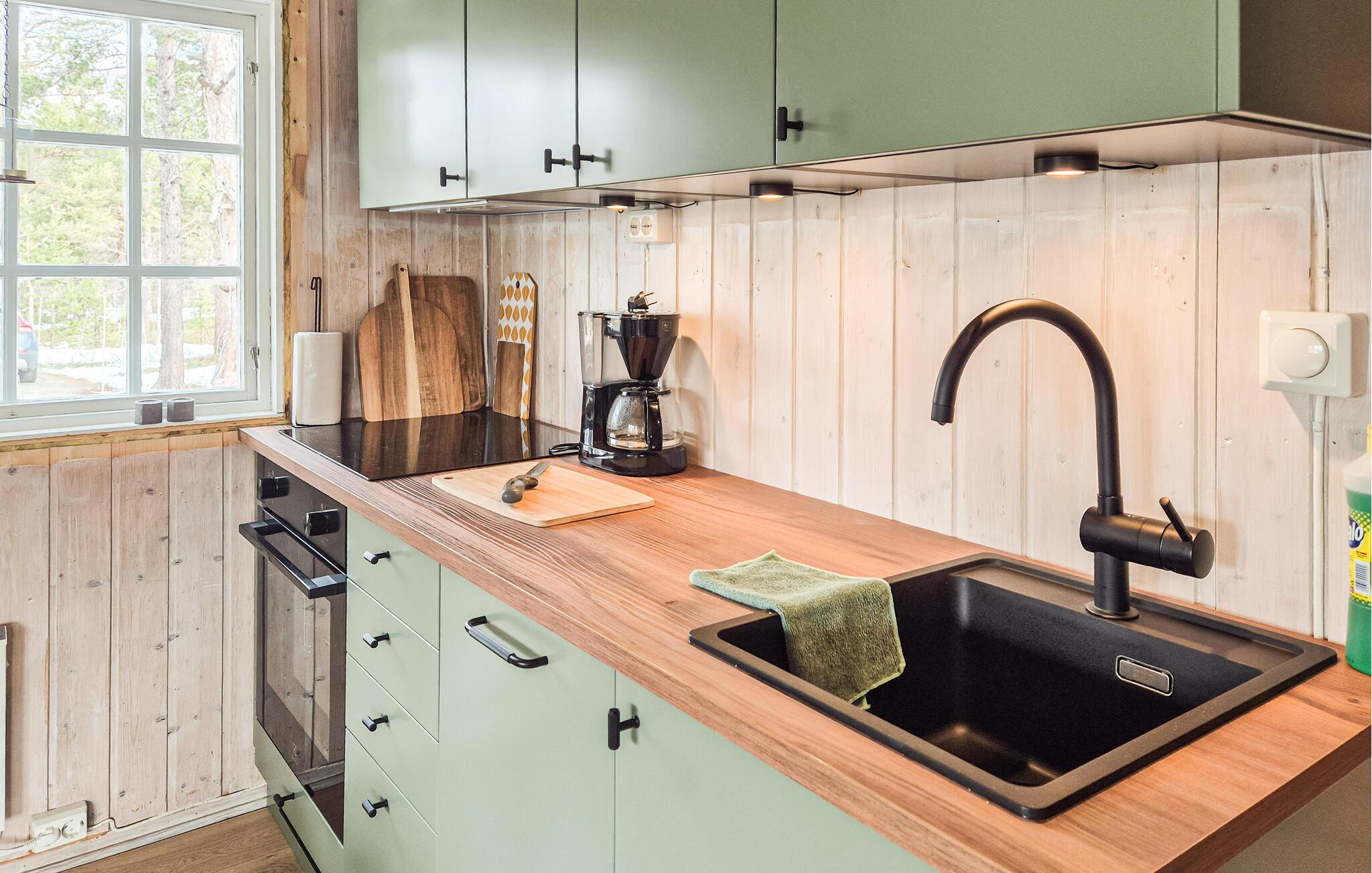 Entspannen Sie sich und genießen die Ruhe der Natur und die heimelige Atmosphäre dieses praktisch eingerichteten Ferienhauses. Hier wird Familienzeit großgeschrieben und Sie können viele Stunden beim Spielen, Filmschauen oder gemeinsamen Kochen und Essen verbringen. Aber nicht nur das gemütliche Innere, sondern auch die große Holzterrasse machen das Haus zu etwas besonderem. Legen Sie sich in die Sonne oder nehmen am Morgen Ihr Frühstück im Freien ein, bevor Sie sich zu Ihren Aktivitäten im wunderschönen Umland aufmachen.