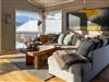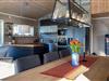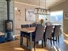 In dieser wundervollen Berghütte in Bjorli erwarten Sie eine atemberaubende Aussicht, eine gemütliche Atmosphäre und zahlreiche Möglichkeiten für Outdoor-Aktivitäten, sowohl im Sommer als auch im Winter. Die lichtdurchflutete Hütte besticht durch ihre große Fensterfront, die Ihnen einen spektakulären Blick auf die umliegenden Berge bietet. Entspannen Sie sich im großzügigen Wohnbereich mit stilvoller Einrichtung, bequemen Sofas und einem Kaminofen, der an kühlen Abenden für eine wohlige Wärme sorgt. Der offene Essbereich mit einem großen Holztisch lädt zu gemeinsamen Mahlzeiten ein, während die moderne Küche mit einer stilvollen Holz- und Steinkombination zum Kochen inspiriert.