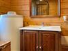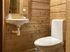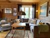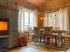 Genießen Sie erholsame Urlaubstage in dieser einladenden Hütte, die Wärme, Komfort und Naturerlebnis miteinander verbindet. Betreten Sie den hellen Wohnraum mit seiner behaglichen Holzverkleidung und lassen Sie sich vom knisternden Kaminfeuer begrüßen. Entspannen Sie auf der bequemen Sofaecke oder lesen Sie ein Buch im gemütlichen Sessel. Am schönen Esstisch mit Blick ins Grüne genießen Sie gemeinsame Mahlzeiten, während sanftes Licht durch die großen Fenster fällt. Die Küche bietet reichlich Platz zum Kochen. Eine offene Treppe führt ins Dachgeschoss mit zusätzlichem Wohnbereich, ideal zum Entspannen und Fernsehen.