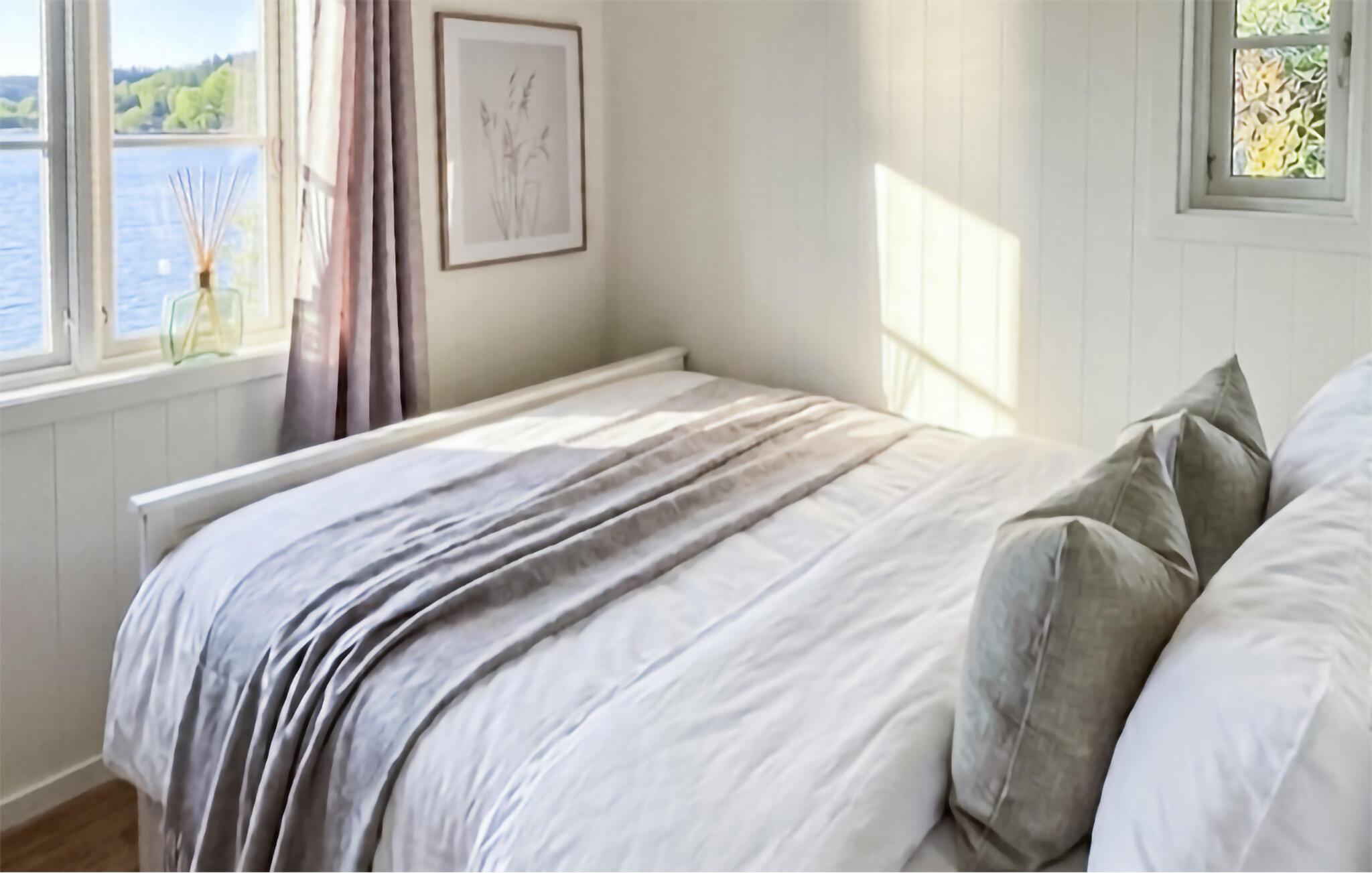 Dieses Haus ist der ideale Rückzugsort, wenn Sie sich nach Ruhe und Erholung inmitten der Natur sehnen. Es liegt auf einer Insel, direkt am Wasser und bietet Ihnen einen wunderschönem Blick über die Küstenlandschaft. Im Inneren schaffen viel warmes Holz, bequeme Sofas und helle Räume eine gemütliche Atmosphäre, die zum Plaudern, Lesen und gemeinsamen Kochen einlädt.
