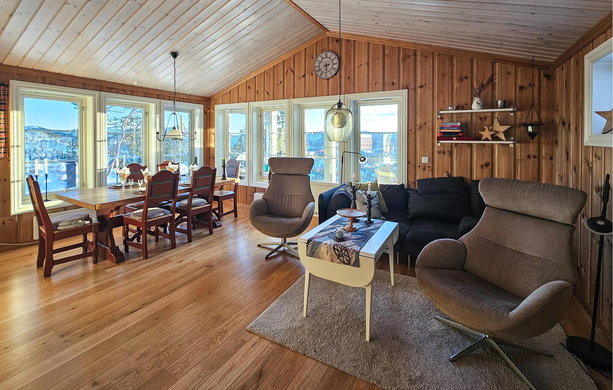 Erleben Sie unvergessliche Momente in diesem komfortablen Refugium, eingebettet in die wilde Natur von Eggedal. Freuen Sie sich auf gesellige Kochabende in der gut ausgestatteten Küche und genießen Sie Ihre Mahlzeiten im behaglichen Licht des offenen Wohnbereichs. Machen Sie es sich nach einem langen Tag auf der Piste auf dem bequemen Sofa gemütlich oder entspannen Sie Ihre Muskeln nach einer ausgedehnten Wanderung in der hauseigenen Sauna.