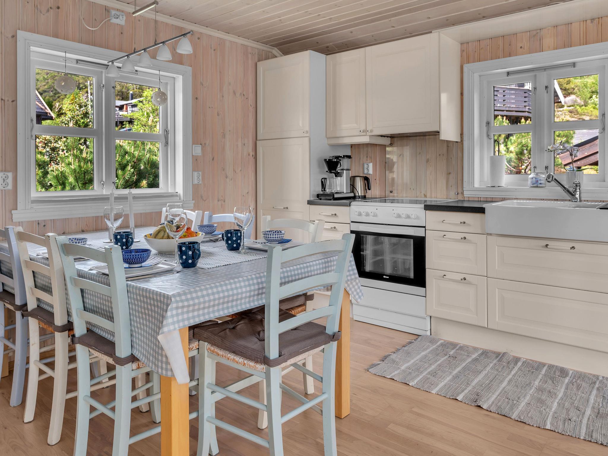 Feriensiedlung "Solfridbu". 12 km vom Zentrum von Kyrkjebygd, 78 km vom Zentrum von Mandal, 83 km vom Zentrum von Kristiansand, 400 m vom See. Badeplatz. Zur Alleinbenutzung: naturbelassenes Grundstück. Terrasse, Gartenmöbel, Grill, Parkplatz auf dem Grundstück. Einkaufsgeschäft 12 km, Bushaltestelle "Eikerapen" 300 m, Fähre "Kristiansand" 83 km. Angelmöglichkeit 2 km.