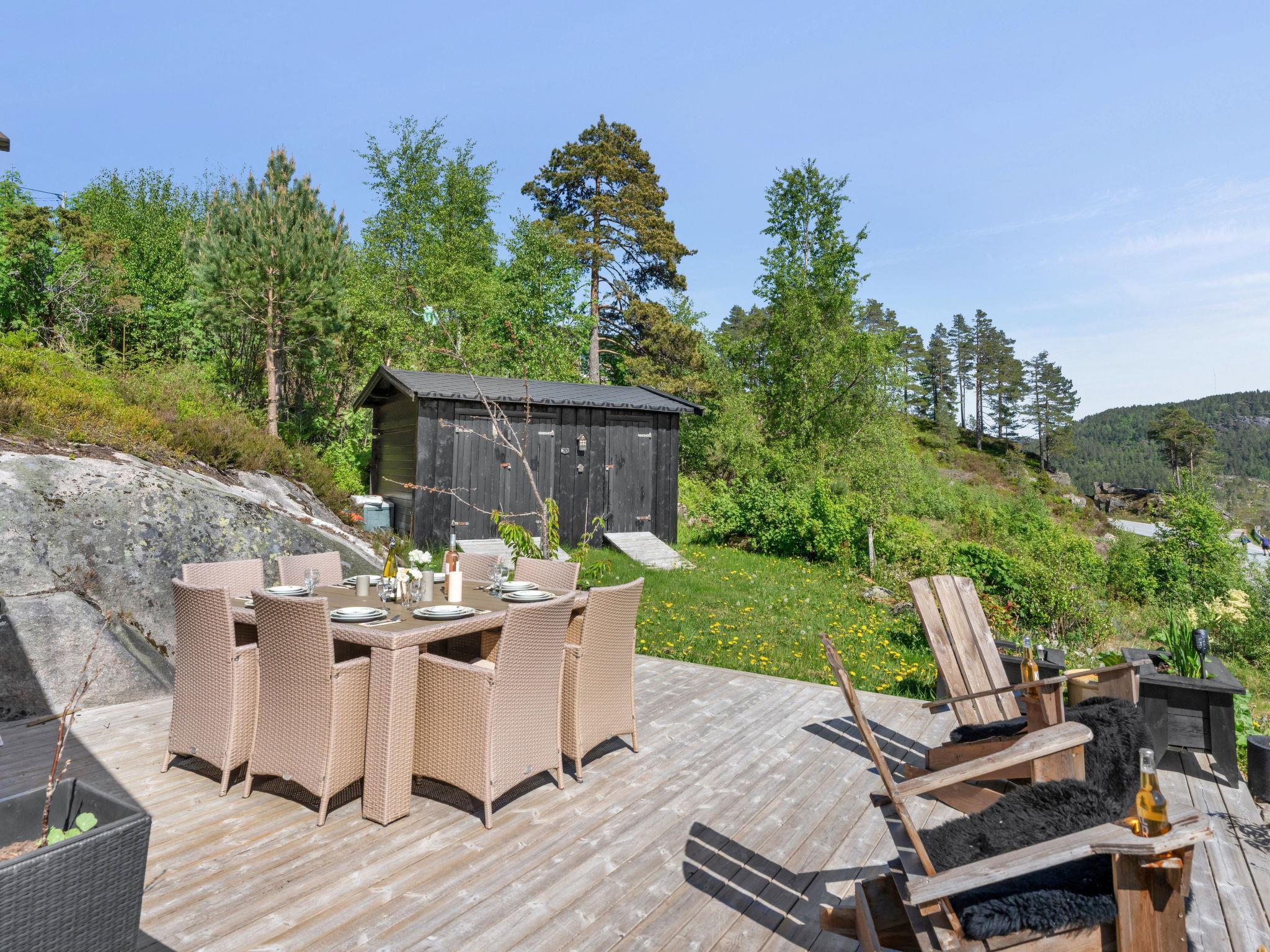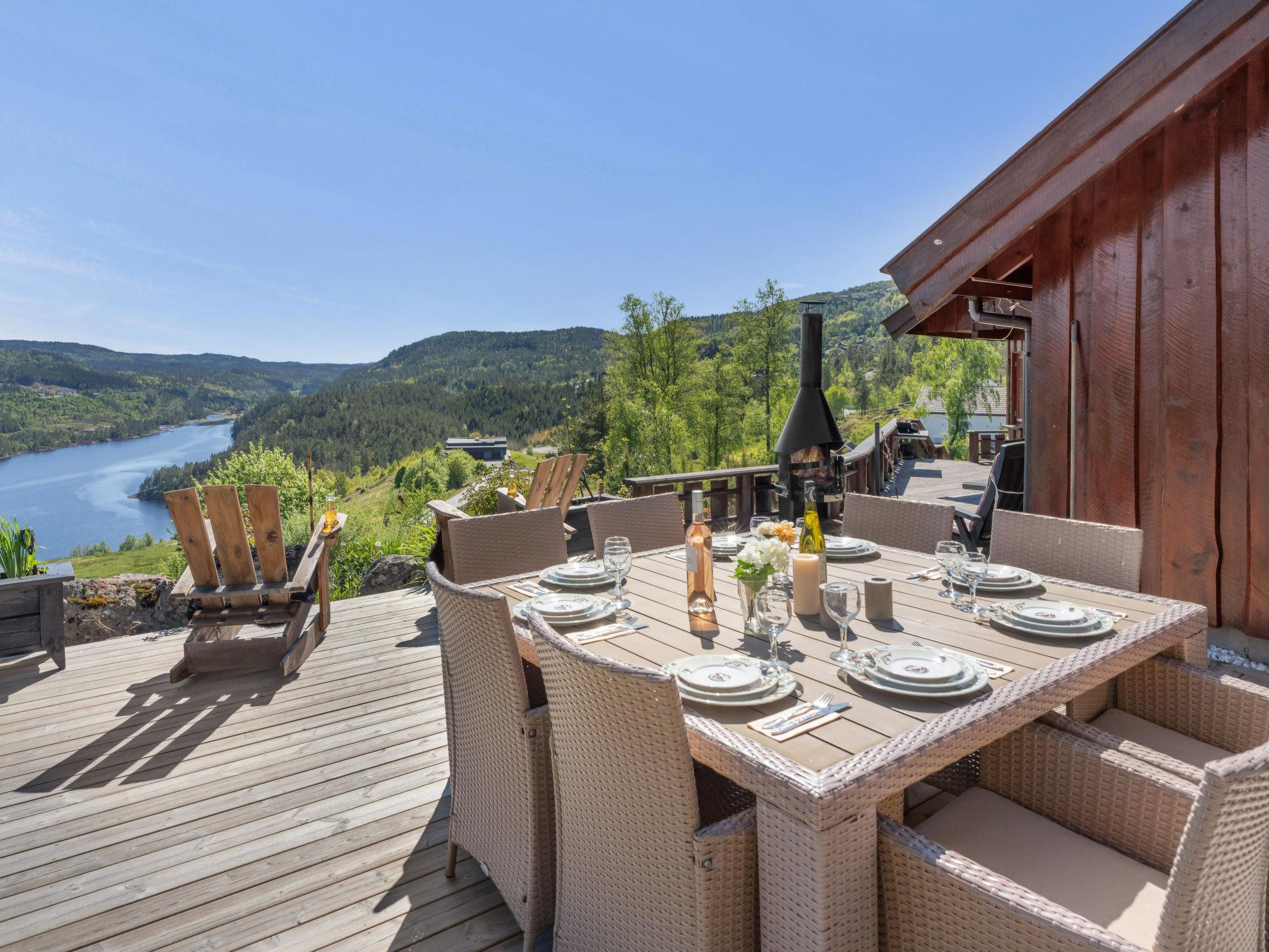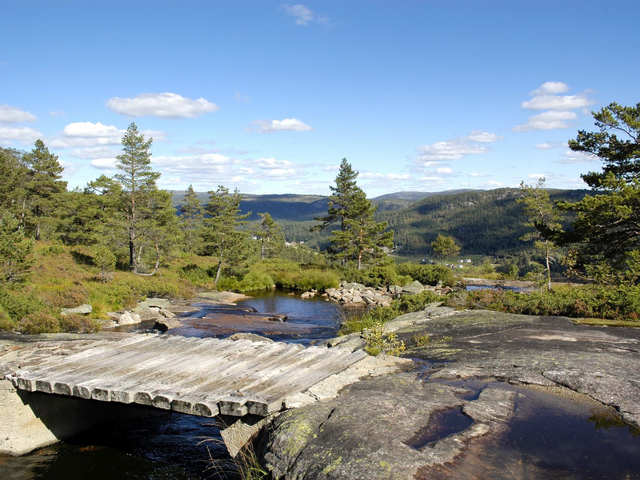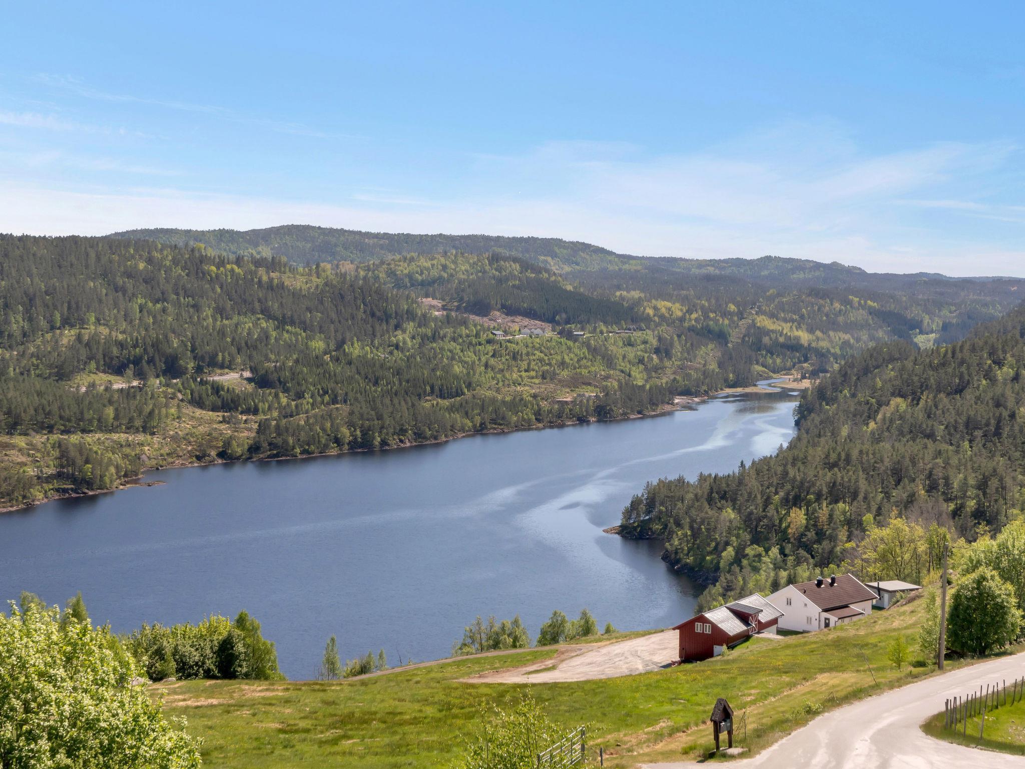 Feriensiedlung "Trondbu", 365 m.ü.M.. 11 km vom Zentrum von Kyrkjebygd, 78 km vom Zentrum von Mandal, 83 km vom Zentrum von Kristiansand, 250 m vom See. Zur Alleinbenutzung: naturbelassenes Grundstück 870 m2. Terrasse (48 m2), Gartenmöbel, Grill, Parkplatz auf dem Grundstück. Einkaufsgeschäft 11 km, Bushaltestelle "Sveindal" 17 km, Bahnstation "Audnedal" 42 km, Fähre "Kristiansand" 83 km.