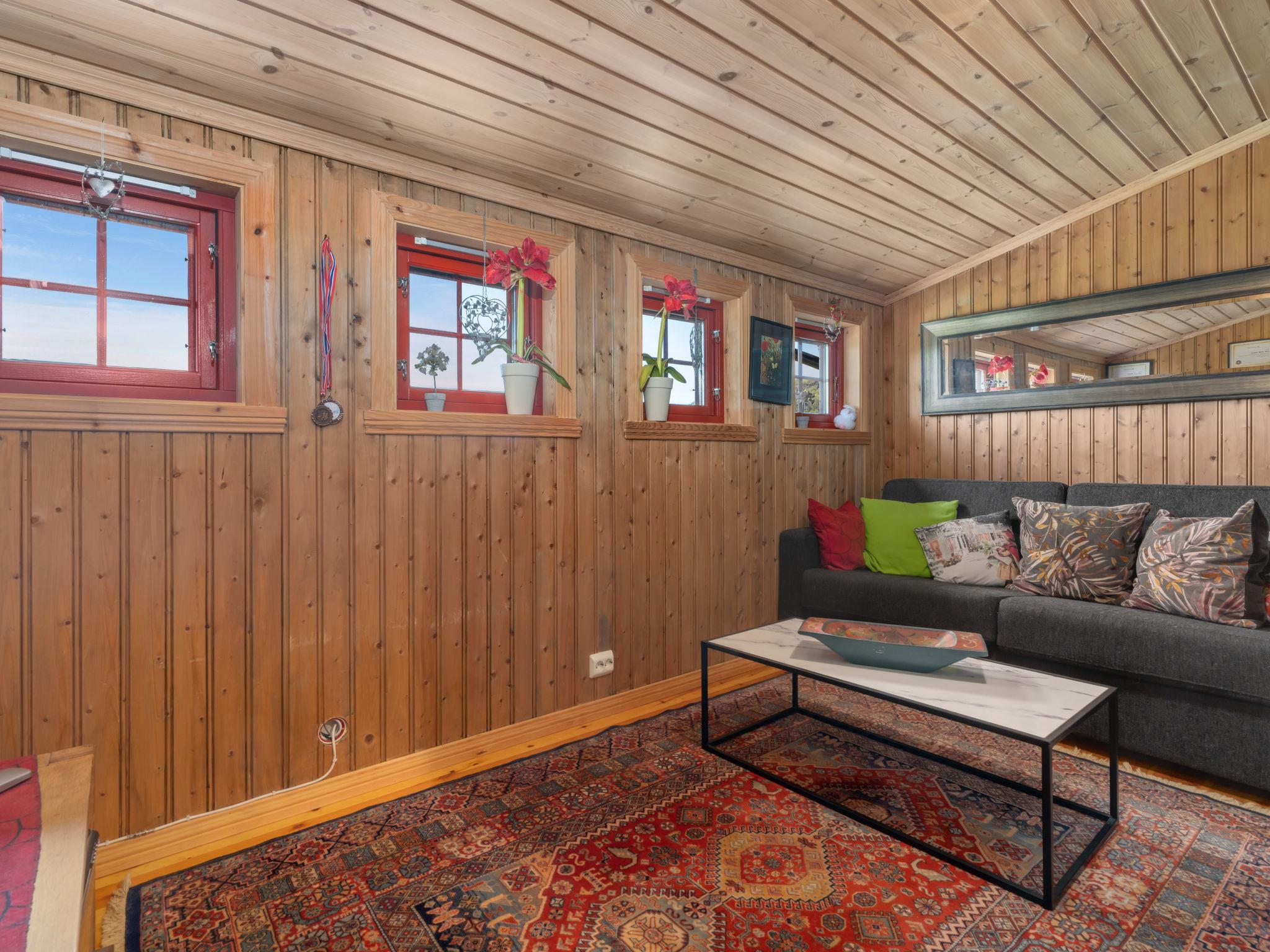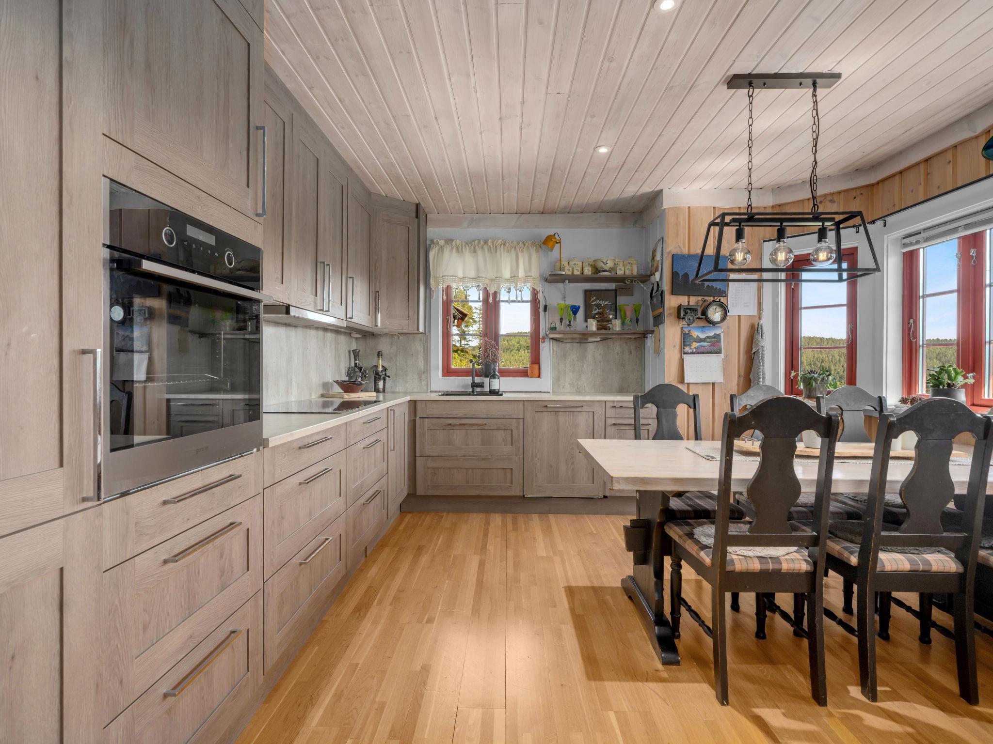 "Trondbu", 7-Zimmer-Haus 110 m2 auf 2 Stockwerken. Gemütlich und mit viel Holz eingerichtet: Wohnzimmer mit Schwedenofen, Sat-TV und DVD. Ausgang zur Terrasse. Wohnzimmer mit Wintergarten mit Sat-TV und DVD. Offene Küche (Backofen, Geschirrspüler, 4 Glaskeramikplatten, Mikrowelle, Tiefkühler, elektrische Kaffeemaschine) mit Esstisch. Dusche/WC. E-Heizung. Obergeschoss: abgeschrägtes Wohnzimmer, Deckenhöhe 100 - 200 cm mit Sat-TV und DVD. 1 abgeschrägtes Zimmer, Deckenhöhe 100 - 200 cm mit 1 Doppelbett (150 cm, Länge 200 cm). 1 abgeschrägtes Zimmer, Deckenhöhe 100 - 200 cm mit 2 Betten (80 cm, Länge 200 cm). 1 abgeschrägtes Zimmer, Deckenhöhe 100 - 200 cm mit 1 Bett (120 cm, Länge 200 cm), 1 Schlafmöglichkeit (75 cm, Länge 200 cm). 1 abgeschrägtes Zimmer, Deckenhöhe 100 - 200 cm mit 1 Bett (120 cm, Länge 200 cm). Sep. WC. E-Heizung, Fussbodenheizung. Parkettboden. Sicht auf den See. Zur Verfügung: Waschmaschine, Kinderhochstuhl, Babybett. Internet (WLAN). Bitte beachten: Nichtraucher-Haus. Rauchmelder, Feuerlöscher. 924531169