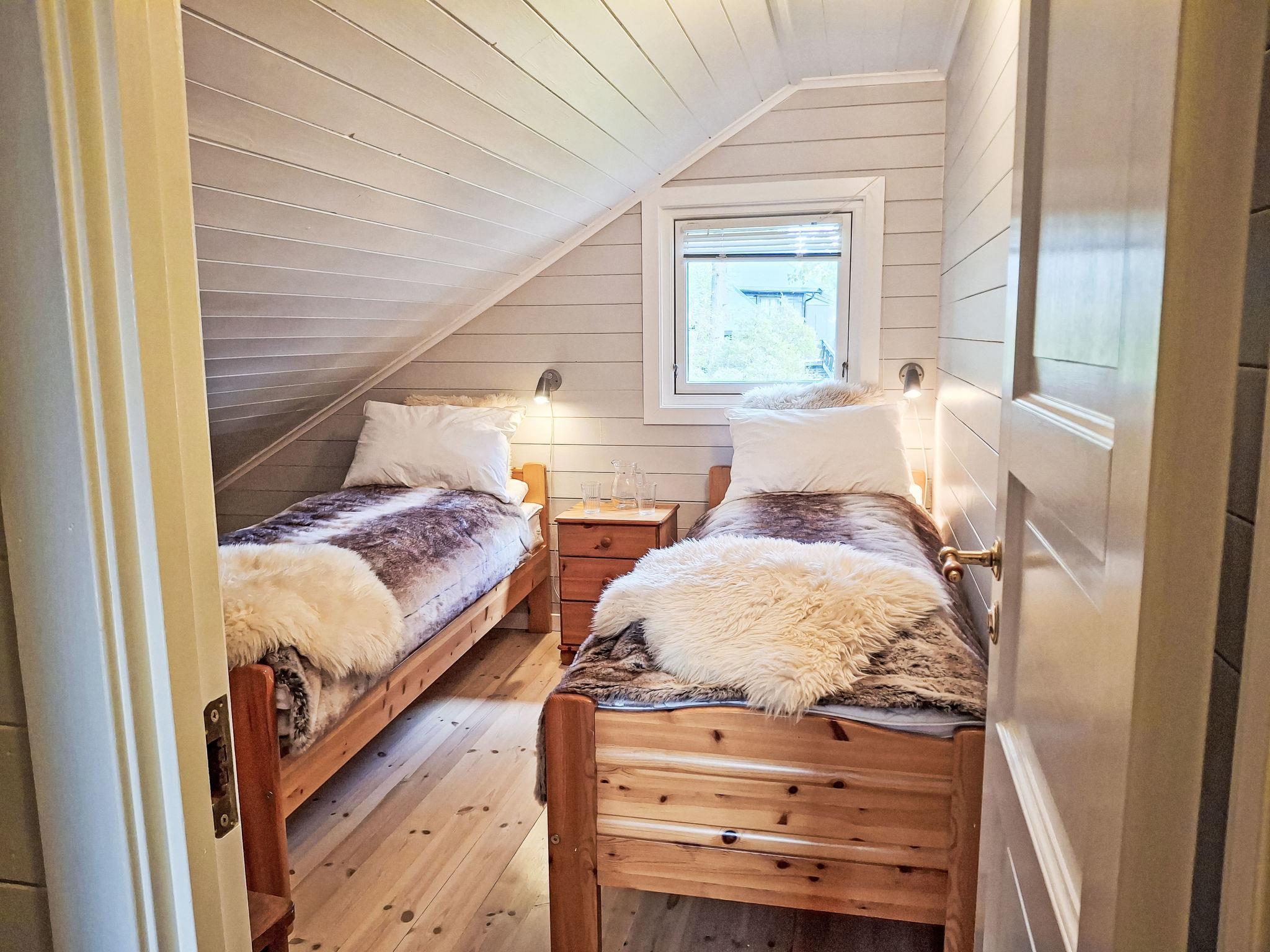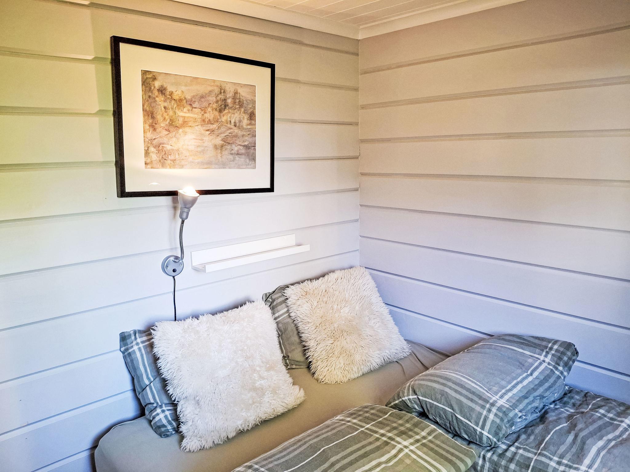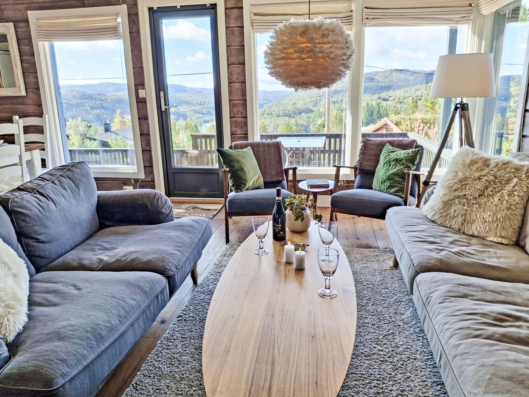 "Kosestua", 5-Zimmer-Haus 100 m2 auf 2 Stockwerken. Sehr gemütlich eingerichtet: Wohn-/Esszimmer mit Schwedenofen, Esstisch und TV. Ausgang zur Terrasse. 1 Zimmer mit 1 Doppelbett (150 cm, Länge 200 cm). 1 Zimmer mit 1 Doppelbett (140 cm, Länge 200 cm). Offene Küche (Backofen, Geschirrspüler, 4 Glaskeramikplatten, Toaster, Wasserkocher, Tiefkühler, elektrische Kaffeemaschine). Dusche/WC. E-Heizung. Obergeschoss: (steile Treppe) Wohnzimmer mit TV (Flachbildschirm). 1 Zimmer mit 2 Betten (75 cm, Länge 200 cm). Sep. WC. Holzdielenboden, Natursteinboden. Terrasse 26 m2, kleine Terrasse 8 m2. Terrassenmöbel, Gartengrill (mobil). Schöne Panoramasicht auf den See, die Berge und den Wald. Zur Verfügung: Waschmaschine. Internet (WLAN, gratis). Bitte beachten: Nichtraucher-Haus.