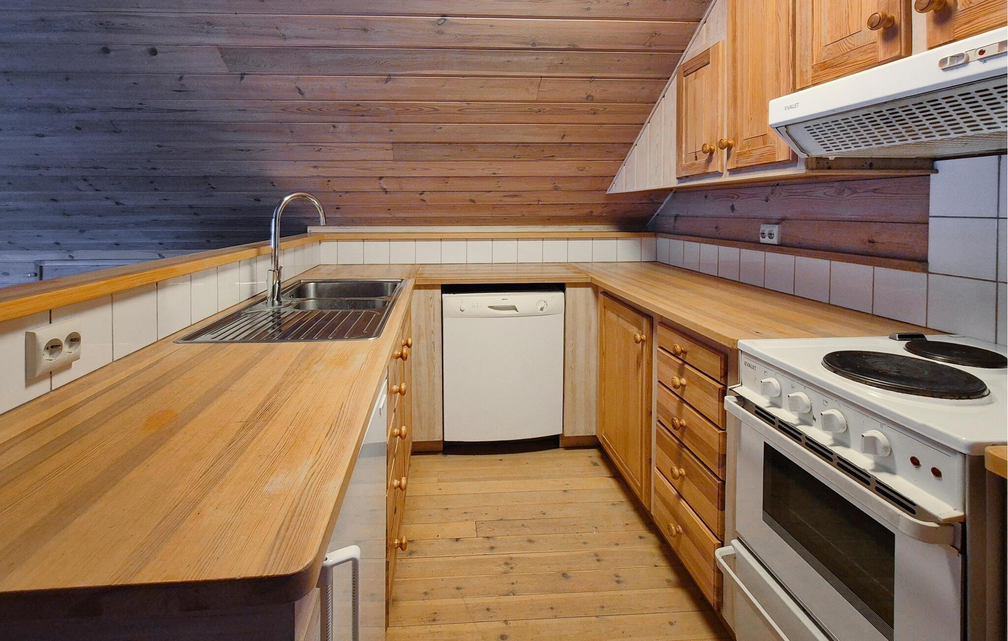 Verbringen Sie Ihren Urlaub in diesem kompakten Ferienhaus mit Bootsgarage, Steg und einer traumhaften Aussicht auf die umliegenden Berge. Freuen Sie sich auf eine behagliche Atmosphäre im Innenbereich mit viel Holz und nordischem Charme. Der offene Wohn- und Essbereich unter dem Dach ist schlicht, gemütlich und funktional eingerichtet. Kochen Sie in der kleinen Küche im Holzstil oder entspannen Sie sich auf dem Sofa nach einem aktiven Tag. Der Esstisch bietet Platz für gemeinsame Mahlzeiten mit Aussicht auf den Fjord.