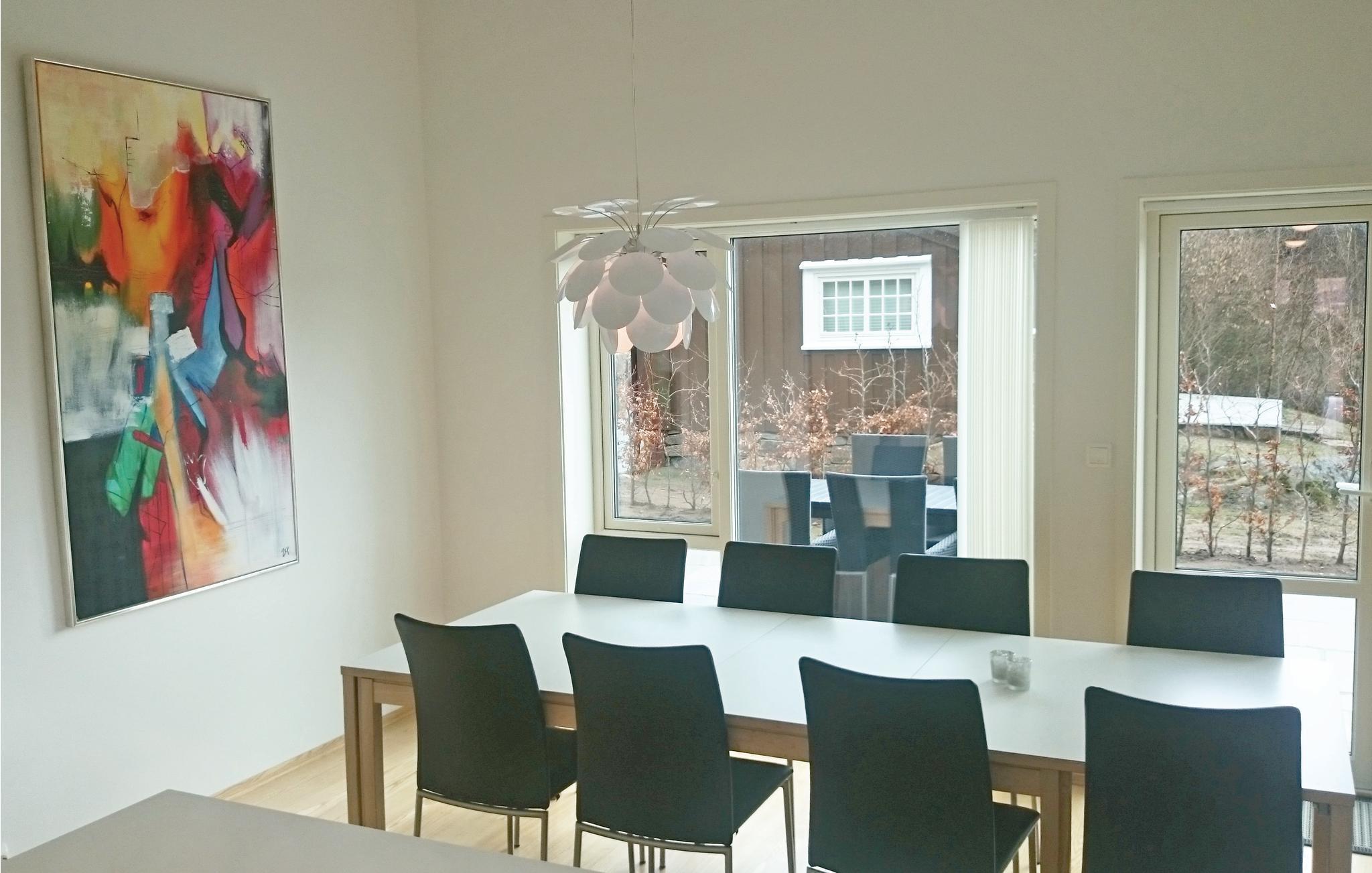 Große Fenster sorgen für eine schöne Aussicht und gute Lichtverhältnisse. Das Ferienhaus hat einen eigenen Strand und eine schöne Terrasse mit Gartenmöbeln und Grill. Hier ist es perfekt, um lange und schöne Tage mit Familie und Freunden zu verbringen.