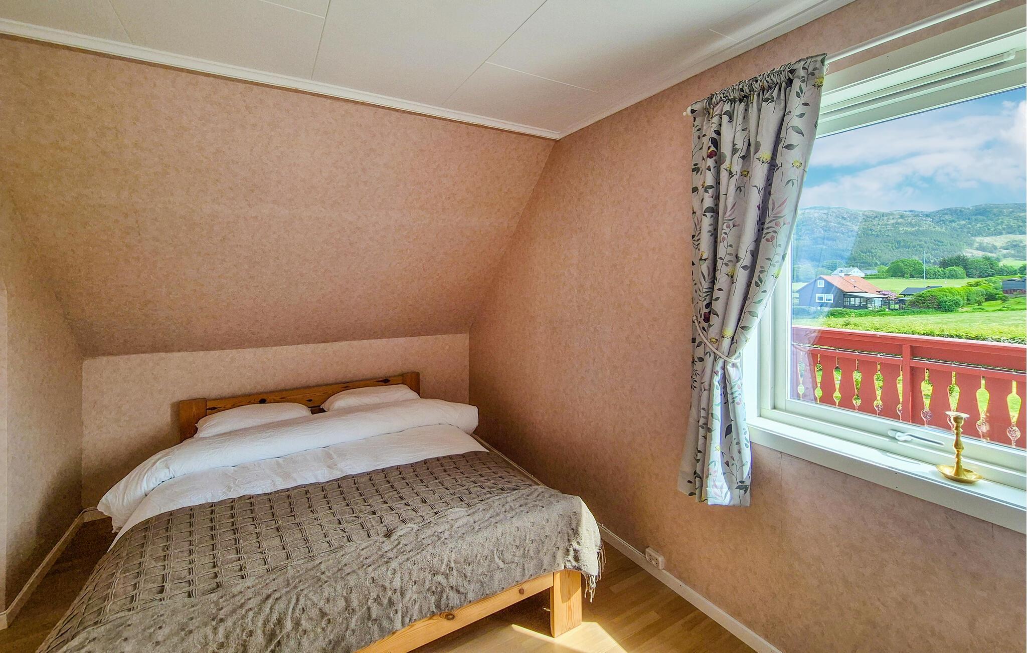 Nutzen Sie die Nähe zum Fjord für erfrischende Bäder und Angelvergnügen. Rund um das Haus erwarten Sie eine beeindruckende Naturkulisse und vielfältige Möglichkeiten zur aktiven Erholung. Unternehmen Sie Wanderungen durch die sanft hügelige Küstenlandschaft und entdecken Sie atemberaubende Ausblicke über Fjorde und Inseln. Besuchen Sie das charmante Ortszentrum von Fitjar mit kleinen Geschäften, Cafés und einer Kirche mit langer Geschichte. In der Umgebung finden Sie außerdem historische Stätten und Kulturdenkmäler, die Sie auf eigene Faust oder bei geführten Touren entdecken können.