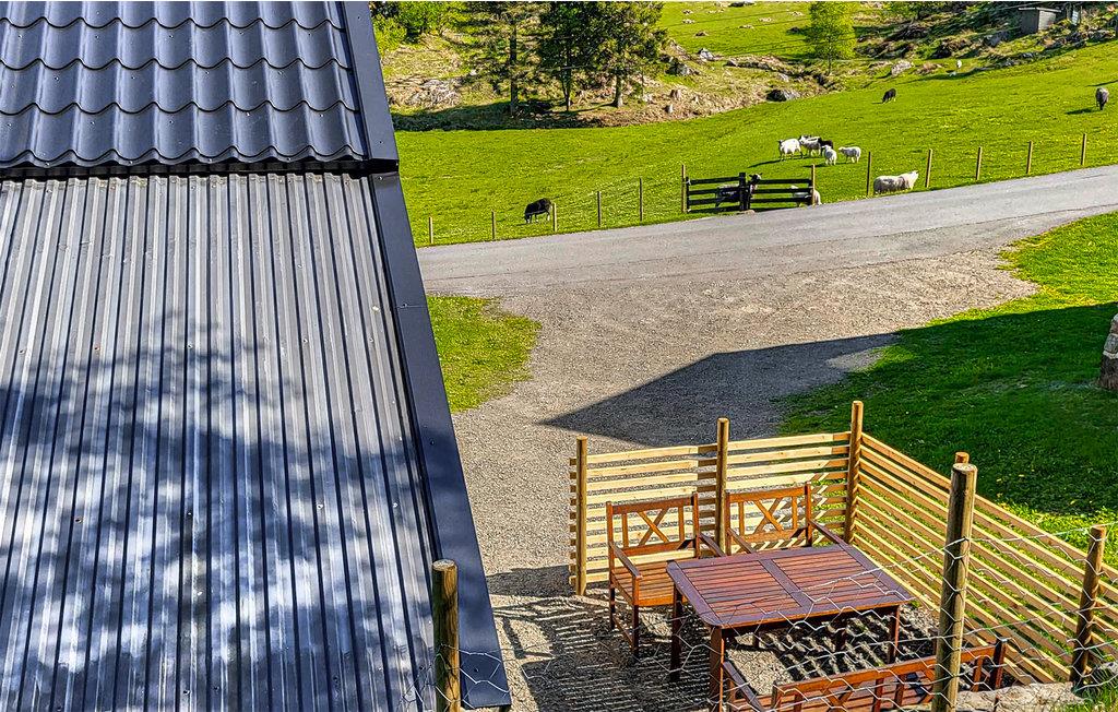 Verbringen Sie Ihre Zeit im Freien und atmen Sie die klare Landluft ein. Setzen Sie sich auf die Holzterrasse und genießen Sie sonnige Stunden mit Blick auf Wiesen und Hügel. Nutzen Sie die Gartenmöbel für gemeinsame Mahlzeiten oder einen Kaffee am Morgen. Beobachten Sie die friedlich grasenden Schafe direkt neben dem Haus und lassen Sie Kinder die Nähe zur Natur erleben.