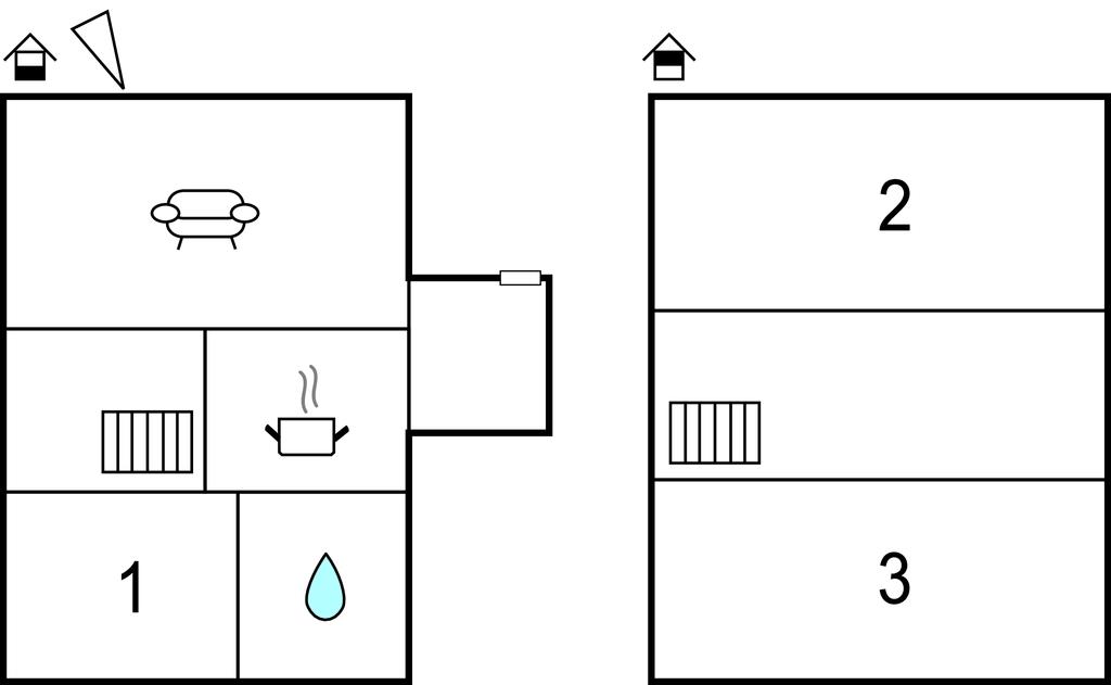 Hinweis: Die Schlafzimmer im Obergeschoss sind aufgrund einer steilen Treppe nicht für kleine Kinder, ältere Menschen oder Menschen mit Gehbehinderungen geeignet.