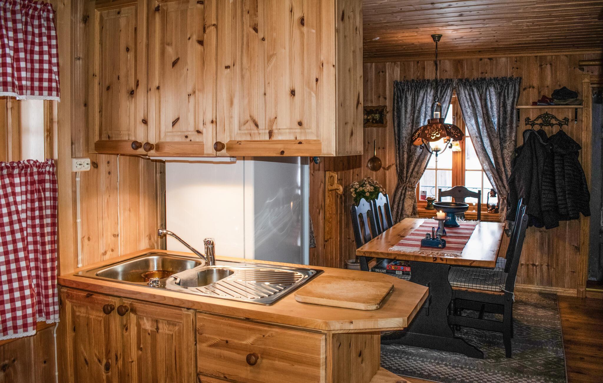 Herzlich willkommen zu einem Urlaub in diesem gemütlichen Ferienhaus mit viel Seele und einer liebevoll gestalteten Einrichtung. Umgeben von der ländlichen Kulisse der norwegischen Natur, ist dieses urgemütliche Ferienhaus mit seiner Holzverkleidung der perfekte Ausgangspunkt für einen schönen Urlaub. Genießen Sie den authentischen Landhausstil und entspannen Sie sich in der gemütlichen Wohnstube mit einem spannenden Buch oder schwingen Sie in der offenen Küche den Kochlöffel. Hier haben Sie alle Zeit der Welt für entspannte Stunden mit der ganzen Familie. Lassen Sie die Abende am knisternden Feuer des klassischen Kaminofens ausklingen, der nicht nur Wärme, sondern auch eine angenehme Atmosphäre schafft.