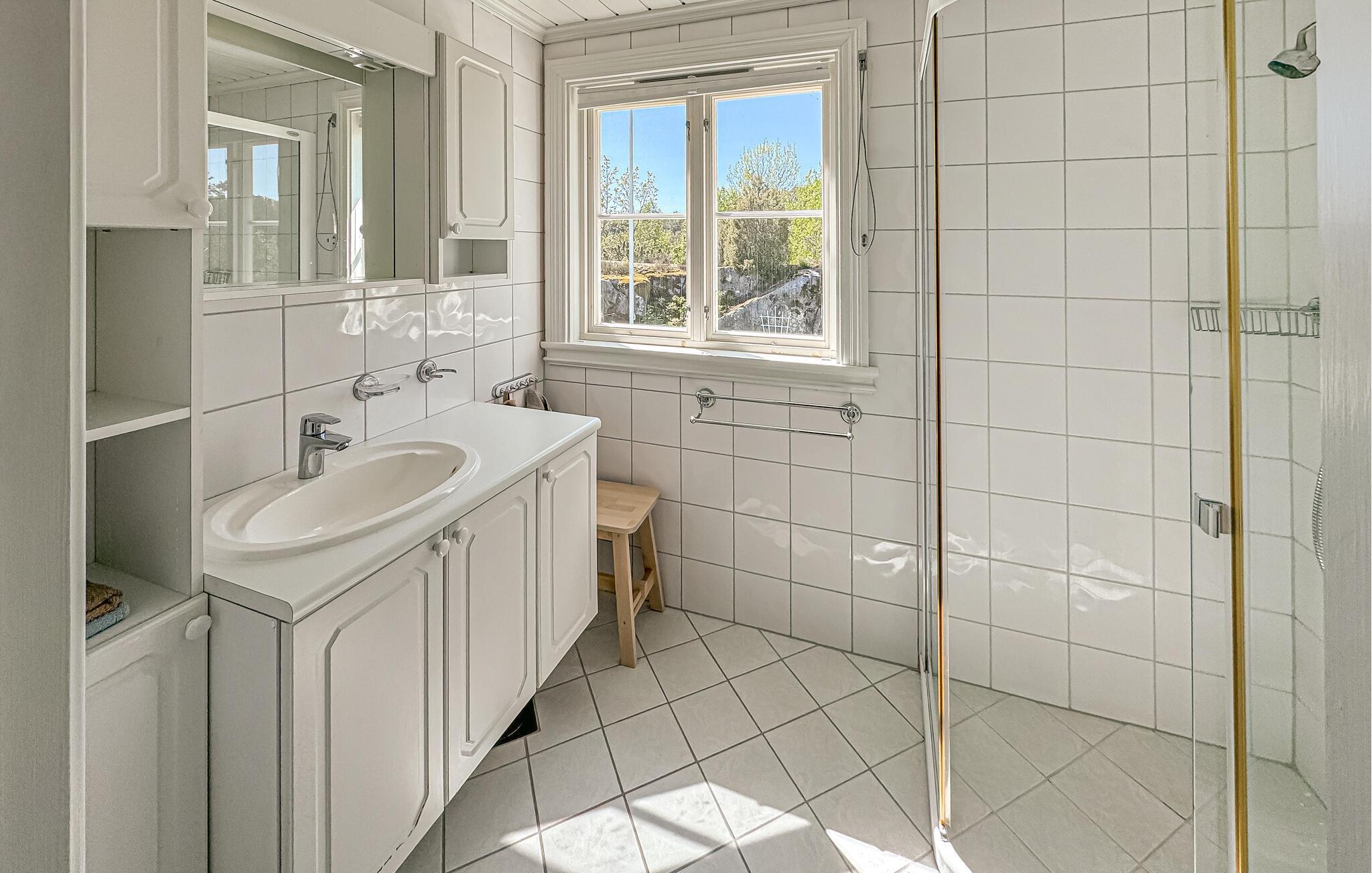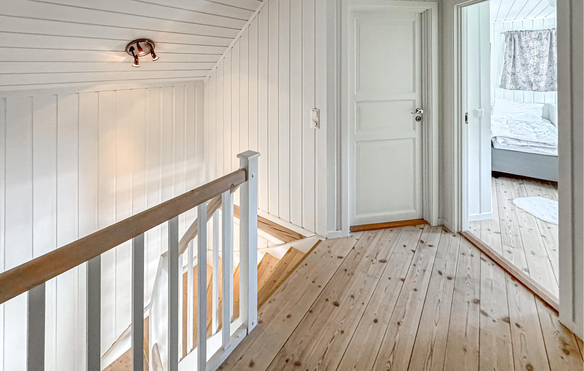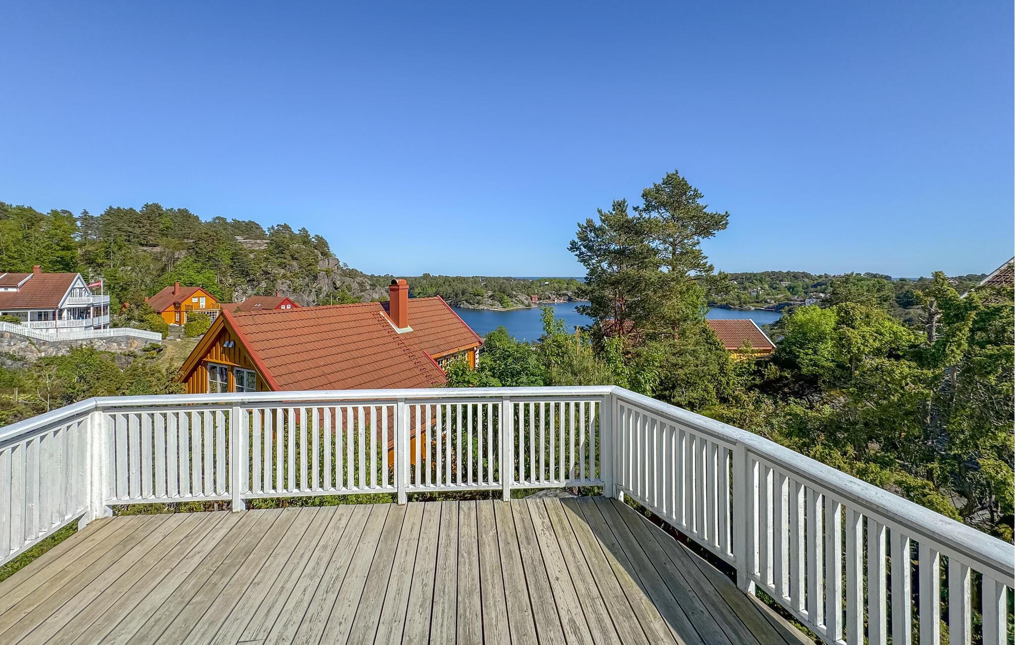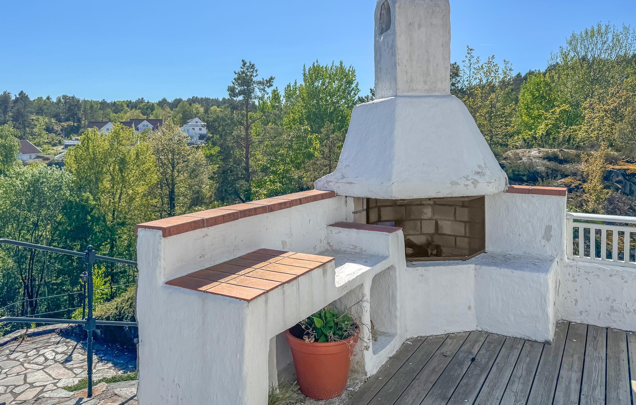 Verbringen Sie erholsame Urlaubstage in diesem hellen und geschmackvoll eingerichteten Ferienhaus in Hanglage mit weitem Blick auf das Wasser. Die erhöhte Lage bietet Ihnen nicht nur Ruhe, sondern auch eindrucksvolle Ausblicke auf die typisch norwegische Küstenlandschaft. Genießen Sie im großzügigen Wohnbereich mit Ecksofa und Kaminofen entspannte Stunden in stilvoller Umgebung mit viel Tageslicht. Kochen Sie gemeinsam in der eleganten Küche mit schönem Ausblick oder nehmen Sie Ihre Mahlzeiten im einladenden Esszimmer mit bequemen Polsterstühlen und Kronleuchter ein. Auch kleine Rückzugsorte mit Lesesesseln und bodentiefen Fenstern laden zum Verweilen ein.