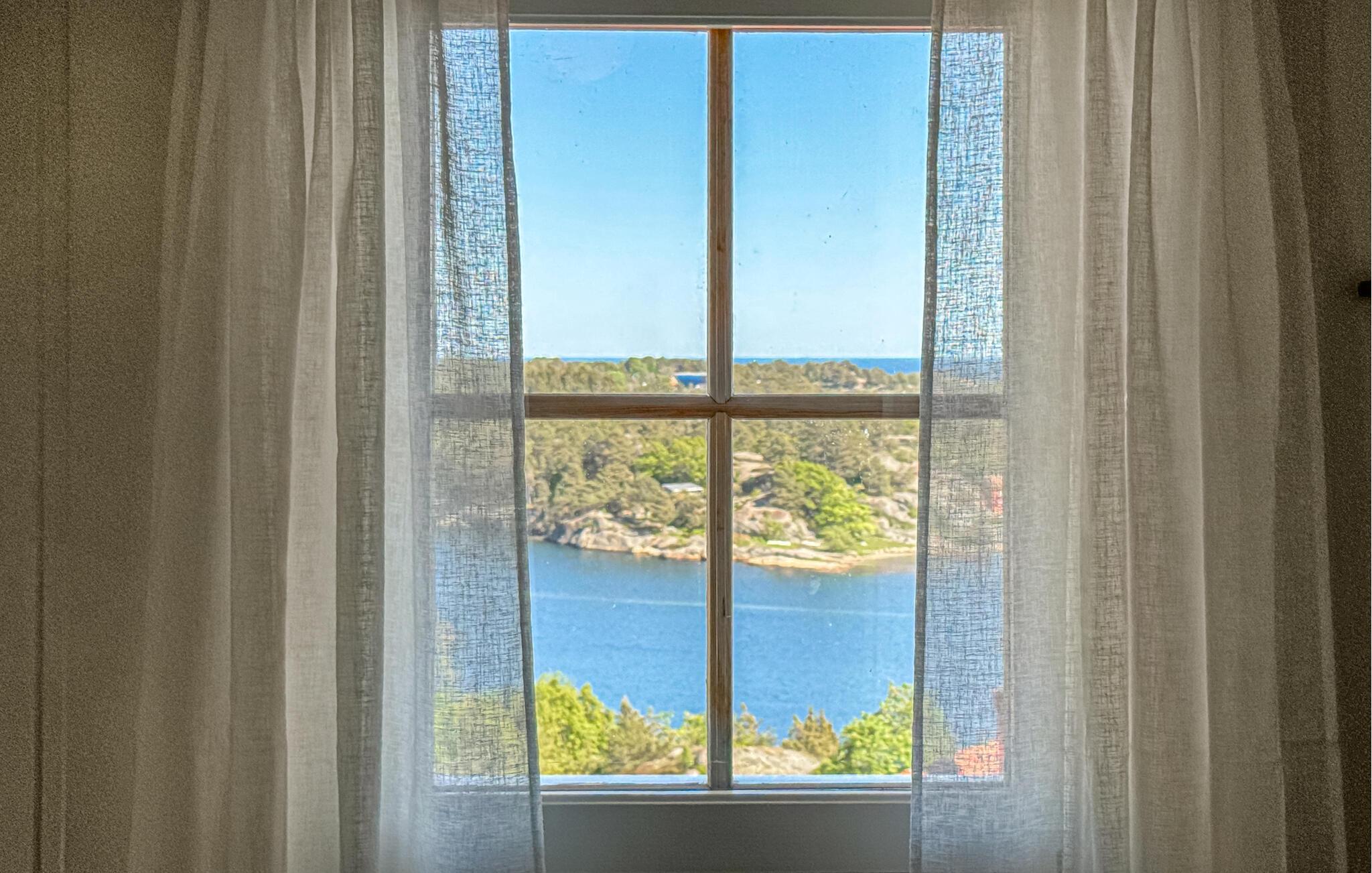 Genießen Sie den weiten Blick über Küste und Fjordlandschaft in diesem stilvollen Haus in erhöhter Lage.