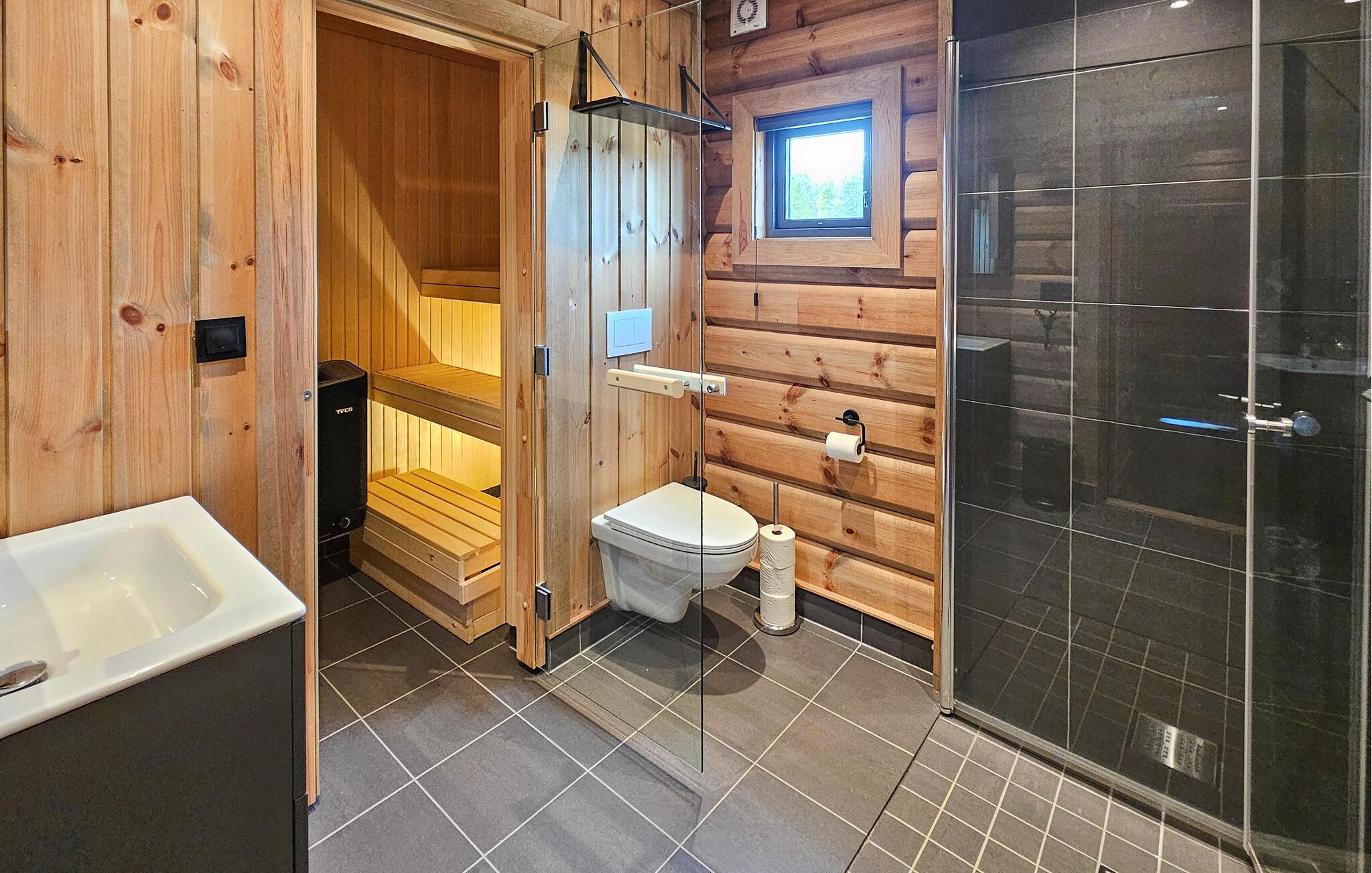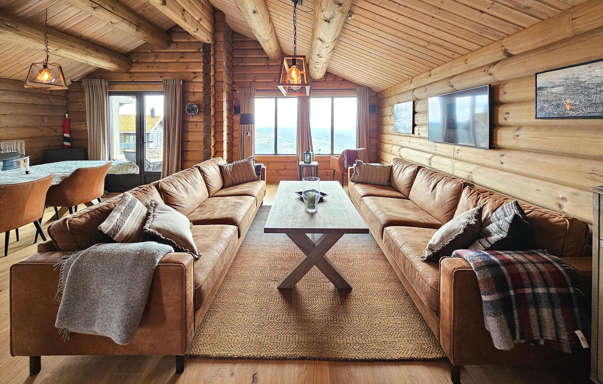 Dieses in den Bergen gelegene Ferienhaus heißt Sie mit einer einladenden Atmosphäre willkommen. Machen Sie es sich auf der großen Sofalandschaft mit einer Tasse Kaffee gemütlich, streamen Sie Ihre Lieblingsserie oder entspannen Sie sich nach einem Tag voller Aktivitäten in der Sauna. An kühleren Tagen können Sie sich zudem am knisternden Kaminofen wärmen.