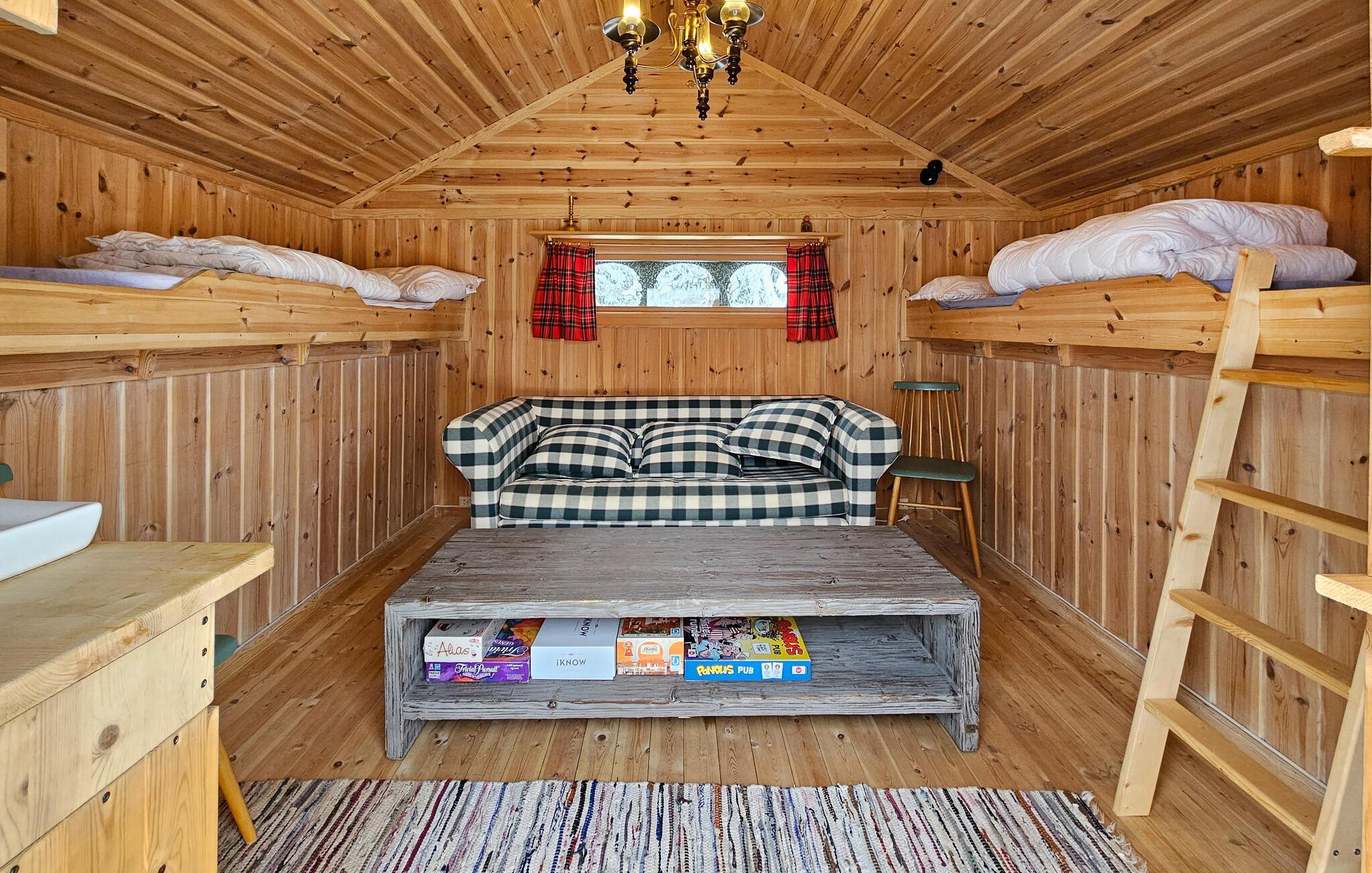 Gemütliches und charmantes Holzhaus mit Fasssauna in einer wunderschönen Landschaft mit vielen Aktivitätsmöglichkeiten.