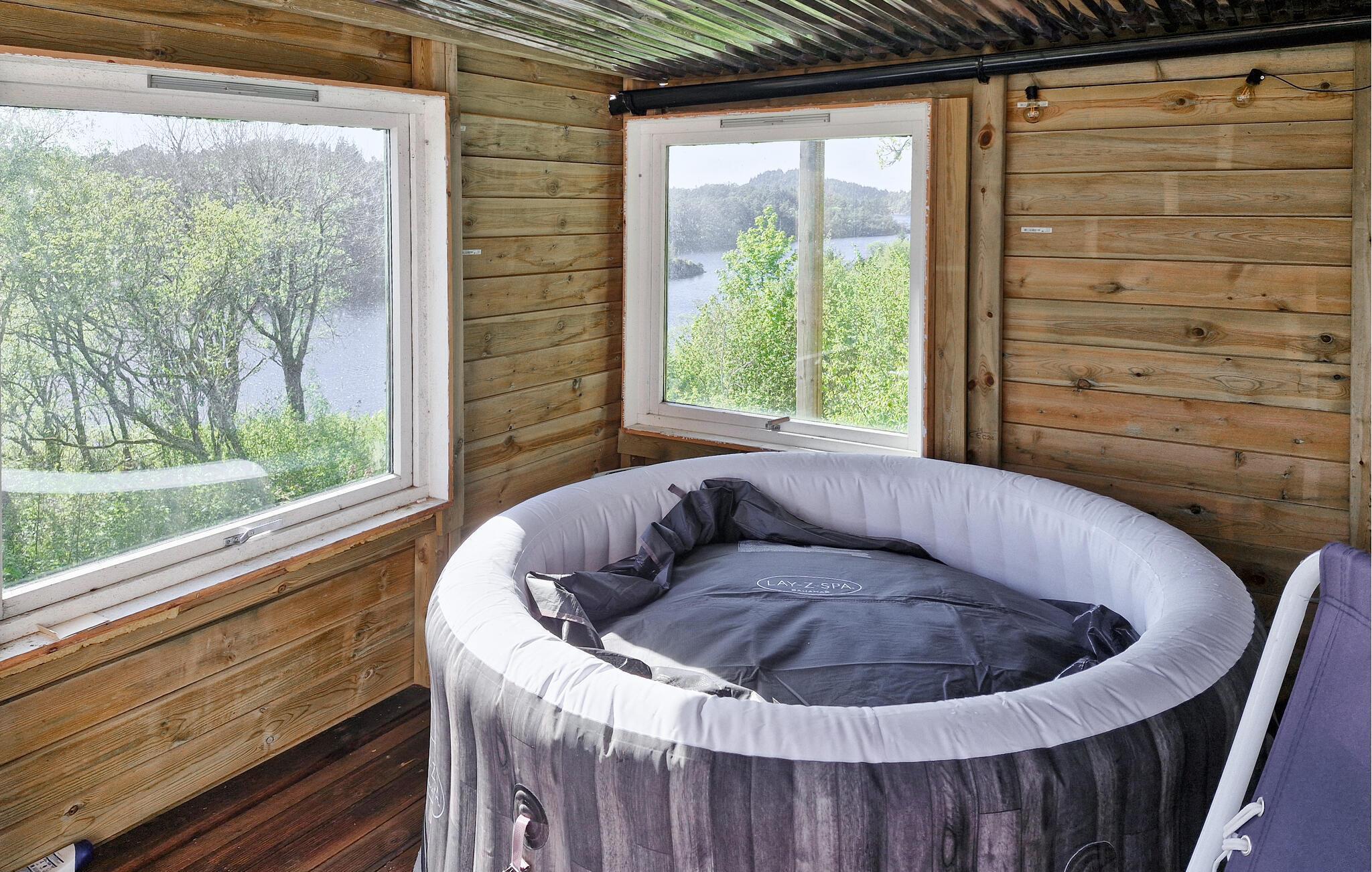 Dank der abgeschiedenen Lage des Hauses am See Kallandsvatnet können Sie hier die Ruhe und Schönheit der Natur in vollen Zügen genießen. Das Anwesen verfügt über mehrere Terrassen und Außenbereiche, die ideal sind, um die beeindruckende Aussicht auf das Wasser zu bewundern. Hier können Sie in aller Ruhe die Seele baumeln lassen oder bei einem guten Buch die friedliche Umgebung auf sich wirken lassen. Der helle und gemütliche Wohnbereich des Hauses lädt zum Verweilen ein. Machen Sie es sich auf dem Sofa bequem und genießen Sie den Blick durch die großen Fenster, die das Gefühl vermitteln, direkt in der Natur zu sein. Genießen Sie Ihre Mahlzeiten auf der Terrasse, begleitet vom Gesang der Vögel und dem sanften Plätschern des Wassers.