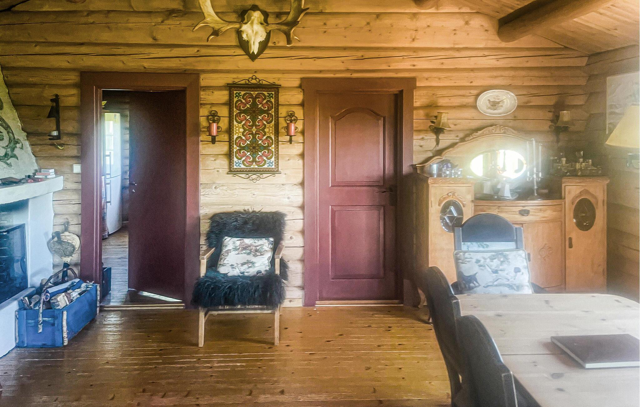 Drinnen erwartet Sie ein rustikaler Wohnbereich mit einem traditionellen Kamin, der an kühlen Abenden für wohlige Wärme sorgt. Entspannen Sie sich auf den gemütlichen Sofas und verbringen Sie gesellige Abende bei knisterndem Feuer. Bereiten Sie Ihre Mahlzeiten in der gemütlichen Küche zu. Nutzen Sie die private Sauna, um nach allen Regeln der Kunst zu entspannen. Lassen Sie sich von der wohltuenden Wärme umhüllen und genießen Sie die Ruhe. Anschließend können Sie draußen an der frischen Luft den Sonnenuntergang bewundern oder den Abend beim Grillen ausklingen lassen.