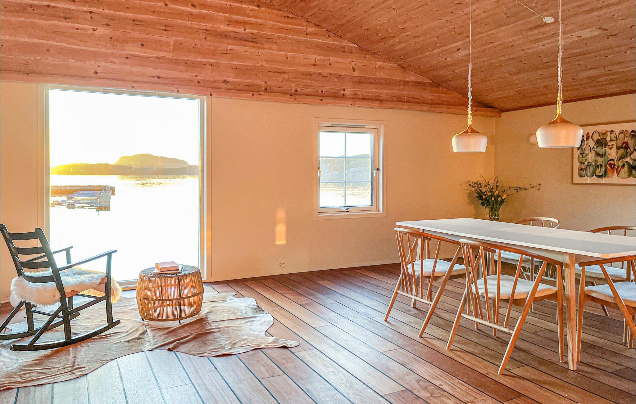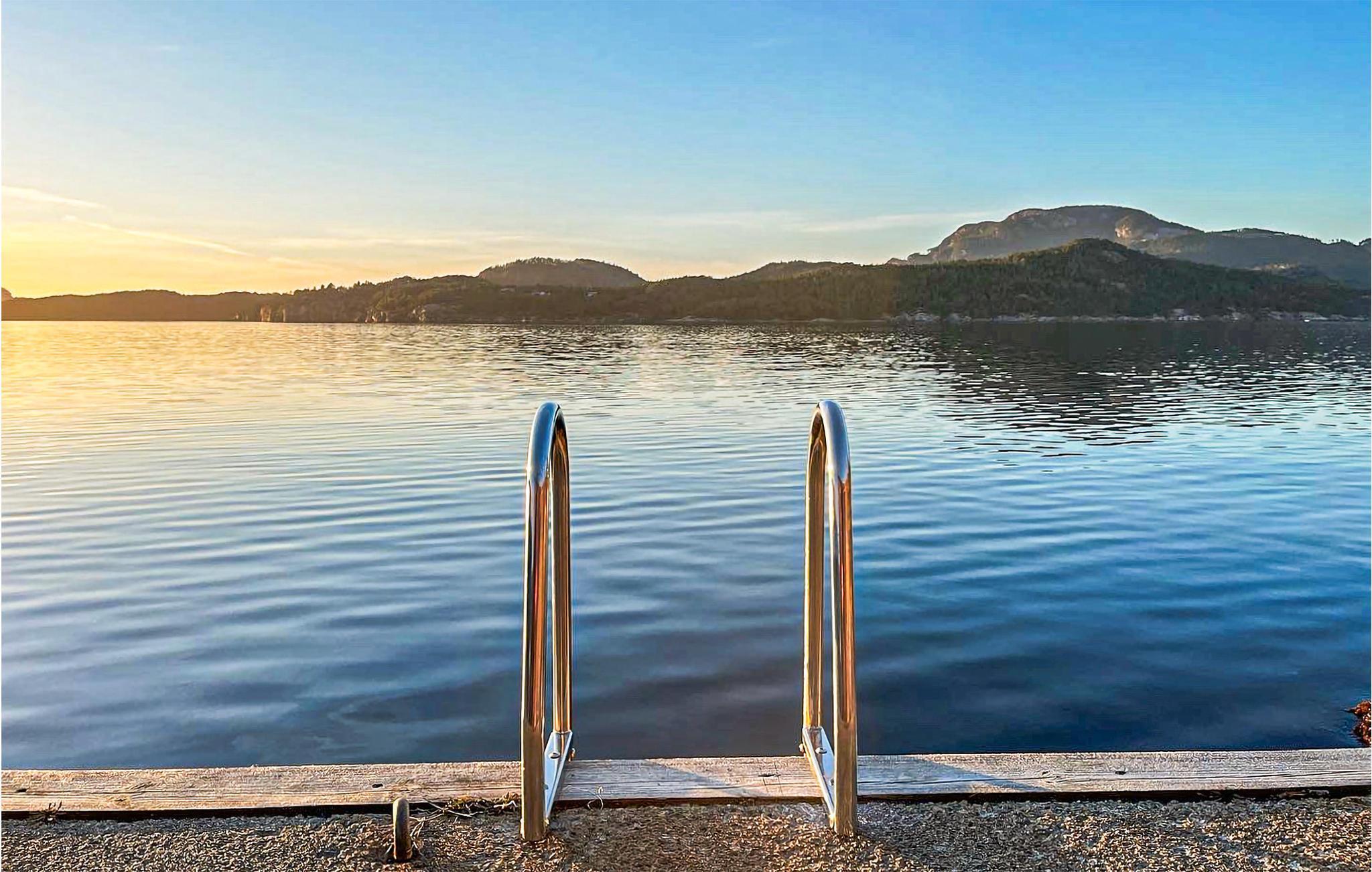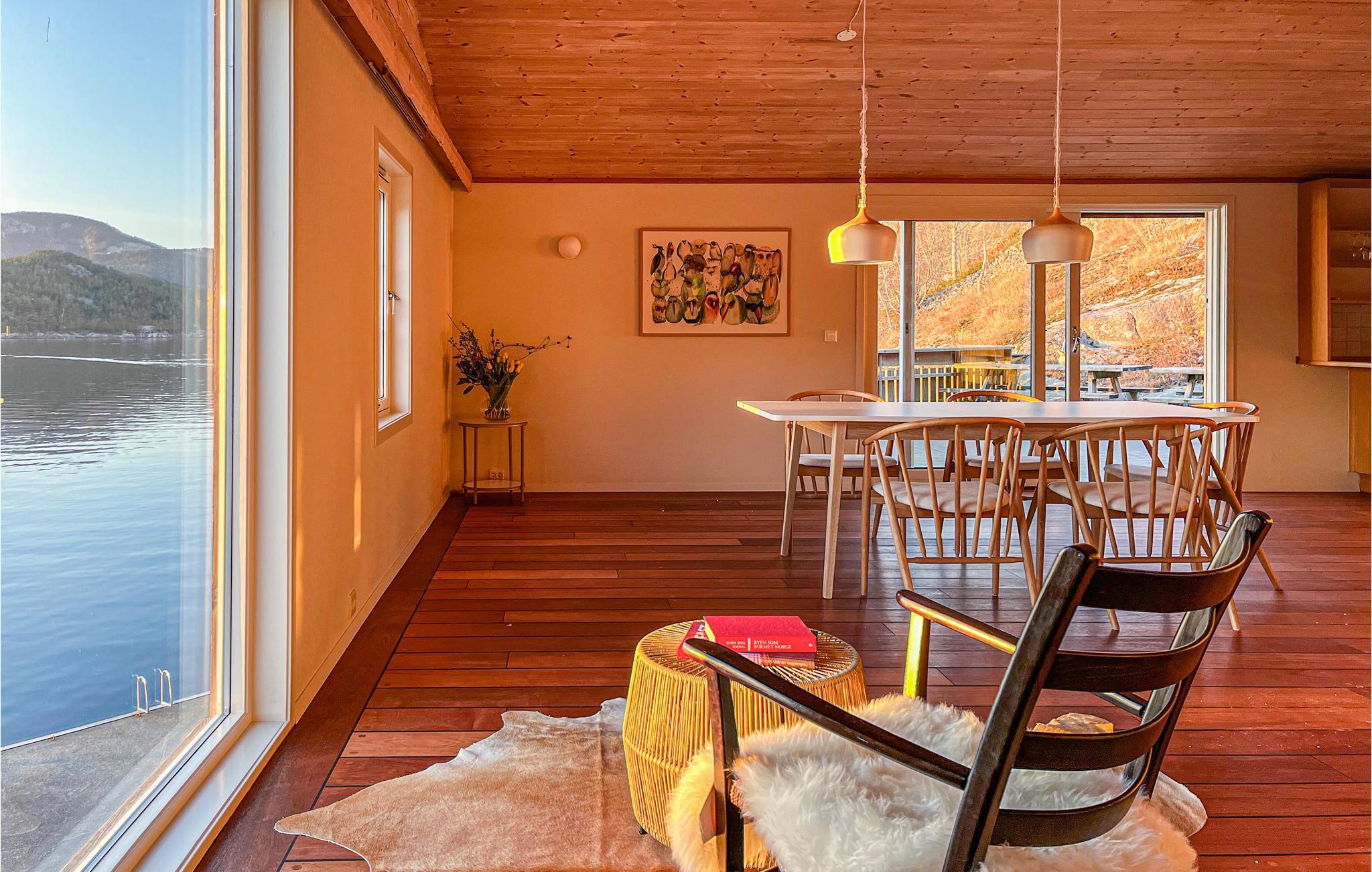 Erleben Sie mit Ihrer Familie oder Ihren Freunden einen traumhaften Urlaub in diesem schönen Ferienhaus direkt am Fjord. Sie finden hier einen privaten Steg und einen kleinen Strand direkt vor der Haustür vor, sodass Sie nach Belieben zu jeder Tageszeit das Wasser nutzen können. Gehen Sie Schwimmen, Angeln, Bootsfahren oder Genießen Sie einfach nur die fantastische Aussicht von der Terrasse oder sogar vom Wohnzimmer aus. Wenn Sie kein eigenes Boot haben, haben Sie die Möglichkeit sich im Fisterfjord eins zu leihen.
