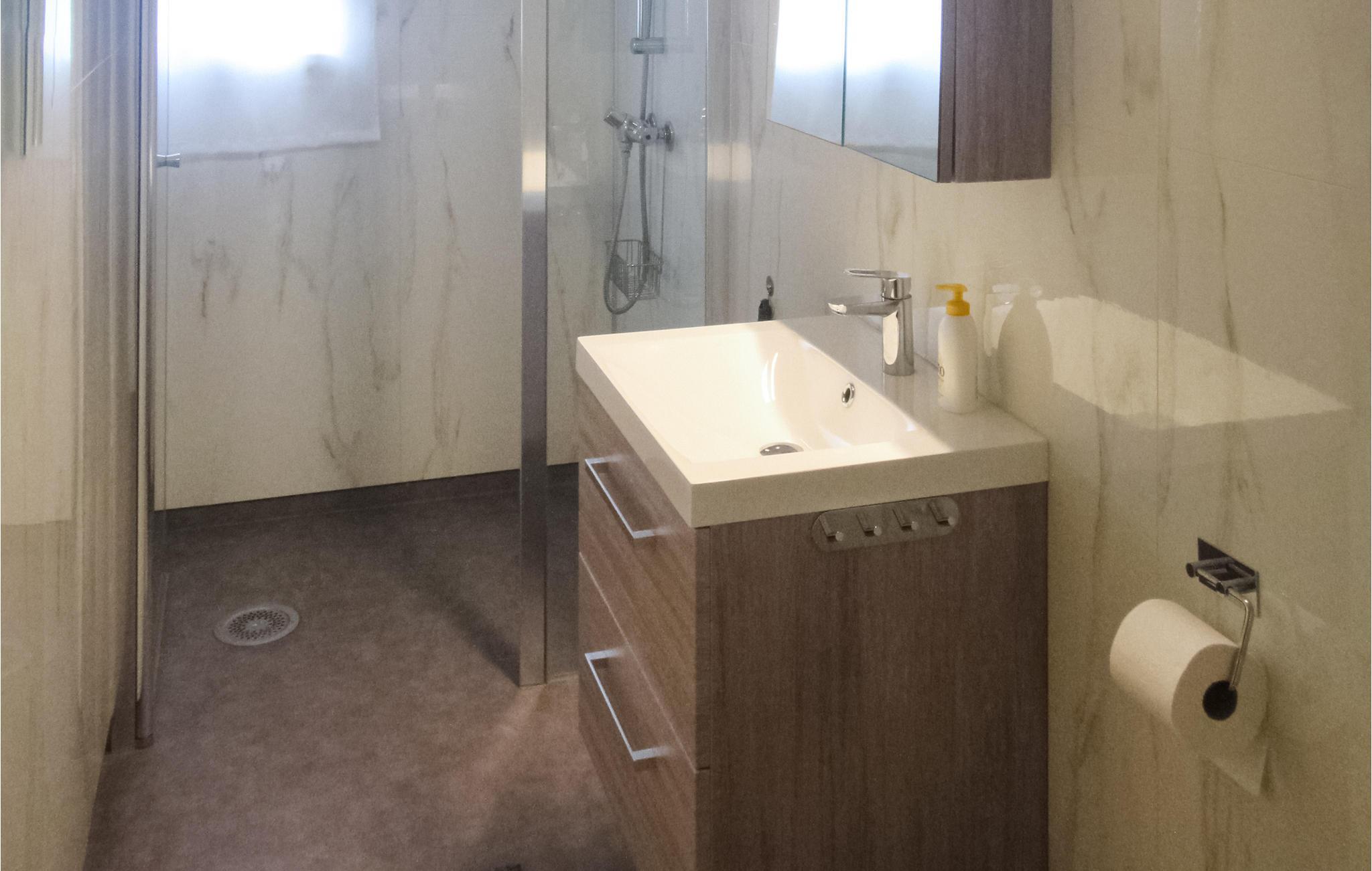 Bademöglichkeiten vom Steg beim Haus und am Badestrand ca.1,5 km entfernt. Die umliegende Landschaft bietet ein abwechslungsreiches Wander- und Radtourengebiet. Das Sommerskicenter Fonna ist in 40 Minuten mit dem Auto zu erreichen und bietet Freiluftaktivitäten für Groß und Klein. Erleben Sie tolle Naturphänomene wie den Gletscher Folgefonna, den spektakulären Wasserfall Låtefossen und den populären Felsen Trolltunga. Das Einbettzimmer ist Durchgang zum Schlafraum mit 3 Betten.