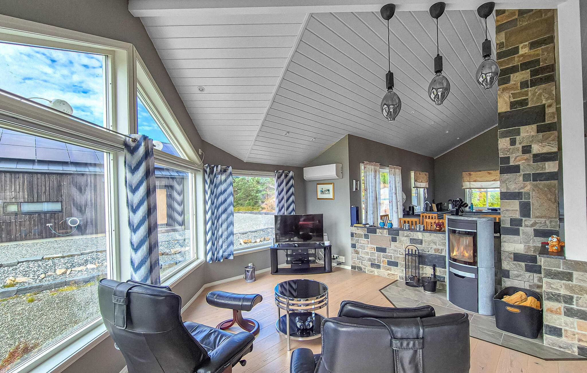 Dieses geräumige und komfortabel ausgestattete Ferienhaus bietet Ihnen viel Platz für eine erholsame Auszeit mit der Großfamilie oder einer Gruppe von Freunden. Große Fensterfronten geben den Blick auf die malerische Umgebung frei und sorgen für reichlich natürliches Tageslicht. Kochen Sie in geselliger Runde, planen Sie Ihre Unternehmungen bei fröhlichen Mahlzeiten und genießen Sie den Kamin. Veranstalten Sie Spieleabende oder streamen Sie einen spannenden Film.