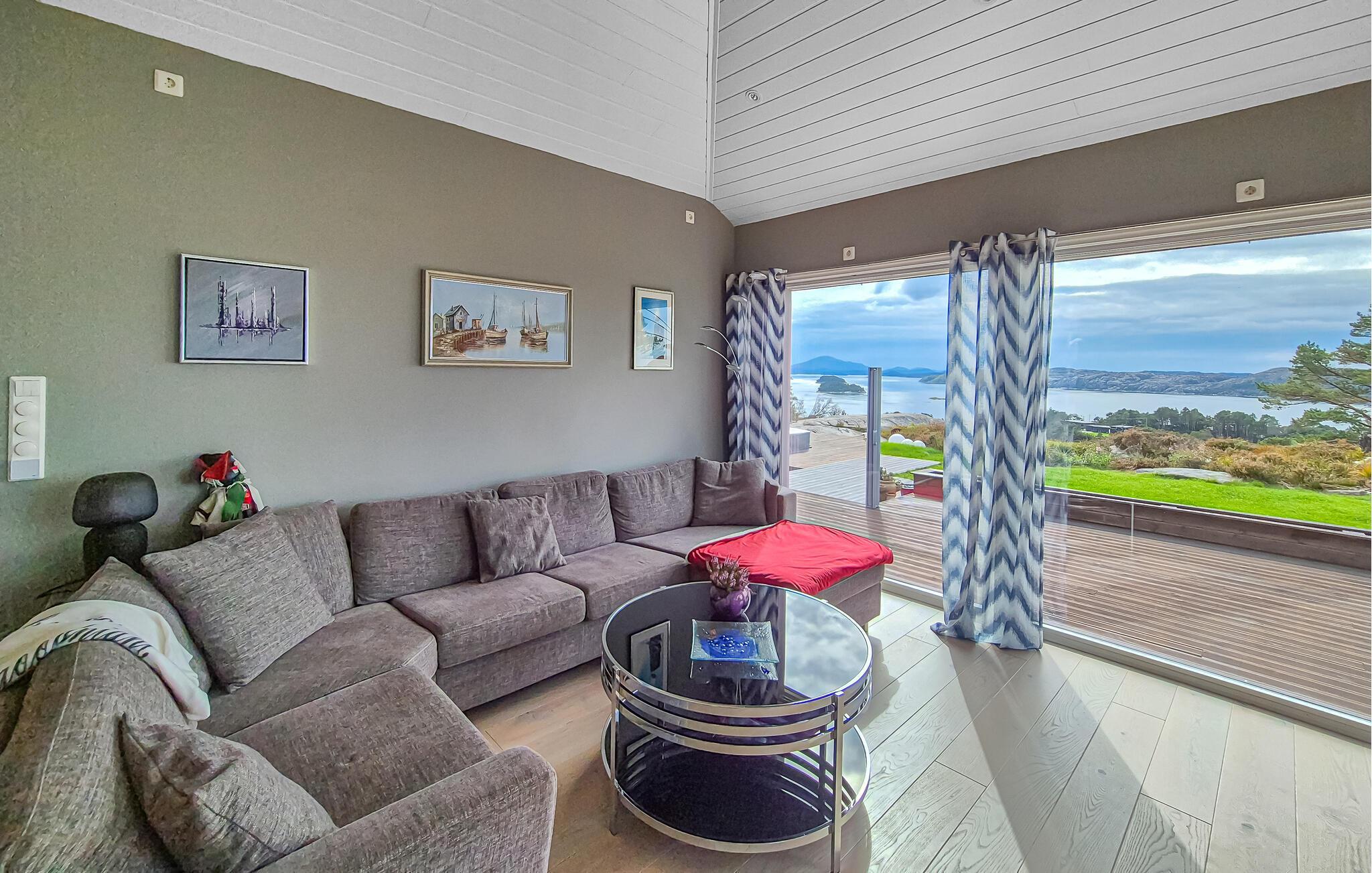 Gönnen Sie sich einen Traumurlaub in diesem Ferienhaus mit Whirlpool und bezauberndem Blick auf den Fjord.
