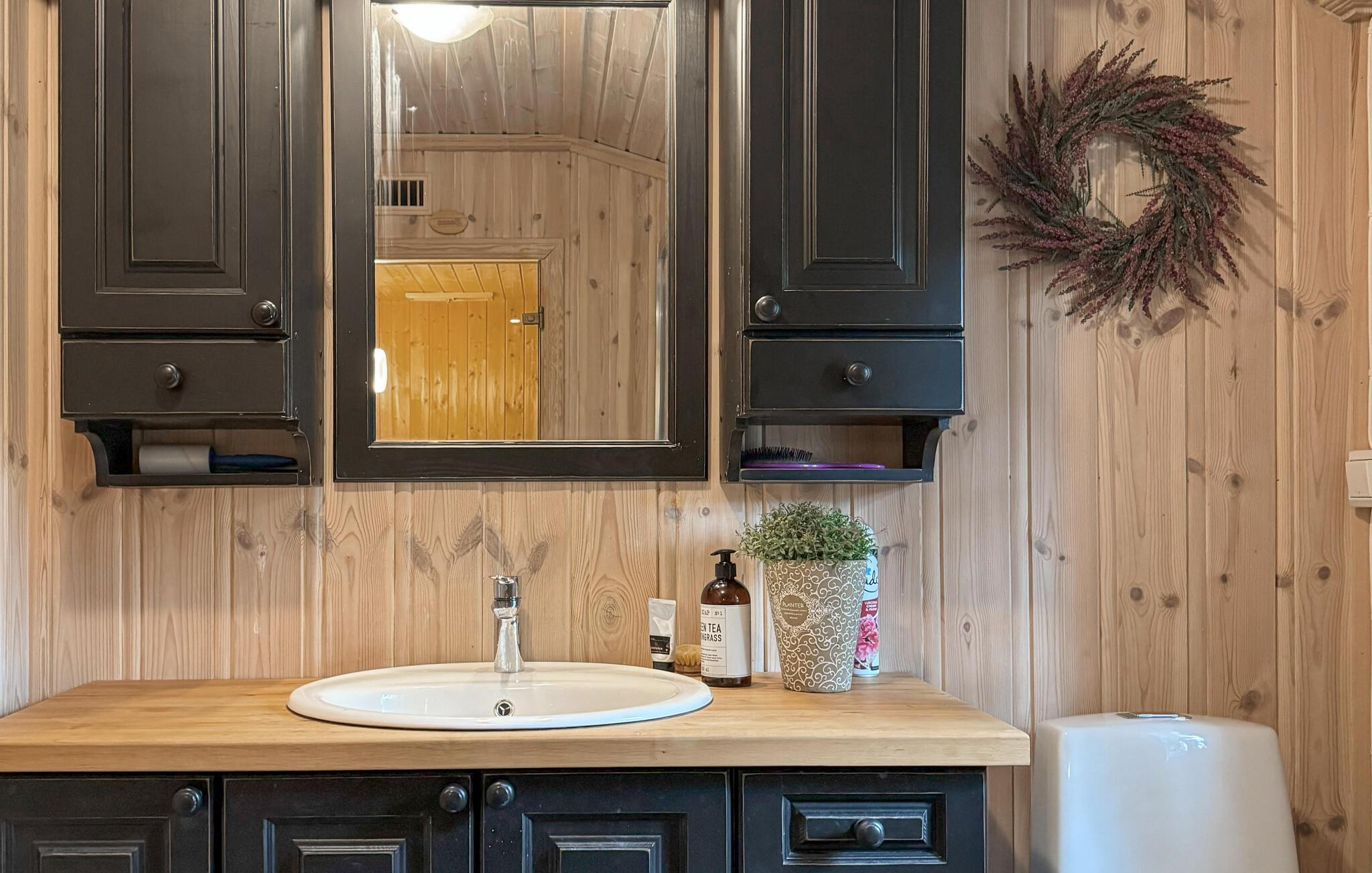 Eingebettet in eine bezaubernde Landschaft, die ganzjährig zu unvergesslichen Erlebnissen in der Natur einlädt, begrüßt Sie diese geräumige Hütte mit rustikalem Charme. Freuen Sie sich auf gesellige Kochabende in der offenen Küche und stärkende Mahlzeiten am einladenden Esstisch. Gönnen Sie sich wohlige Momente in der Sauna und lauschen Sie bei anregenden Gesprächen im großzügigen Wohnzimmer dem Knistern des Kamins.