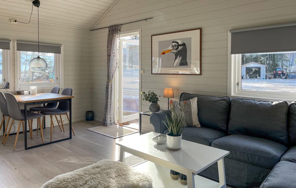 Dieses charmante Ferienhaus empfängt Sie mit einer hellen, freundlichen Einrichtung im skandinavischen Stil. Lassen Sie die ruhige Atmosphäre auf sich wirken, spielen Sie Gesellschaftsspiele oder genießen Sie einfach die Zeit ganz ohne Hektik. In der modernen Küche bereiten Sie mühelos Ihre Lieblingsgerichte zu, bevor Sie am Esstisch mit Blick ins Grüne Platz nehmen und gemeinsam Ihre Mahlzeit genießen.