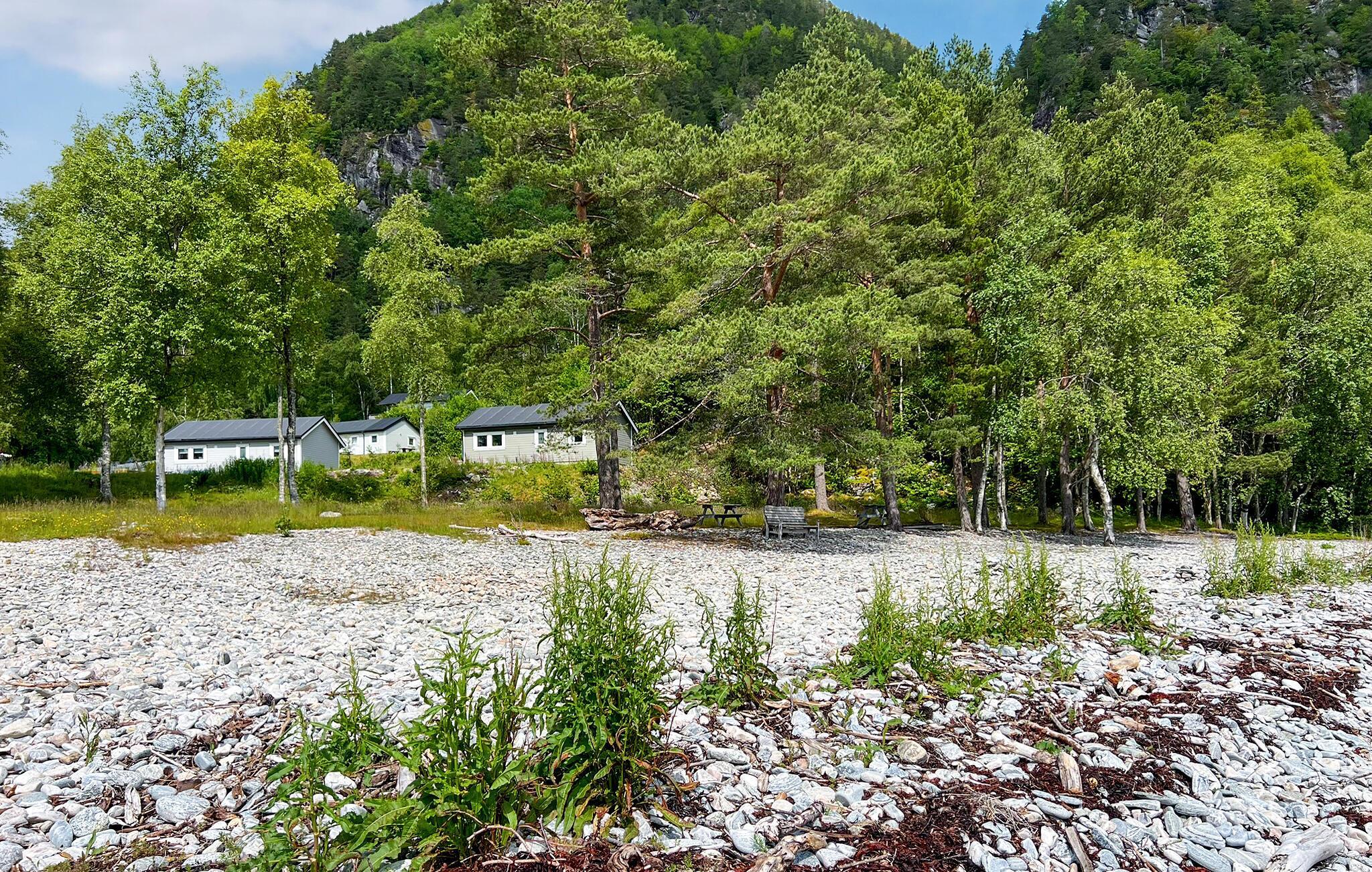 Setzen Sie sich bei sonnigem Wetter schon morgens mit einer Tasse Kaffee ins Freie und genießen Sie die grüne Umgebung und die wunderbare Ruhe am Fjord. Entfachen Sie abends den Grill und verwöhnen Sie sich mit einem saftigen Steak und frischem Fisch, den Sie eventuell selbst gefangen haben.