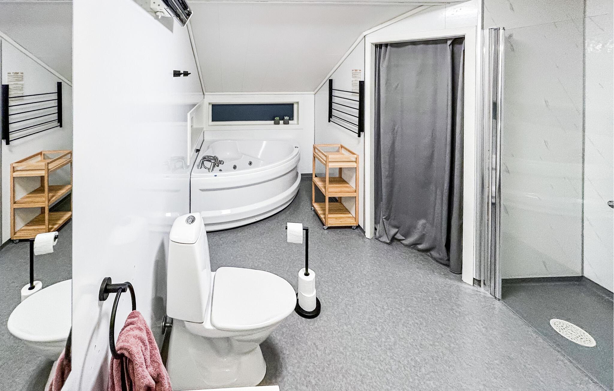 Gehen Sie morgens nach draußen, genießen Sie den fantastischen Blick auf den Skjoldafjord und springen Sie in den Whirlpool für eine erfrischende Abkühlung. Ein kurzer Spaziergang führt Sie zum Steg, von wo aus Sie zu einer Angel- oder Entdeckungstour durch die ruhige Fjordlandschaft aufbrechen können. Die Kinder können sich auf dem Trampolin und in den Schaukeln austoben.
