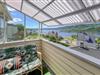 Treten Sie hinaus auf den überdachten Balkon. Nehmen Sie auf dem Sofa Platz und genießen Sie den weiten Blick über die Dächer bis zum See. Der Balkon ist windgeschützt und bietet sich sowohl für sonnige Stunden als auch für gemütliche Abende an. Der Garten mit Gewächshaus und blühenden Sträuchern rundet das Gesamtbild ab und bietet Raum für kleine Spaziergänge oder zum Lesen in der Natur.