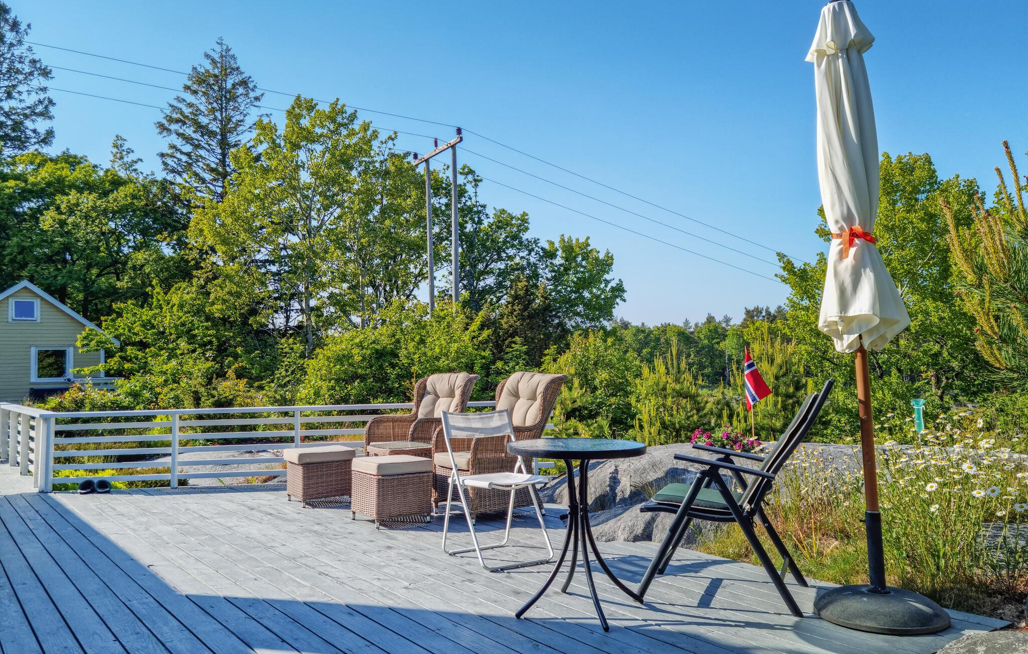Ihren Morgenkaffee trinken Sie am besten im Sonnenschein auf der Terrasse, wo Sie auch mit Blick ins Grüne ausgiebig frühstücken können. Lauschen Sie den Stimmen den Natur, bevor Sie zu Ihren Aktivitäten aufbrechen oder neue Pläne schmieden. Am Abend lädt die Terrasse zu geselligen Stunden beim Grillen ein.