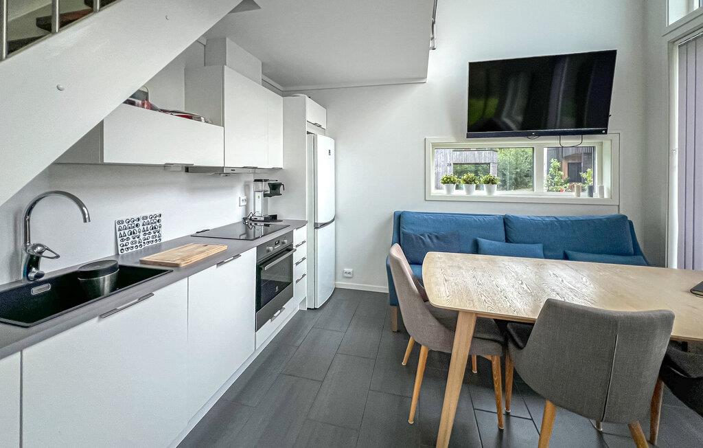 Dieses Holzhaus verspricht eine erholsame Auszeit der Extraklasse. Durch eine große Fensterfront fällt viel warmes Licht ins Innere, während Sie gleichzeitig einen herrlichen Blick ins Grüne werfen können. Entspannen Sie sich auf dem Sofa mit einer Tasse Kaffee, streamen Sie Ihre Lieblingsserie oder starten Sie in der Küche ein kleines Kochduell.